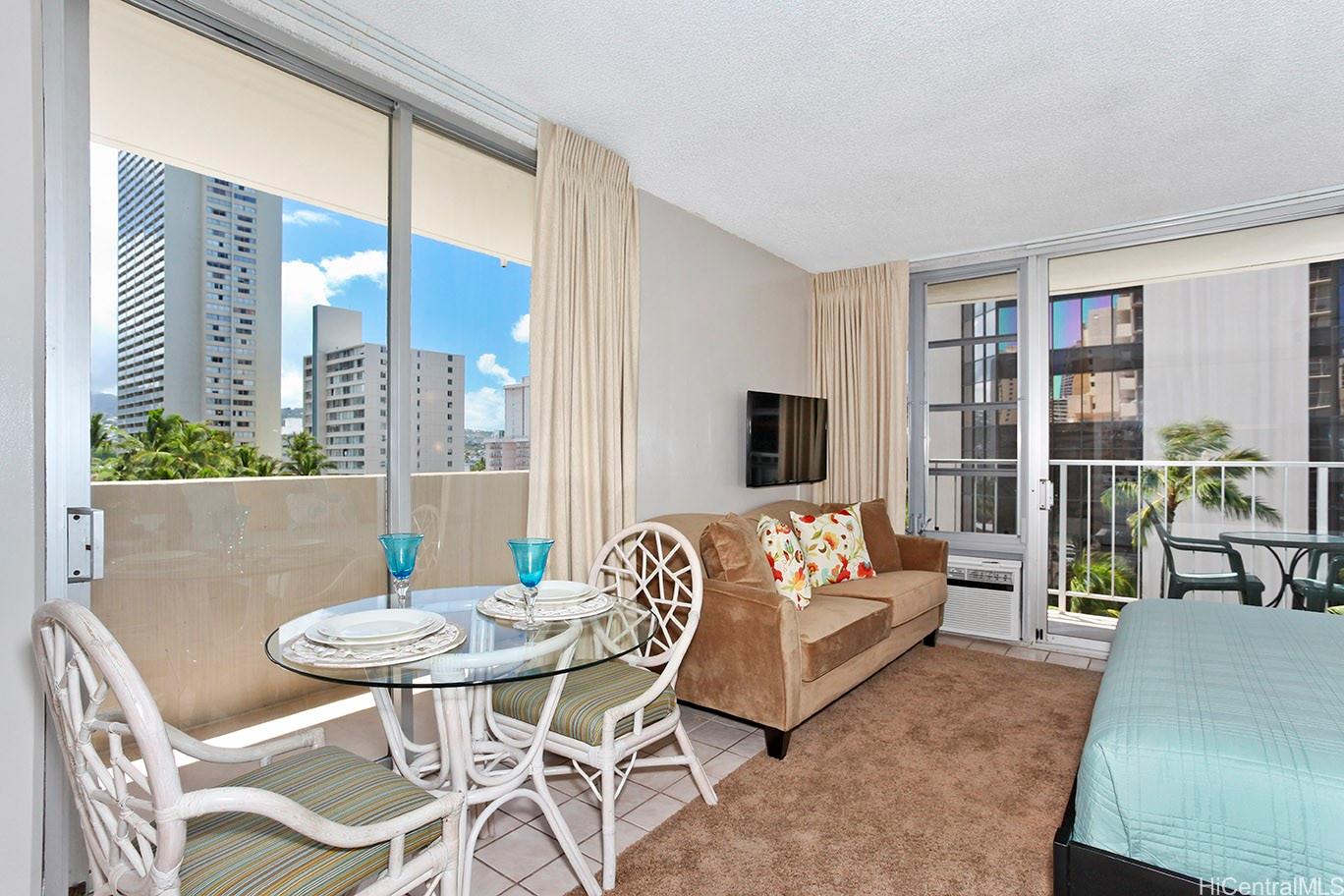 ワイキキ中心部に位置する、専用駐車場付きの合法的なバケーションレンタル・スタジオを所有する絶好の機会です。この角部屋は2つのラナイを備え、心地よい風通しと自然光が差し込みます。マリーンサーフは、管理の行き届いたコンドミニアムで、爽やかなスイミングプールと2軒のレストランを併設しています。このターンキー物件は、スタイル、機能性、そして立地が完璧に融合しています。オーナー居住にも投資にも最適な柔軟性を備えています。家具完備のこのユニットで、快適なひとときをお過ごしください。世界的に有名なワイキキビーチからわずか2ブロック。各階に共用ランドリーがあります。