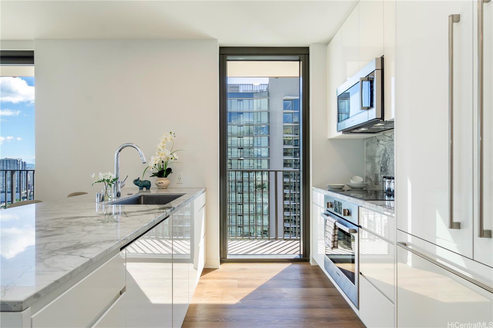 Welcome to A‘ali‘i #3714 in Ward Village, offering sweeping ocean and mountain views from a high floor.