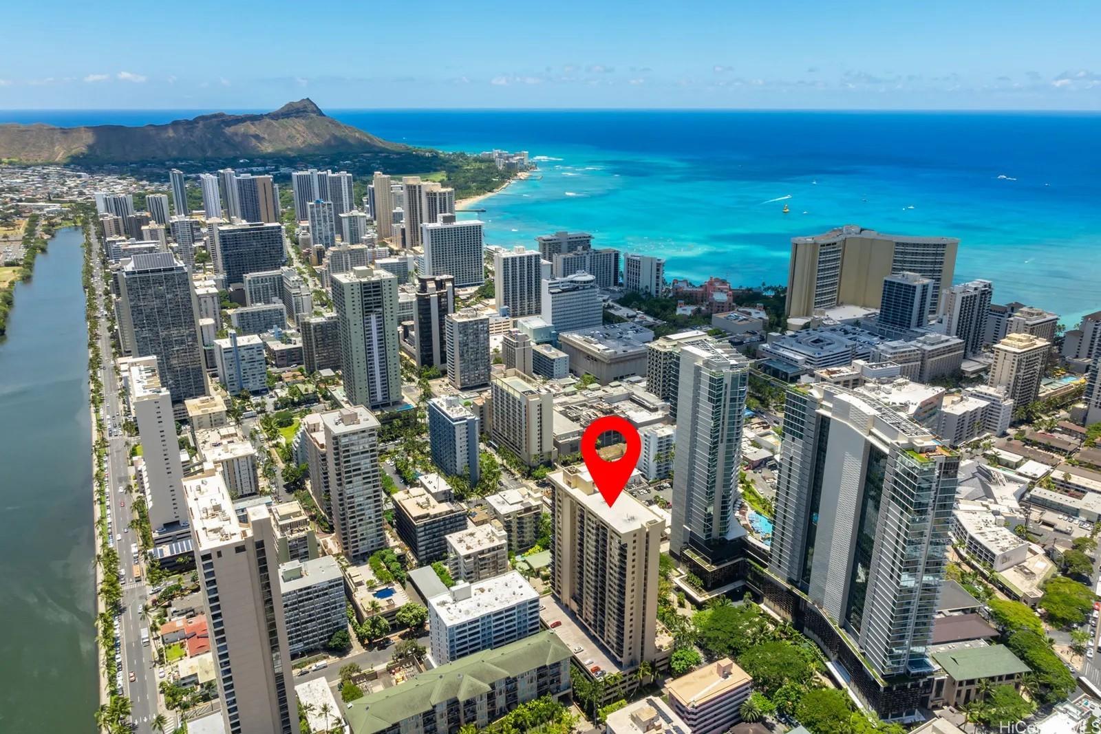 Highly sought after center unit with ocean views. Unit is in original condition and awaits your upgrades or leave as is and continue to use unit as an excellent investment in world famous Waikiki. Building has lots of amenities and a very spacious recreation area next to the pool with it's own outdoor kitchen which is perfect for pool parties. 1 covered parking just steps from the front door and elevators. Building has security and resident manager on site. HOA fees just reduced, so not all HOA fees go up!