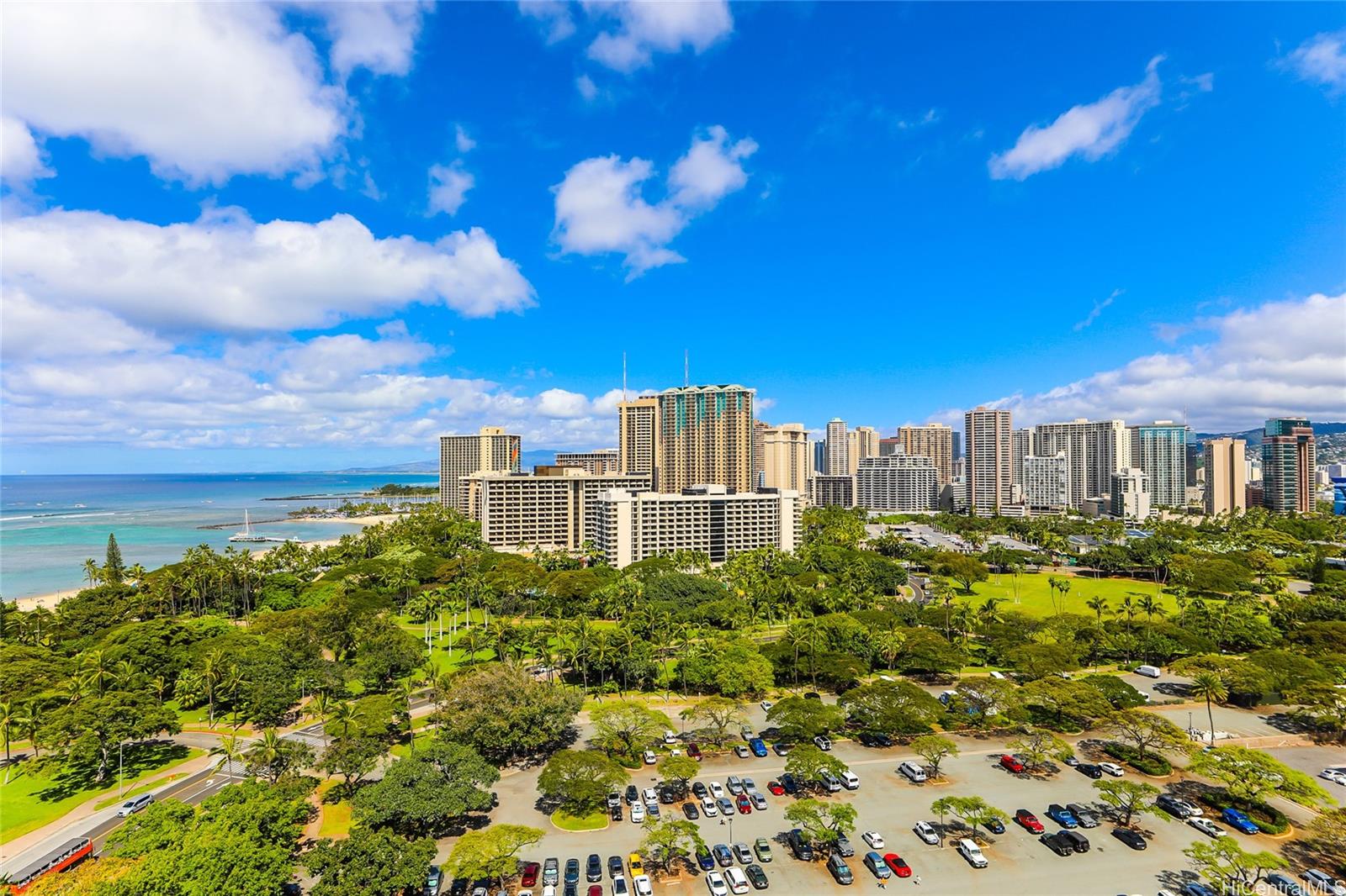 Freshly renovated and sought-after high floor Deluxe Studio unit overlooking Fort De Russy reservation park and its outstanding Ocean Views. Enjoy the Hilton Hawaiian Village fireworks from your own lanai and when not using, have the new HILTON LXR management (HILTONs top branding) operate it if you so choose. Showings subject to hotel bookings and shows between check-in and check-out times. No parking deeded but Valet available to Owners.
