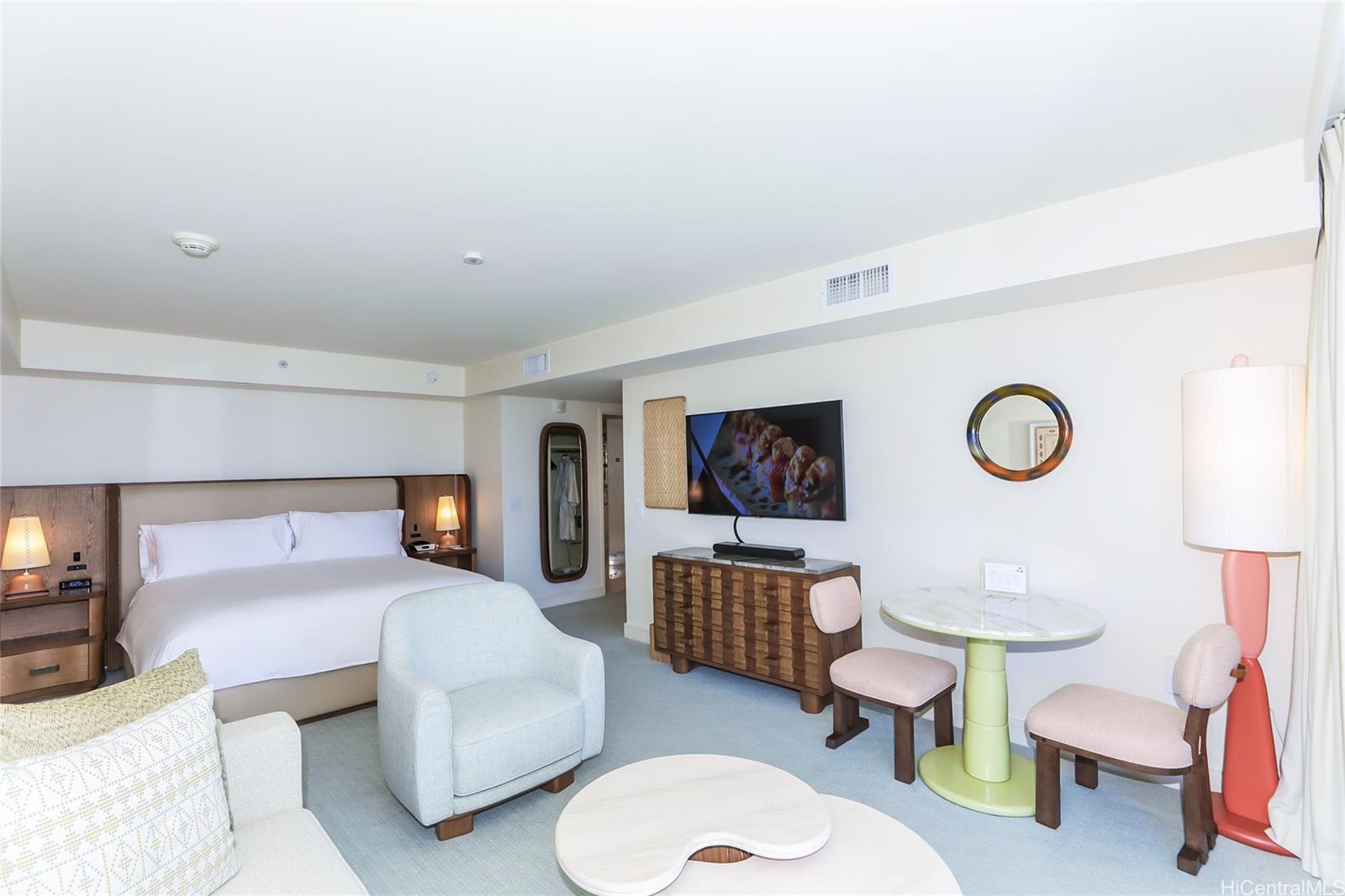 改装されたばかりの人気の高い高層階デラックススタジオユニット。フォート・デ・ルッシー保護区公園と素晴らしいオーシャンビューを一望できます。専用ラナイからヒルトン・ハワイアン・ビレッジの花火をお楽しみいただけるほか、ご希望であれば、使用しない時はヒルトンの最高級ブランドであるHILTON LXRの管理会社に管理を委託することも可能です。内覧はホテルの予約状況により、チェックインからチェックアウトまでの時間帯に限ります。専用駐車場はありませんが、オーナー様はバレーパーキングをご利用いただけます。