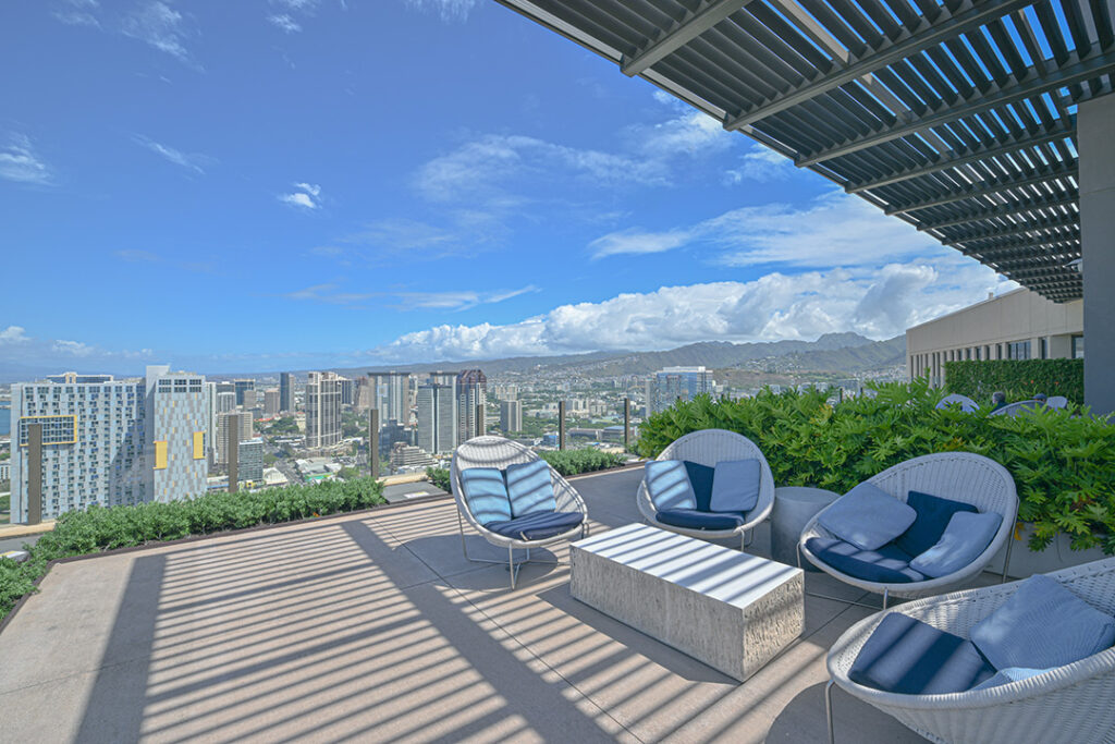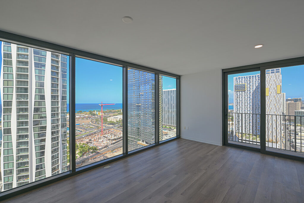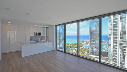 アアリイ高層角部屋へようこそ。この部屋からは、海、夕日、港、山々、街並みのパノラマビューをお楽しみいただけます。室内にはプライベートラナイ、Bosch製家電、高い天井、バックスプラッシュ付き天然石カウンタートップが完備されています。独立した収納室と2台分の専用駐車場(1台はEV充電器付き)もございます。専用駐車場フロアには追加の大容量収納ユニットと天井収納も完備されています。リゾートスタイルのアメニティとして、プール、スパ、BBQグリル、プライベートカバナ、キッズプレイエリア、屋外用子供用プールをご利用いただけます。42階ペントハウス階のアメニティデッキには、フィットネスセンター、ヨガルーム、会議室、ビリヤード台、屋外スカイテラス、広々としたレクリエーションエリアがあります。海やショッピングモールに近い活気ある高級コミュニティに位置しています。是非お気軽にお問い合わせください。
