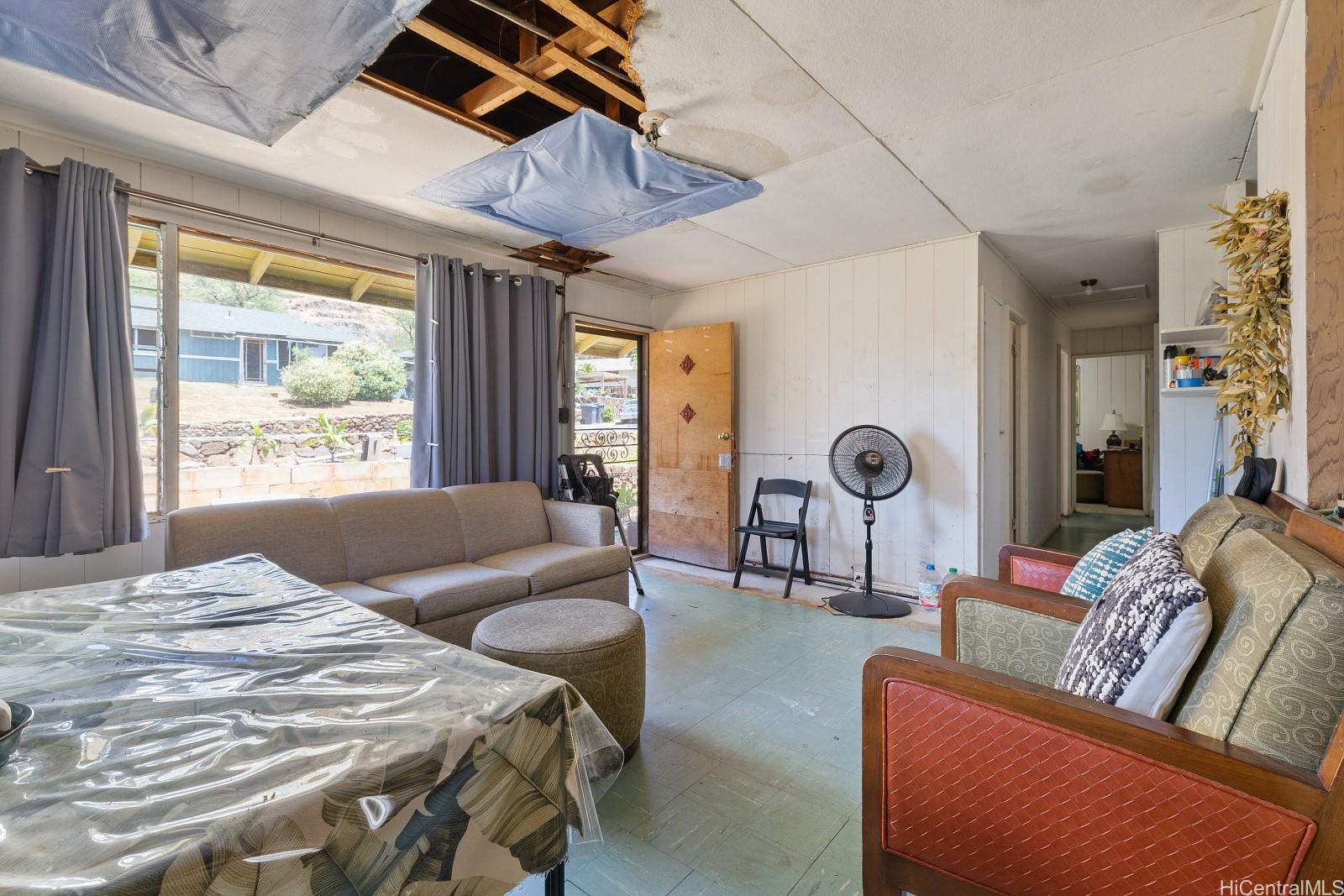 Nestled in Nanakuli Homestead, this four bedroom home boasts stunning mountain views and expansive outdoor spaces ideal for gatherings or peaceful sunsets. Nanakuli homestead sits just a 10 minute walk above the road of a with row of sandy beaches with nearby access to the public bus line off Farrington Hwy & Haleakala Ave. In the foreseeable future the Lualualei Homestead Rd will be opening to the public to allow dual access into and out of Nanakuli. The home and property is in need of TLC and repair and is sold AS IS. This property is a Department of Hawaiian Homeland leasehold property with 45 years remaining on the current lease. Purchaser must meet eligibility requirements.
