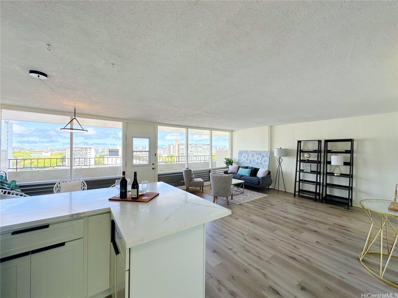 Special double unit condo, previously 2 individual 1-bedroom units (#1002 & 1003) combined into a single 1,056 sqft condo unit at Punahou Hale! Currently a pet-friendly large 2 bedroom 2 bathroom unit with all the conveniences of living in Makiki! Recently remodeled with new kitchen cabinets, countertops, stainless steel appliances, vinyl flooring, interior painting, and two updated bathrooms! Maintenance fee includes Electricity, Water (Hot) and Sewer. Perched on the 10th floor offering nice breezes and views of the city, mountain and Diamond Head. Building amenities include community laundry, additional storage on the same floor, and secured entry! Owners may rent a parking stall for $120/month (on first come first served basis). Building exterior was freshly painted in 2019 and all new rear facing windows installed. Located in close proximity to downtown Honolulu, Punahou/Maryknoll Schools, University of Hawaii, Waikiki, Kakaako, Ala Moana, restaurants, parks, stores, markets and much more! Minutes from major bus lines and Biki station! Clean and move-in ready! Don’t wait, schedule your showing today and experience owning your very own unit in the heart of town!
