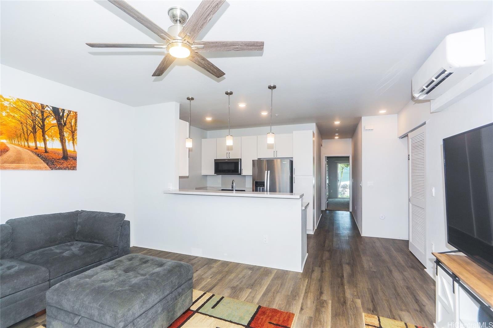 Come home to this ground floor unit that is situated along the perimeter of Kohina Phase 2. The home features 2-bedrooms and 2 full baths with 2 assigned parking. The home is equipped with vinyl flooring throughout the living room, kitchen and bathrooms whereas the bedrooms are with carpet. In addition, the unit has split AC units in the living room and both bedrooms. There is a small private yard along the street perfect for a relaxation at days end with access through the primary bedroom. This unit is in close proximity to UH West, Ka Makana Alii Shopping Center, Croc Center, freeway access, rail and bus routes for convenience. The unit's water and sewer are separately billed and does not include with the maintenance fee.