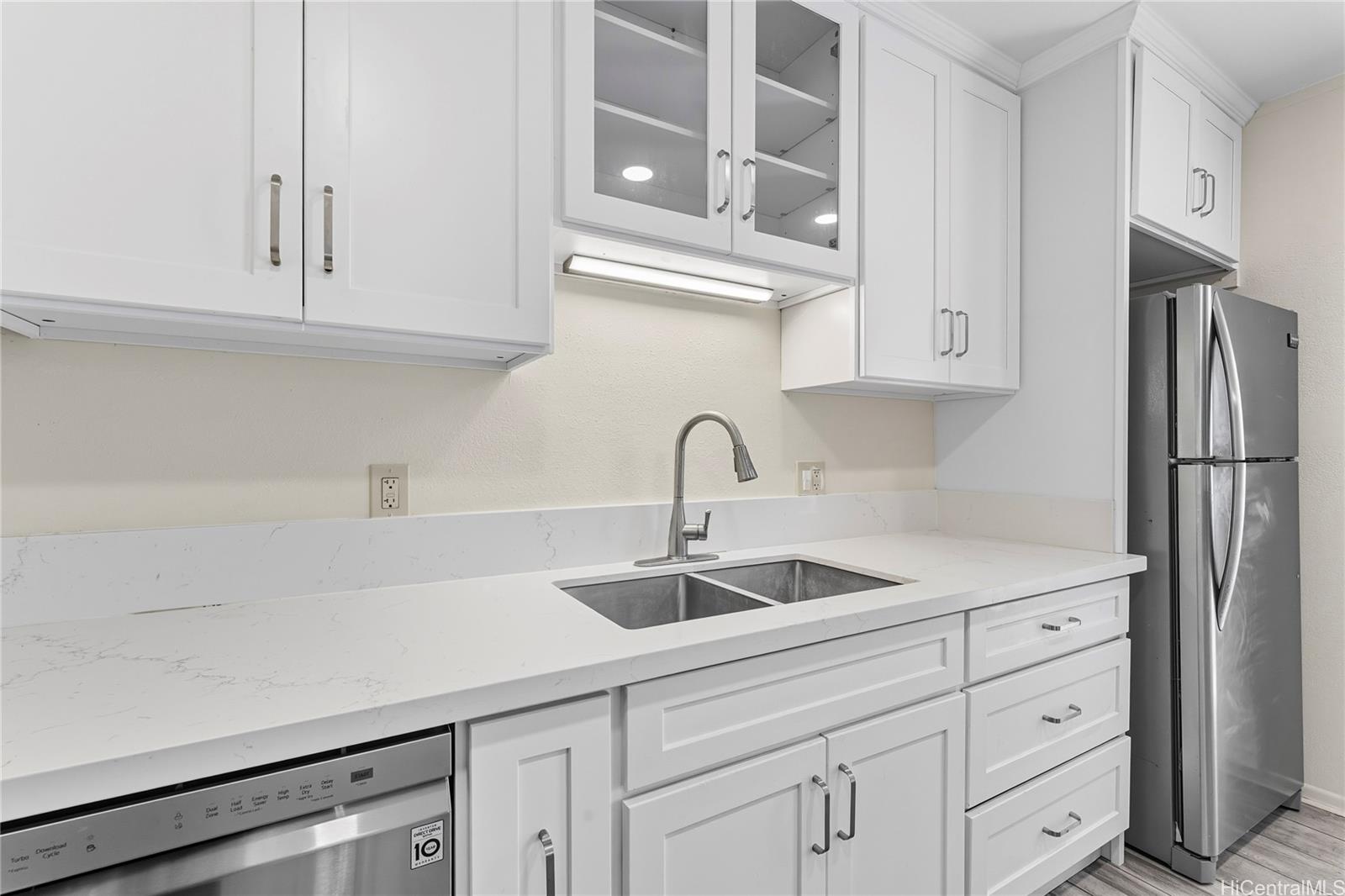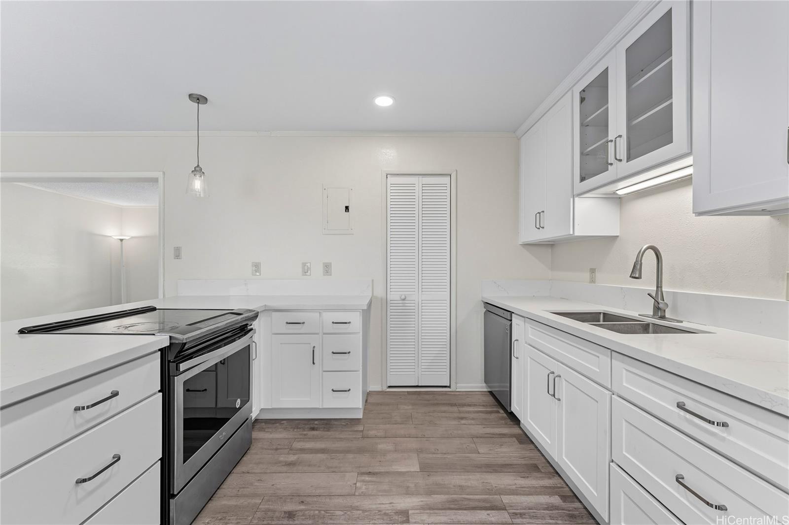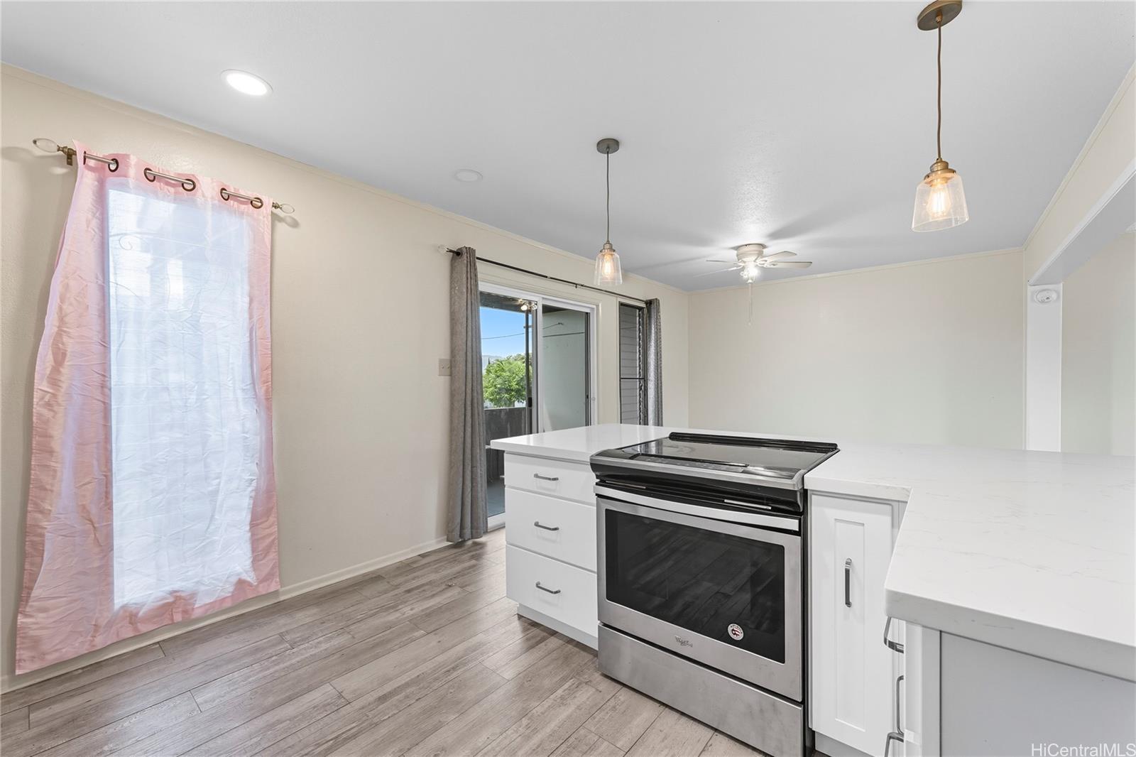 Well-maintained 3-bedroom, 1.5-bath townhouse in the highly desired Waiau Gardens community! This two-story home features a functional layout with spacious living areas, 2 assigned parking stalls, and a private covered lanai. The kitchen is equipped with an electric stove/oven, refrigerator, dishwasher, and disposal, plus a full-sized washer and dryer for added convenience. Interior finishes include carpet and laminate flooring. Enjoy community amenities like a swimming pool and the convenience of nearby shopping centers, restaurants, schools, and bus lines