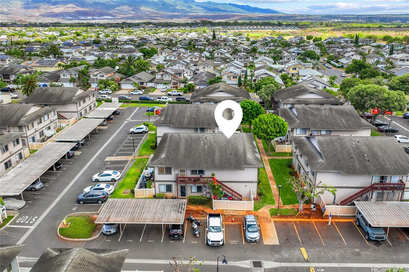 Welcome to this spacious 3-bedroom, 2-bathroom townhome at Shores at Suncrest in Ewa Beach. This upstairs corner unit offers 1,036 square feet of well-maintained living space. The home features an open living and dining area with laminate flooring, while the bedrooms are carpeted for comfort. Stay cool with window A/C units in the living room and Primary bedroom.