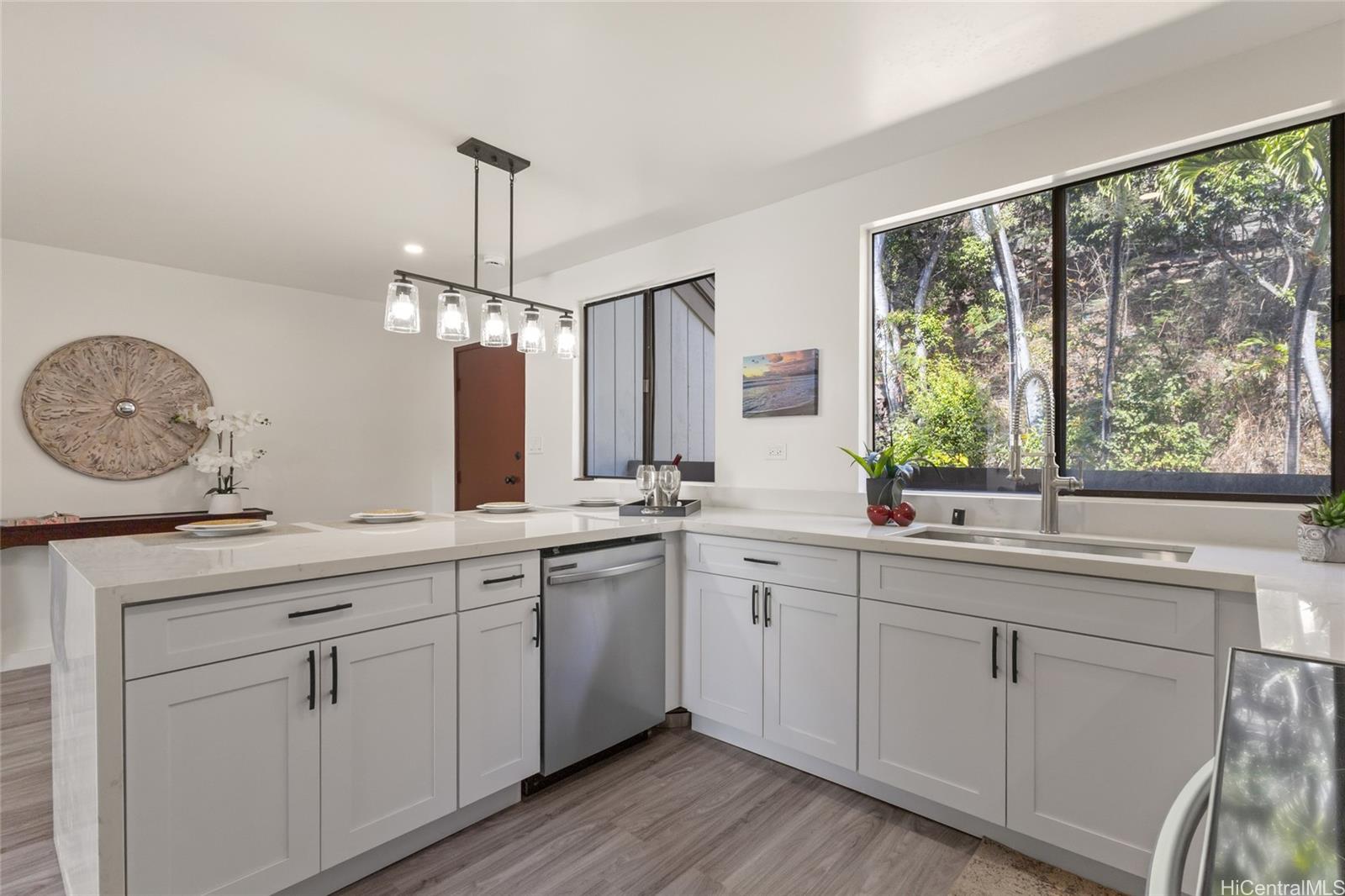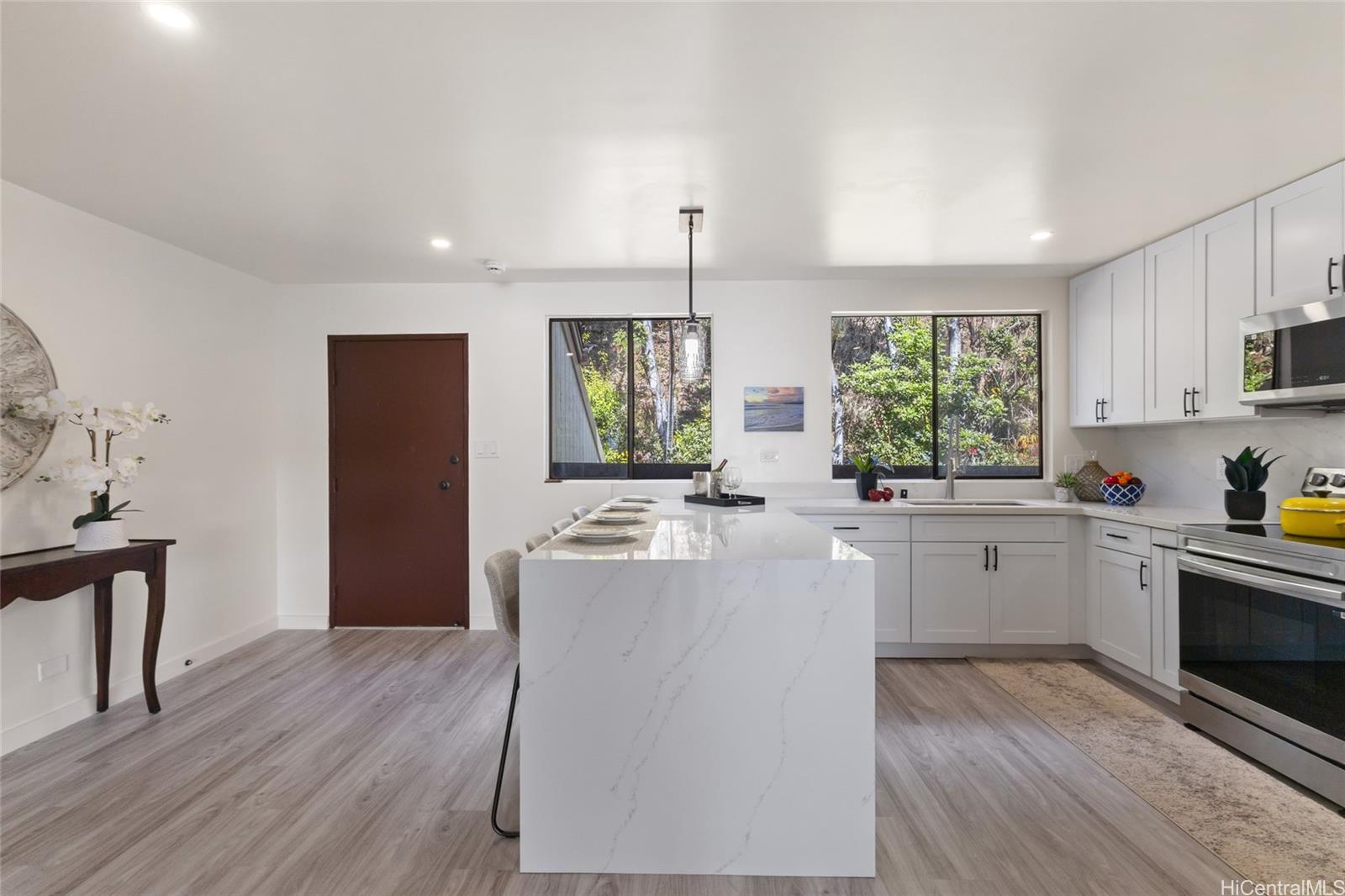 Welcome to this beautifully renovated townhome in popular Hawaii Kai!This bright and spacious 3-bedroom, 2.5-bath home features fresh paint, new kitchen cabinets, quartz countertops, stainless steel appliances, new water heater, updated bathrooms, light fixtures, new carpet, and washer/dryer.The primary bedroom has an ensuite bath and a loft—great for a home office or extra space. . Large windows offer lots of natural light.The open floor plan includes a living room, dining area, and a kitchen with lots of cabinets.Enjoy one covered parking stall with built-in storage, one open stall, and plenty of street parking.Close to Costco, restaurants, beaches, surf spots, and hiking trails. Must see to appreciate. Special Assessment $262.91 ends on Dec 2025.