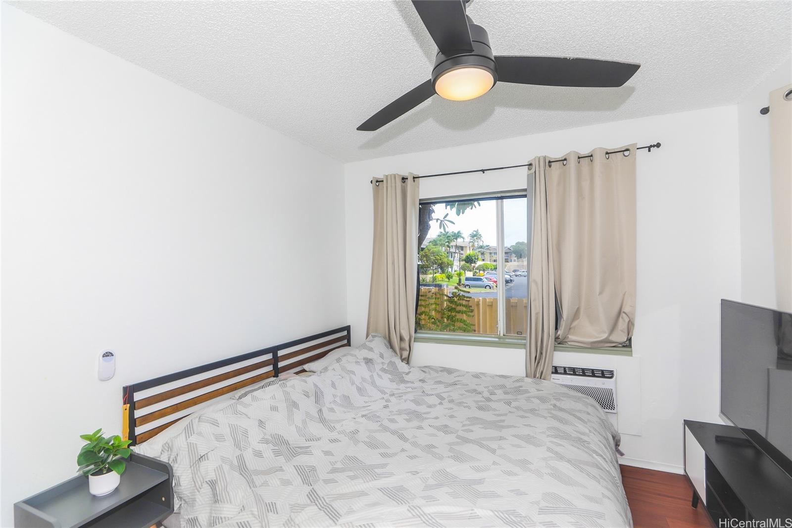 Welcome to this charming ground-floor 2-bedroom, 1-bath townhome in the gated community of Kulana Knolls in Royal Kunia. Featuring a freshly painted interior, this move-in-ready unit offers the convenience of an in-unit washer and dryer, plus two open parking stalls. Enjoy the grassy courtyard—perfect for adding your own plants or simply relaxing outdoors. This pet-friendly complex (verify with association) includes multiple designated pet areas and is ideally located near shopping, grocery stores, and restaurants. As part of the Royal Kunia Community Association, residents also enjoy access to additional neighborhood amenities. Don’t miss the opportunity to see this wonderful home.