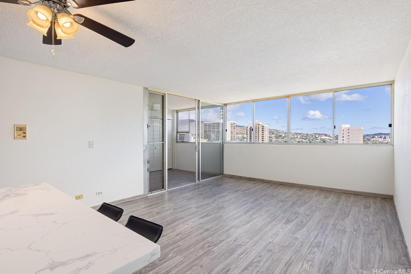 BEST VALUE IN TOWN! Move In Ready & centrally located in The Punahou Neighborhood. Punahou Sunset IS Close to downtown, local eateries and Ala Moana. Minutes from Kapi'olani Medical Center for Women & Children. With Punahou & Mary Knoll School close by, this location can't be beat. Beautifully updated from top to bottom with luxury vinyl planks, new stainless steel appliances and tiled bath surrounds. This spacious 1 bedroom, 1 bath condo has an assigned, covered parking. The open concept kitchen features an island, in-unit washer/dryer and the lanai has been enclosed to provide extra interior space or an extension for an office or work out space. Enjoy cool breezes and Mountain Views while cooking or dining. This building has secured parking and gated entry, plus it's Pet Friendly! Low HOA dues make this unit great for a first time buyer or investor. Units in this building rent for $2K ! Priced below C&C Assessment.