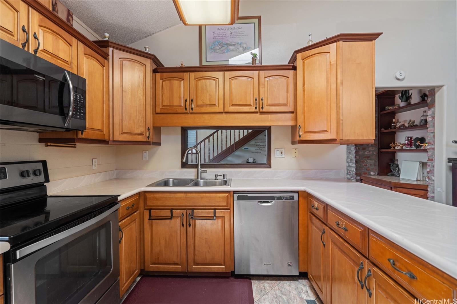 Back on market through no fault of the Sellers! Designed with comfort and practicality in mind, this well-maintained residence features generous living areas, ample storage, and a refreshing pool with an attached jacuzzi—perfect for relaxing or entertaining. A 44 panel leased photovoltaic system helps reduce energy costs. Enjoy the convenience of nearby shopping, dining, parks, and Mililani Town Center, along with highly rated public schools and Hanalani private school just minutes away. Commuting is easy with quick access to major highways, the H-2 freeway, and bus lines. Whether you're working from home or enjoying your private outdoor retreat, this property offers a rare opportunity to own a versatile and move-in-ready home in one of Central O?ahu’s most desirable communities. One or more photos have been enhanced.
