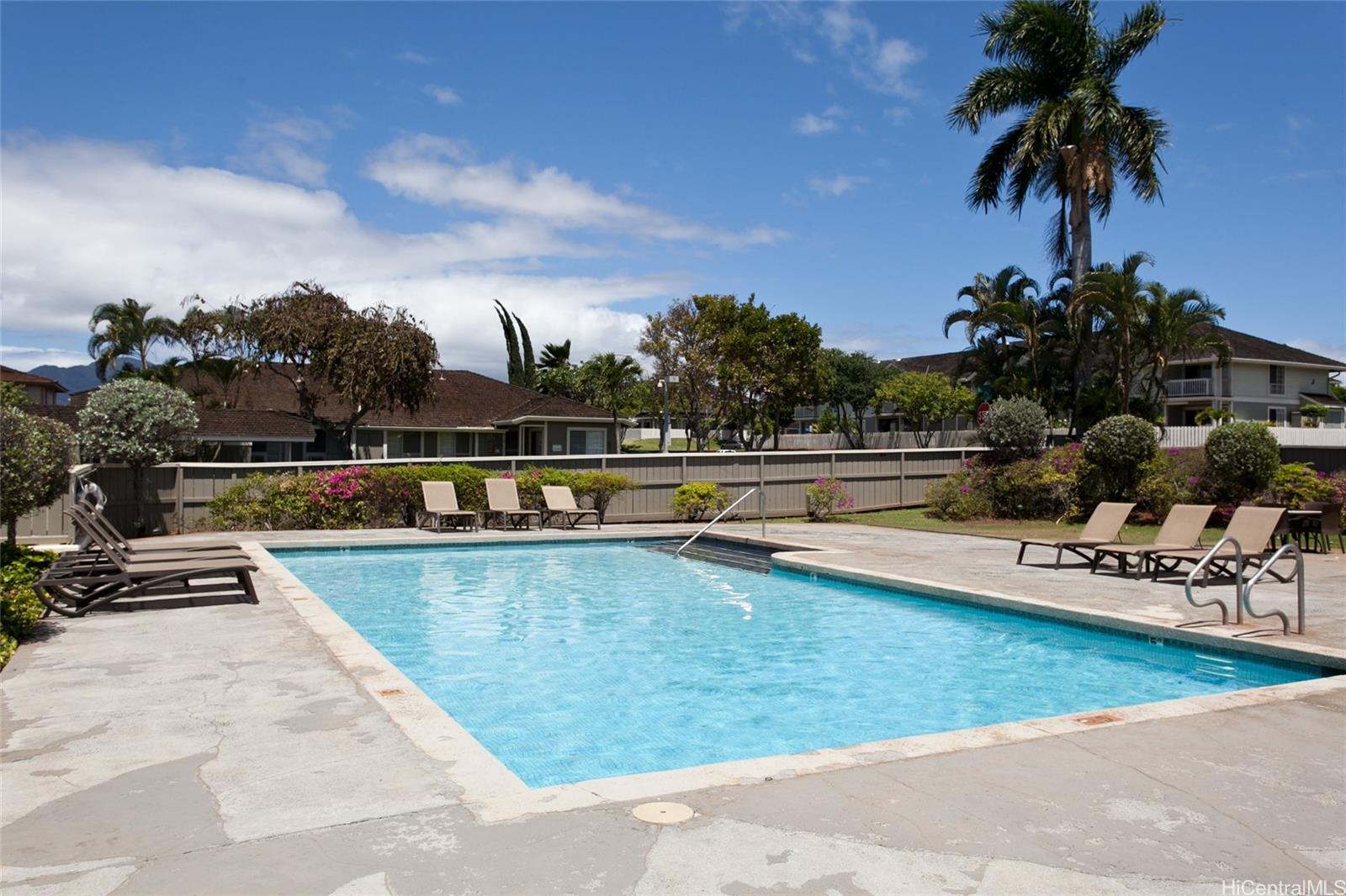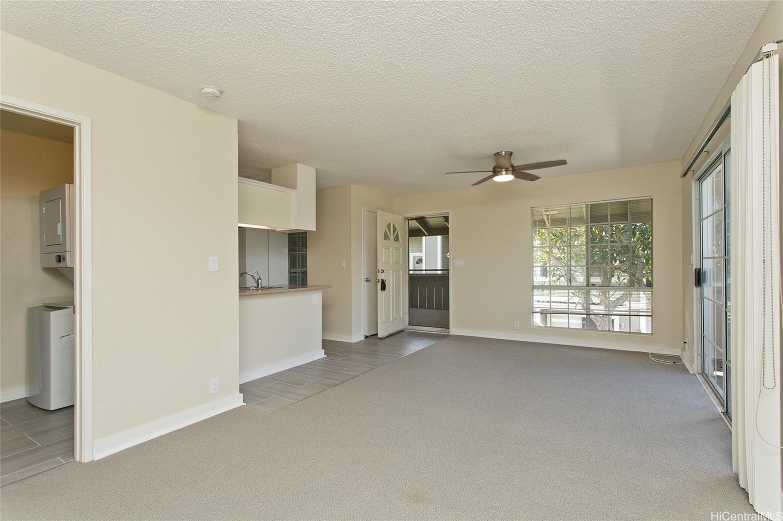First Official Open House on Sunday, 9/14 @ 2 pm to 5 pm. Newly renovated unit with porcelain tiles in the kitchen and bath, new carpet, and a renovated bathroom. This is your exciting opportunity to own a delightful studio unit in the highly coveted Royal Palm at Waipio! This second-floor townhouse is your blank canvas, just waiting for your personal flair to decorate it as the home of your dreams. Go outside to enjoy a charming open patio, complete with a convenient storage closet, and find your stacked washer/dryer tucked away for easy access. Plus, there’s a covered parking space right by the entrance! With its unbeatable location near shops, parks, and dining hotspots, you’ll love the vibrant lifestyle this community offers! The Gentry Waipio Community Association fees cover maintenance and landscaping. Water heater is also new since 2023. Monthly rental is $1780.10.