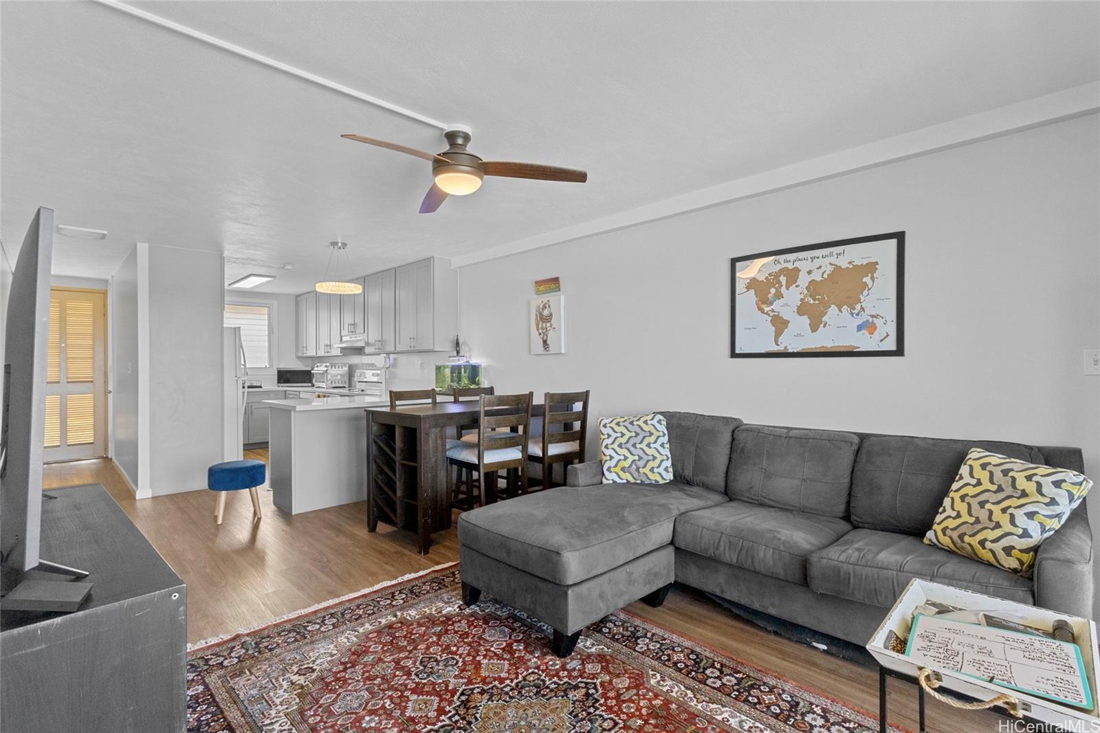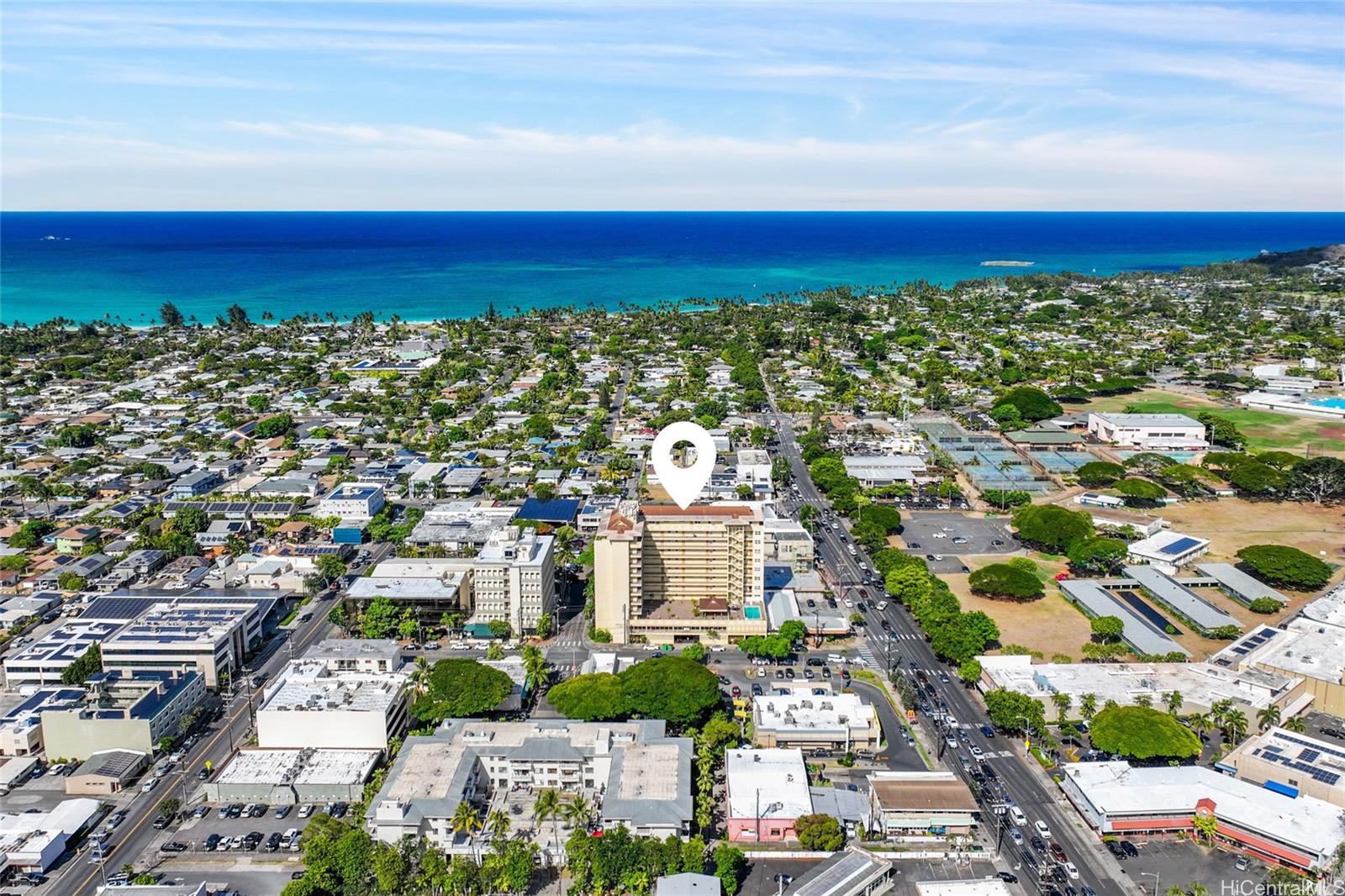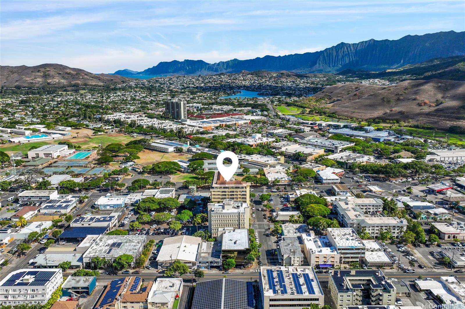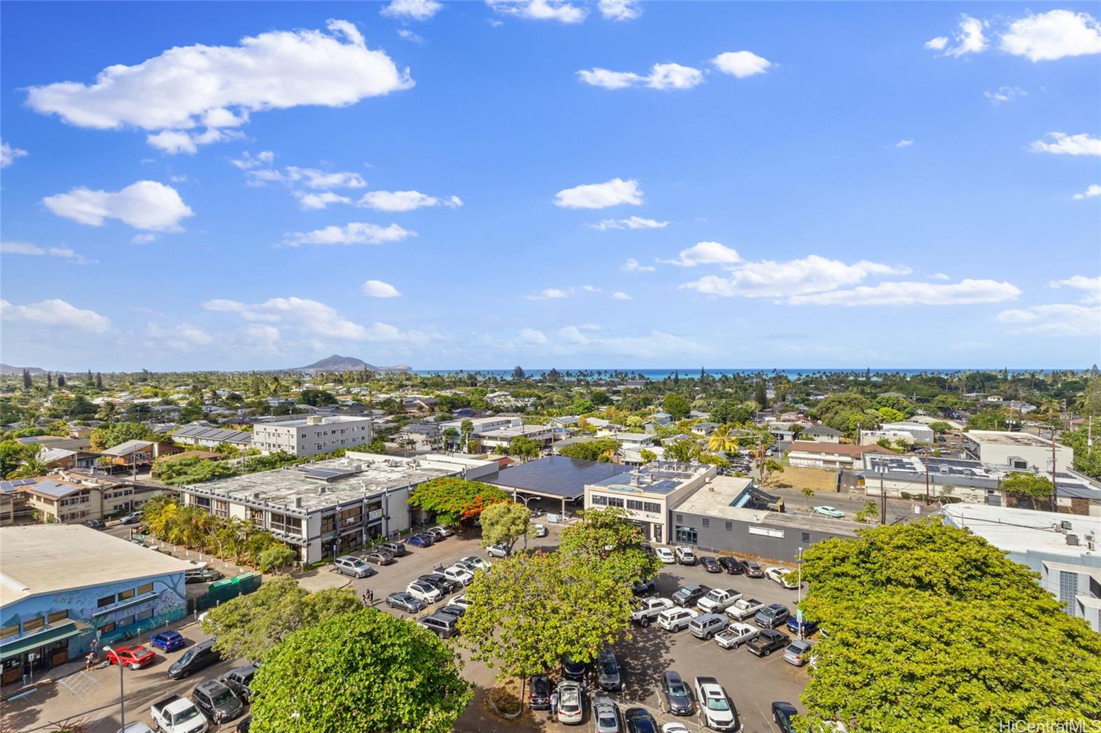 This 2-bedroom home boasts modern finishes, including quartz countertops, rich hardwood cabinetry, updated appliances, and luxury vinyl and ceramic tile flooring throughout. The open-concept living space extends seamlessly to the lanai, where you can enjoy the sights of Kailua town with the ocean as your backdrop. New vinyl windows and ceiling fans enhance airflow and natural light. The kitchen features bar seating andopens up to the main living area—perfect for entertaining. Enjoy relaxing by the pool or take a quick trip to the world-renowned Kailua Beach. Includes one covered parking space in a secure, pet-friendly building surrounded by popular shops and dining options. Take advantage of a VA assumable loan at just 2.5%! An incredible opportunity in today’s market.