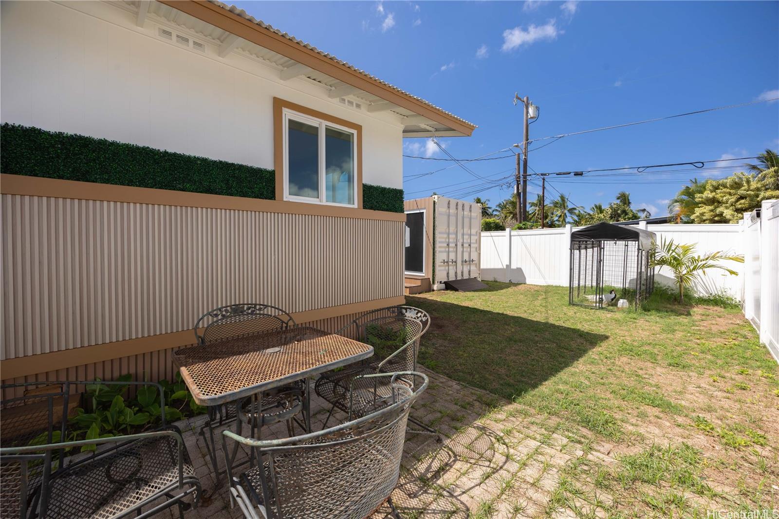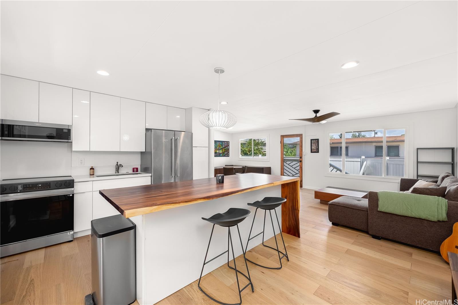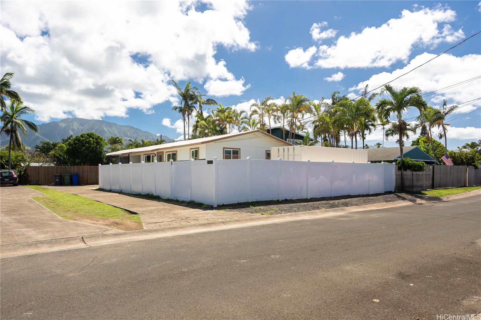 Welcome to move-in ready Waialua living on sought-after Kahaone Loop. This home offers a 3/1 of newly remodeled living space with a 2-car covered carport on slab, a fully fenced yard, a versatile 20 ft. container for flex or workspace, and an additional 2 parking spots. Interior highlights include an open-concept layout, live-edge countertops, engineered hardwood flooring, premium electric appliances, and freshly painted interior/exterior.