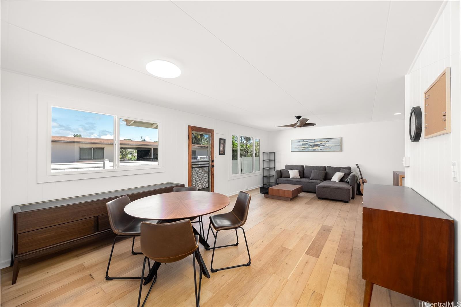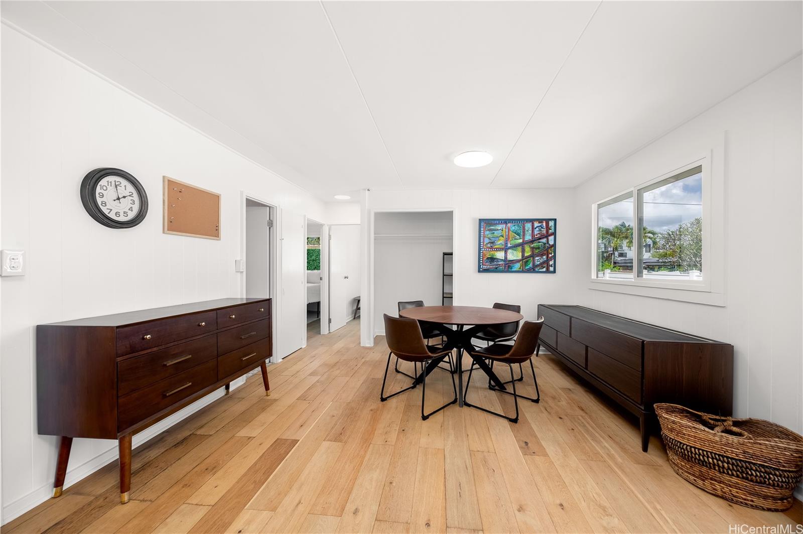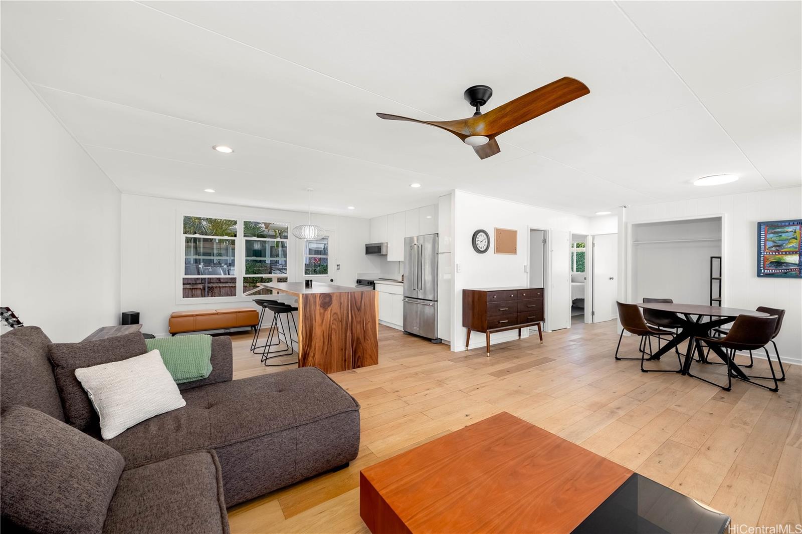 Welcome to move-in ready Waialua living on sought-after Kahaone Loop. This home offers a 3/1 of newly remodeled living space with a 2-car covered carport on slab, a fully fenced yard, a versatile 20 ft. container for flex or workspace, and an additional 2 parking spots. Interior highlights include an open-concept layout, live-edge countertops, engineered hardwood flooring, premium electric appliances, and freshly painted interior/exterior.