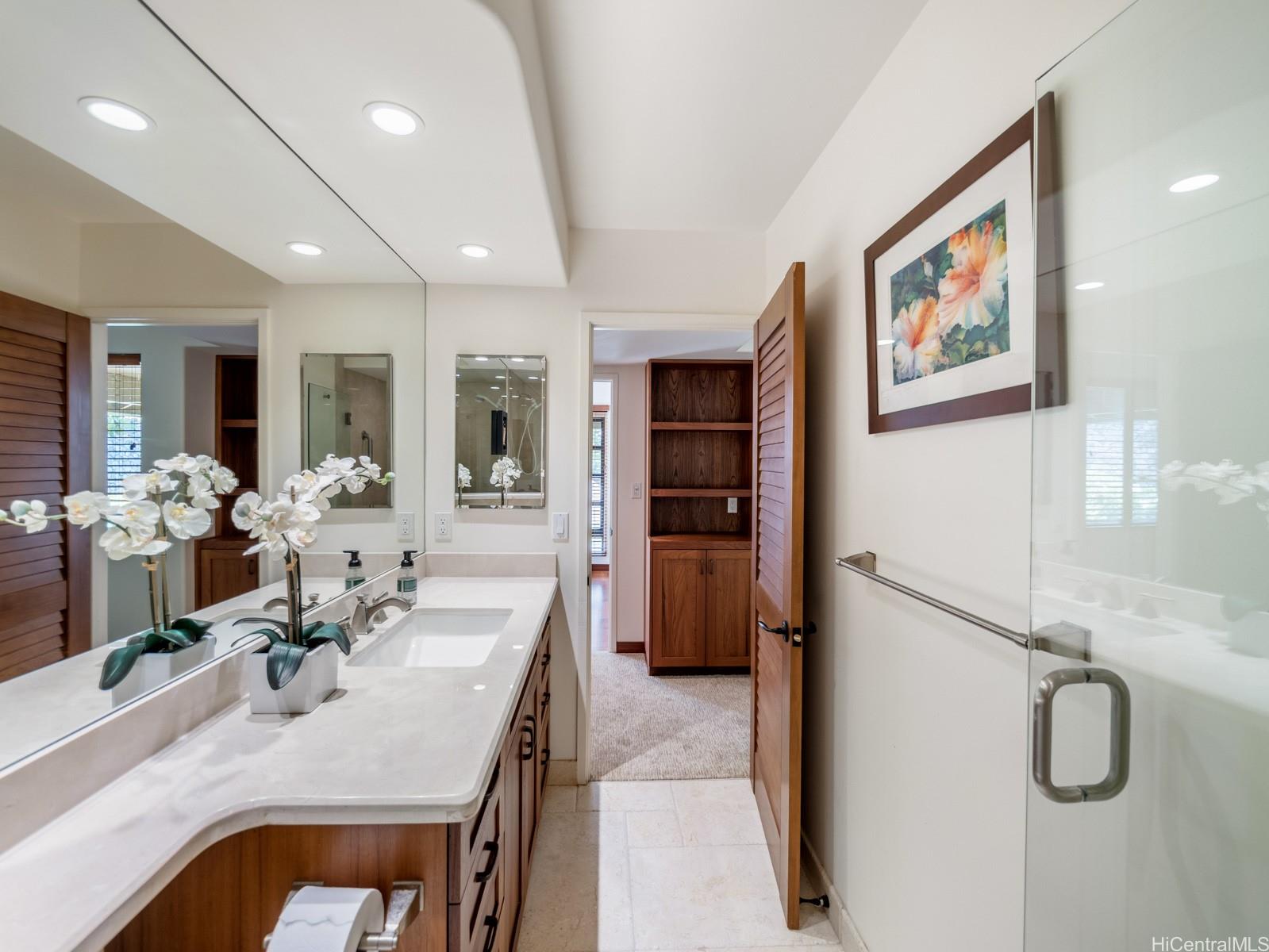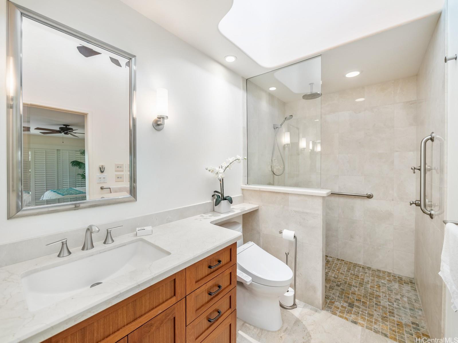 ブルーストーン - 3ベッドルーム、3バスルームの端のユニット。特別な新価格 - 地元のインテリア建築家ウェイン・パーカーがデザインした、全面改装済みの広々とした3ベッドルーム、3バスルームの端のユニットは、細部に至るまで卓越した品質と永続的なスタイルが貫かれています。竹仕上げの高い天井、エキゾチックなチーク材の床、ブラジル産チェリー材のキャビネット、トラバーチンのカウンタートップ、バスルームの床はタンブル加工のトラバーチン、カスタムメイドの埋め込み式照明、テクスチャ加工の漆喰仕上げのカスタムメイドの湾曲壁、カスタムメイドのキッチンとバスルームが、快適で気楽なライフスタイルをお約束します。理想的な立地にあるこの端のユニットの前には、そよ風、素晴らしい山の景色、そして成熟したシャワーツリーの下の公園のような環境を遮る建物はありません。ブルーストーンは、素晴らしいプール、クラブハウス、テニスコートなど、一戸建て住宅に代わる優雅な選択肢を提供するために思慮深く設計されました。美しいラニカイビーチやハイキングコースまで歩いてすぐです。車ですぐのカイルアタウンには、世界クラスのショッピング、レストラン、病院、公立・私立学校が揃っています。ホノルルと空港までは30~40分と、ブルーストーンはハワイで最も魅力的な場所の一つです。