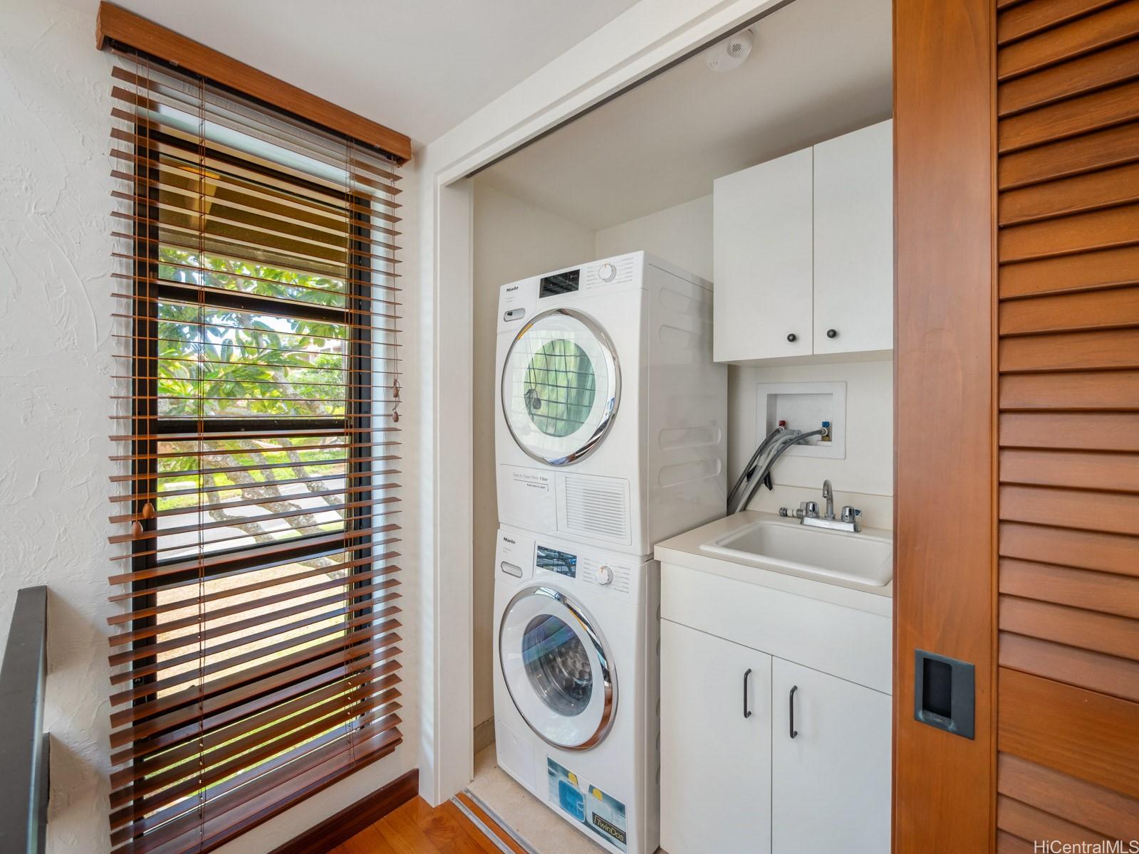 There is no building in front of this ideally located end unit to obstruct the gentle breezes, gorgeous mountain views and the park-like setting under mature shower trees. Bluestone, was thoughtfully designed to provide a gracious alternative to single family living including a fabulous pool, club house, tennis and more.  It is a short walk to the fabulous Lanikai beaches and hiking trails.  Kailua town, just a short drive away offers world class shopping, dining, hospitals,  public and private schools. Honolulu and the airport are 30-40 minutes away making Bluestone one of the most desirable addresses in Hawaii.