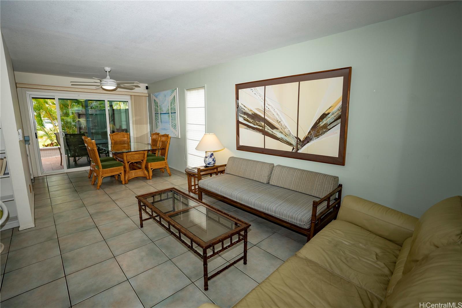 Highly desirable location in Koko Isle. Southwest orientation with unobstructed Marina views. Large grassy "park-like" setting from rear lanai. Pre-qualification or pre-approval letter required before any showing request will be considered. Note: Tax Office records show this unit as a 2 bedroom but downstairs room (den) is noted as the third bedroom for this listing. Boat dock may be available from the Association. Seller is firm at this price.