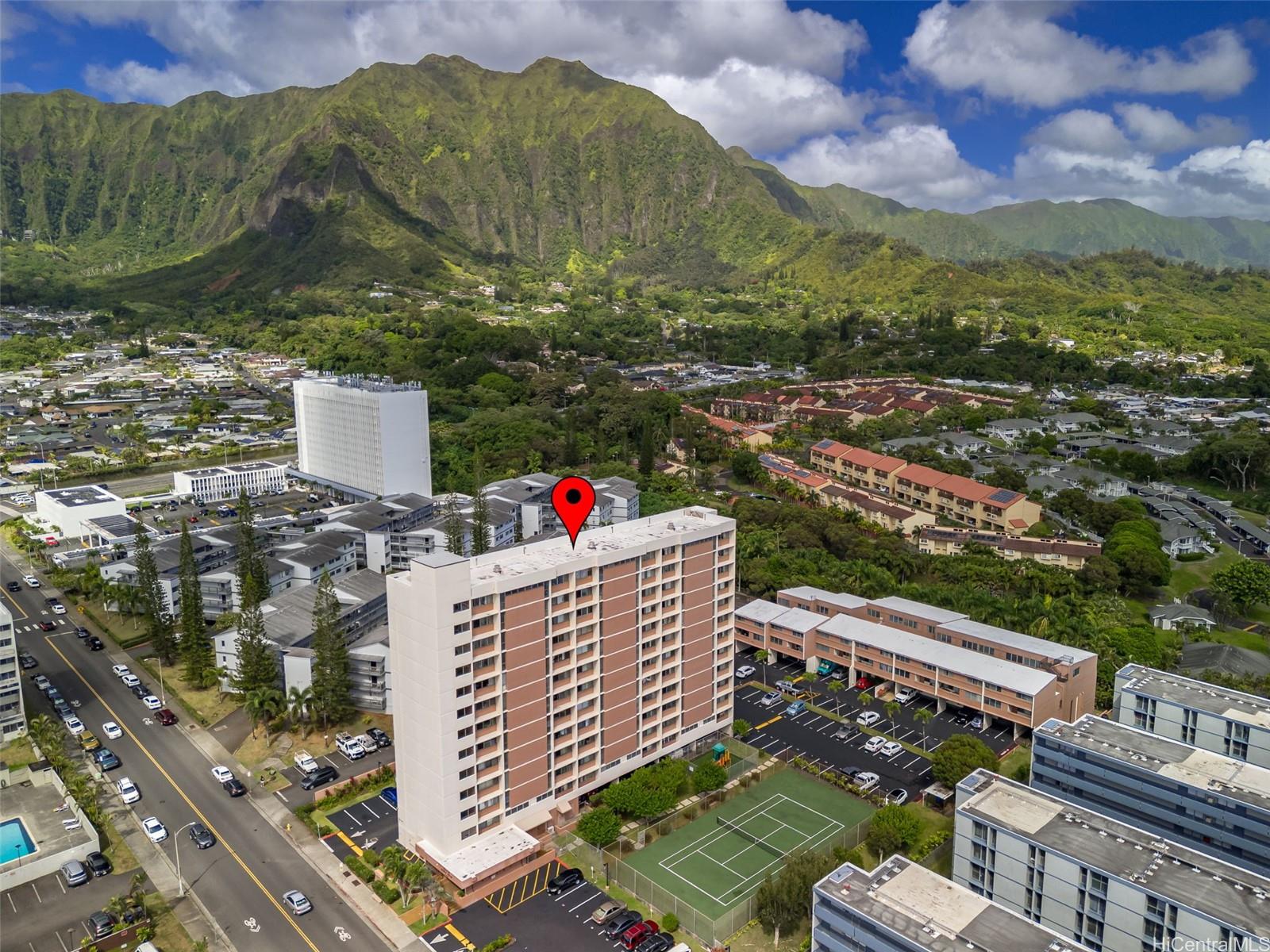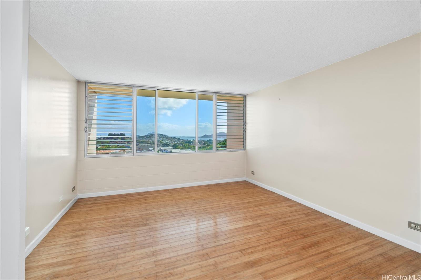 リビングルームからはオーシャンビュー、玄関からは雄大なコオラウ山脈の絶景を堪能できる、まさに理想の住まいです。ベッドルーム2室、バスルーム1室を備えたこのコンドミニアムは、すぐにご入居いただけるだけでなく、ご自身の個性を活かしたリフォームも可能です。広々とした間取りで涼しい風が吹き抜け、室内洗濯機/乾燥機、そして眺望を最大限に活かせる開放的なリビングエリアが特徴です。中心部に位置し、H-3号線、ショッピング、レストラン、学校、バス路線へのアクセスも良好です。建物には、セキュリティゲート、ゲスト用駐車場、テニスコート、バーベキューエリア、プレイグラウンド、そして常駐管理人など、充実した設備が備わっています。好立地で将来性のある住まいをお探しの方に最適です。管理費には、電気代、水道代、下水道代、ケーブルテレビ基本料金、インターネット代、共用エリアの維持費が含まれます。眺望、利便性、そして価値を兼ね備えた物件を所有するチャンスをお見逃しなく。