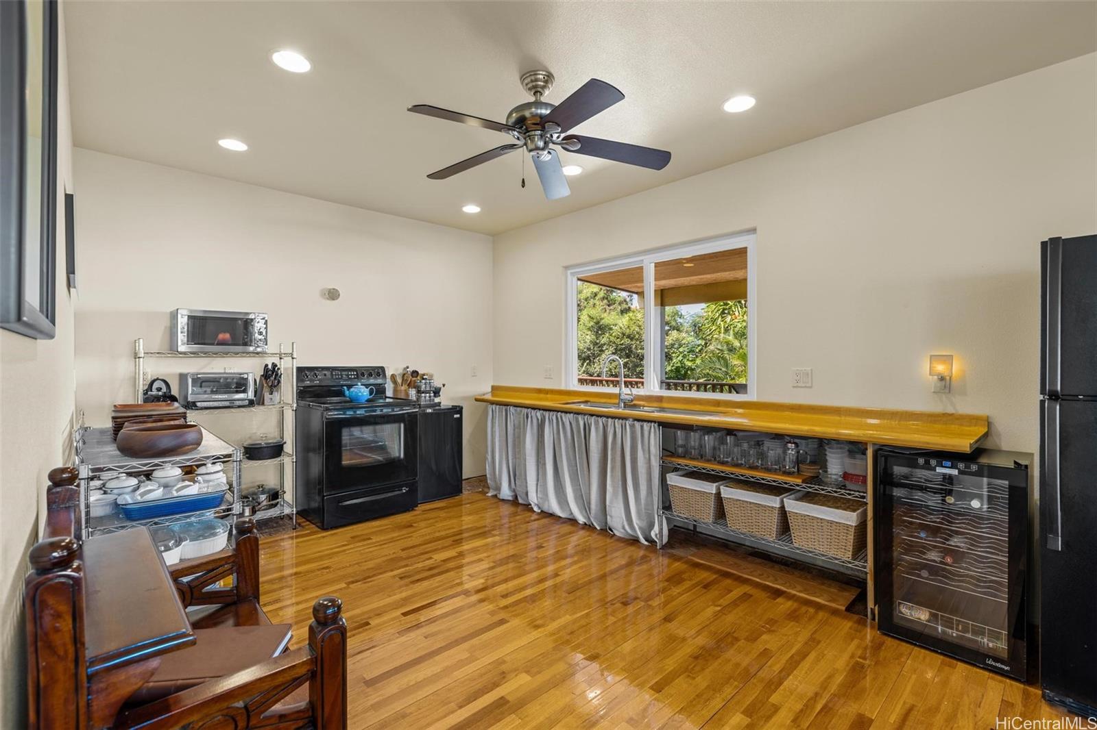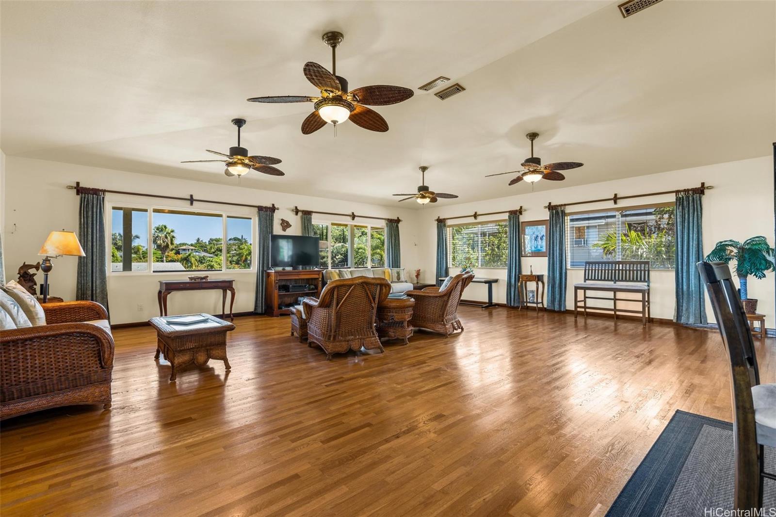 高い天井、ゆったりとした空間、そして手作業で仕上げられた木材のディテールが特徴のアイランドスタイルのリビング。2006年築の3ベッドルーム、3バスルームのこの住宅は、高い天井とそよ風を取り込み、青い水平線の景色を堪能できる設計となっています。建物全体にハードウッドフロアが敷かれ、カスタムメイドの木製仕上げが施されています。これは、造船業とクラシックな木製ヨットの修復を手がけるオーナーの職人技を反映しています。広々としたラップアラウンドベランダは、屋内と屋外の繋がりを豊かにし、階下の便利なバスルームは、ビーチやアウトドアアクティビティの後、2階へ上がる前に体を洗い流すのに最適です。厳選されたハードウッド材がいくつか残されており、次のオーナーがキャビネット、ビルトイン、その他の個性的な仕上げに組み込むのを待っています。実用的な設備としては、一年中快適に過ごせる断熱窓、広々とした収納と作業スペースを備えた2台分のフルサイズガレージ、そして浄化槽排水システムなどがあります。住宅の地下には、現在収納として使用されている地上階のスペースがあり、郡の規制に従い、将来的に拡張できる可能性があります。ここは、広々とした空間、そよ風、島の職人技の美しさ、そしてレイを作るためのプアケニケニ、プルメリア、ククイなどの木々を大切にする人たちの家です。