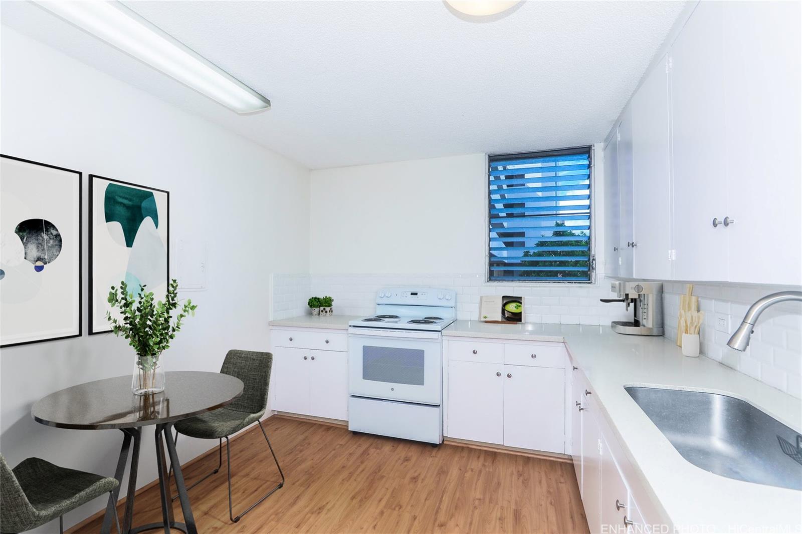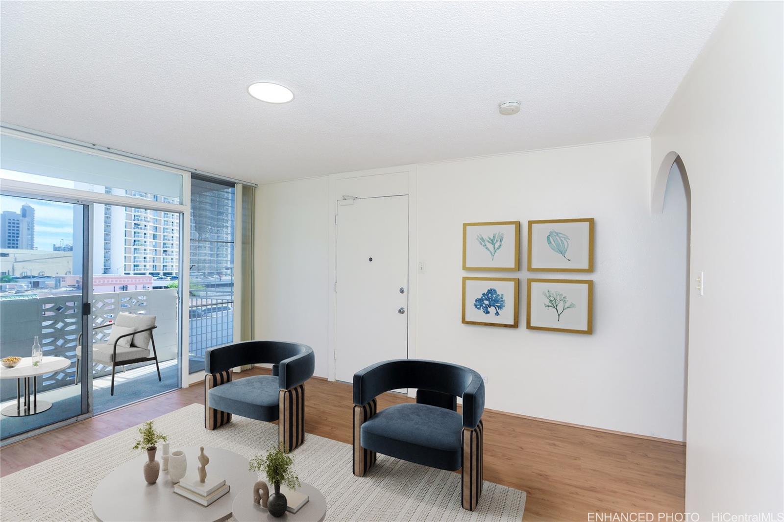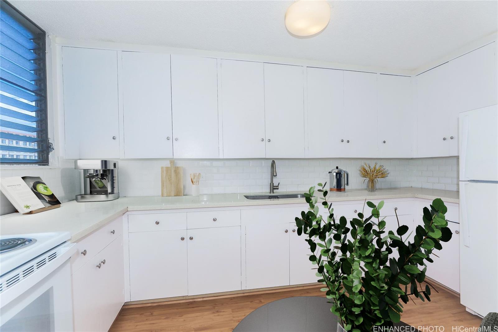 Newly Remodeled Condo with City and Waikiki Views. Welcome to this charming 2-bedroom, 1-bath unit featuring new remodeled luxury vinyl plank flooring, newly remodeled quartz countertops, freshly painted interior and kitchen cabinets, and a corner end unit for privacy. Enjoy sweeping views of the Hawaii Convention Center, city skyline, and Waikiki. Prime location just minutes from Ala Moana Shopping Center, Don Quijote, Ala Moana Beach Park, restaurants, and more. High walkability and convenient access to dining, shopping, and entertainment make this an ideal home or investment. Sold As Is, Buyers must act now!