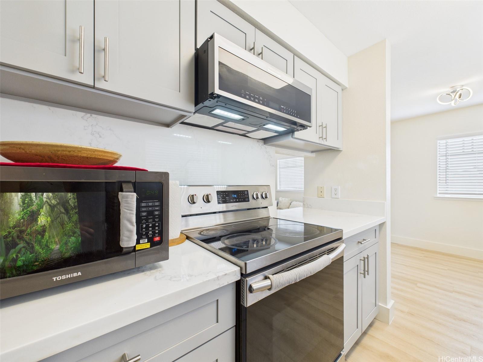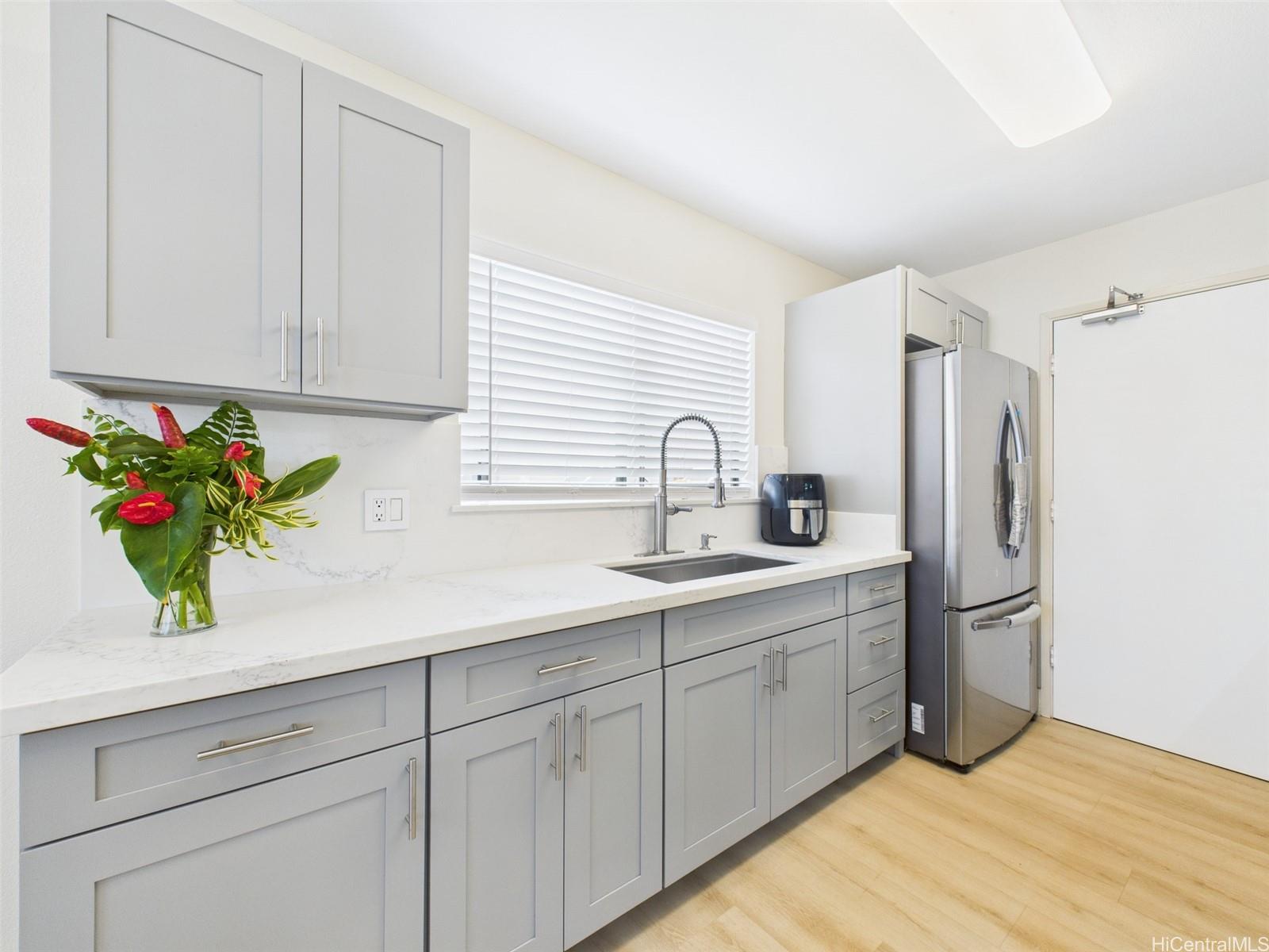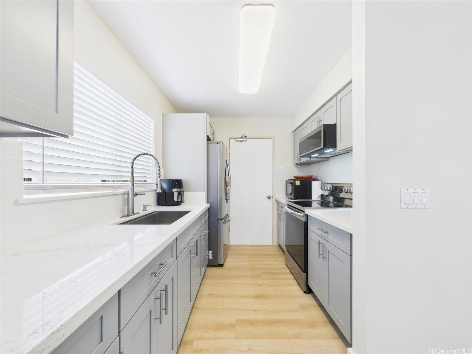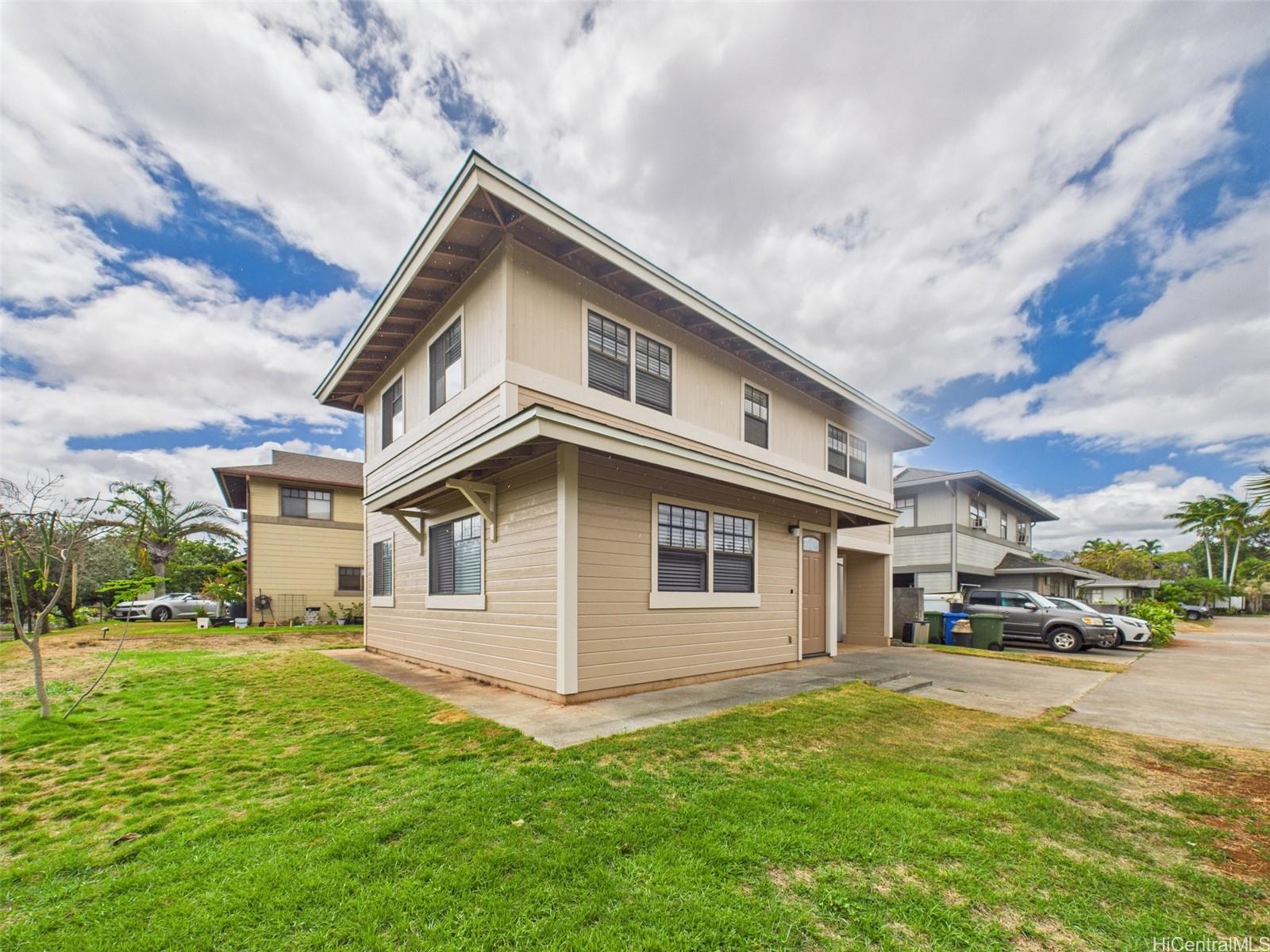Don’t miss the LOWEST PRICED single family home in Royal Kunia, an unbeatable opportunity to own a fully upgraded gem in this vibrant community! Enter into a move in ready masterpiece with a freshly transformed interior, showcasing brand new kitchen cabinets, stunning quartz countertops, and a matching quartz backsplash that elevate the heart of the home. The kitchen shines with a new undermount sink, sleek faucet, and a brand new microwave, complemented by newer stainless steel appliances ready for your culinary creations. Luxury vinyl flooring flows seamlessly throughout, paired with fresh interior paint for a crisp, modern feel. Both bathrooms boast new vanities, toilets, and shut off valves for added peace of mind. The spacious carport and driveway easily accommodates two vehicles. Nestled in the welcoming Royal Kunia community, you are just minutes from top rated schools, golf courses, shopping, and dining. And how could you forget that wrap-around yard, perfect for relaxing or entertaining guests! Will this be another home that got away? Well that's up to you! Open House: Sunday 10/8, 2 to 5 PM.