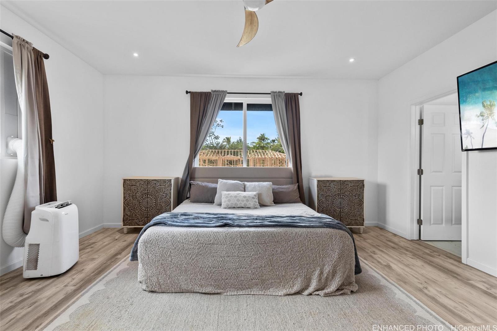 ハワイアン パラダイス パークの 15-1430 19th Ave へようこそ。1 エーカーの土地に建つユニークな物件です。この家は、カスタムメイドの木製パネルとカスタムメイドの岩の細工が家の正面に施された趣味の良い造りになっています。特大の木製ドアから家に入ると、高さ 9 フィートのアーチ型天井のオープン リビング ダイニング エリアが広がります。このエリアは、キッチン、バスルームのキャビネット、洗面台の壁とベースに埋め込まれたアクセント LED ライトに囲まれています。特大の主寝室にはフレンチ ドア、ウォークイン クローゼットとビルトイン シェルフがあります。主寝室には、カスタムメイドのスタンドアップ シャワーと彼と彼女のシンク、クォーツのカウンタートップ、ゴールドのアクセントが付いたスタイリッシュなネイビー ブルーのキャビネットが備わっています。家の反対側には、さらに 2 つの特大の寝室と、タイル張りのスタイリッシュで豪華なバスルームと水力発電式の蛇口があります家の外観は、フェンスで囲まれた透明なキャンバスで、自分だけの空間を創り出せます。家自体は、洗練されたサイディングと、溝彫りの合板を組み合わせた特注の仕上げです。