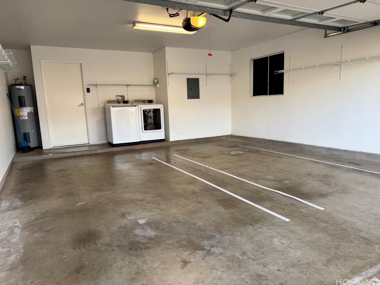 Welcome to Village on the Green, where comfort meets convenience. This highly sought-after 3-bedroom, 2.5-bath home offers 1,446 sq. ft. of living space plus an attached 385 sq. ft. two-car garage. Vaulted ceilings and abundant natural light create an open living space, perfect for entertaining or relaxing at home. The main level features a welcoming living room, functional kitchen, and convenient half bath. Upstairs, you’ll find a generous sized main bedroom with en suite full bath, and two additional bedrooms and one full baths, providing ample privacy and space. Step outside to your fenced-in yard, easily accessible from the living room—ideal for gatherings or a quiet morning coffee. Located near Waikele Country Club and Waikele Premium Outlets, you’ll enjoy easy access to golf, shopping, dining, and more. Sold AS-IS.