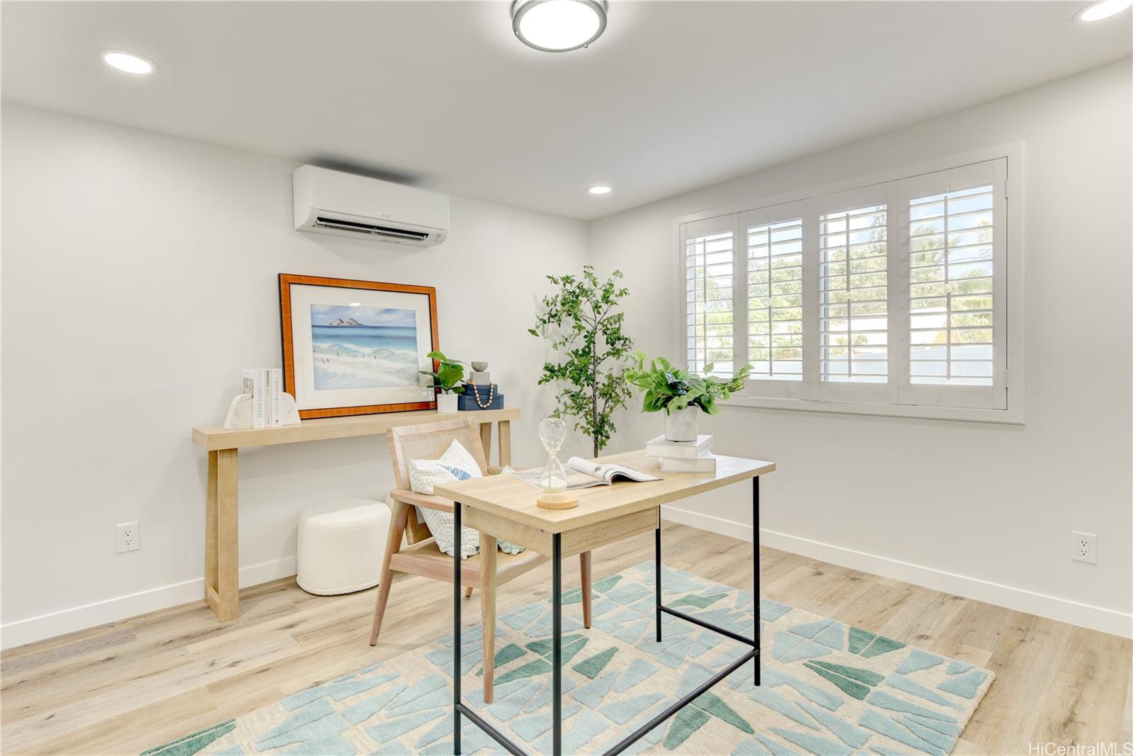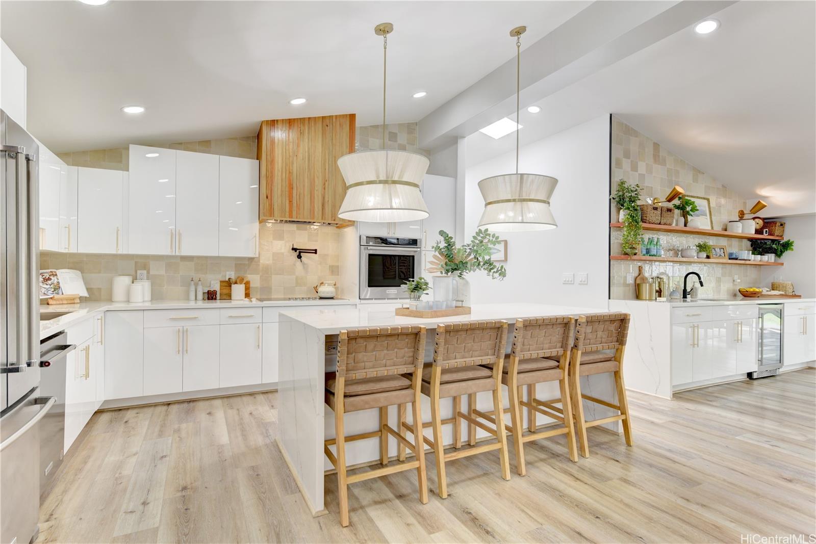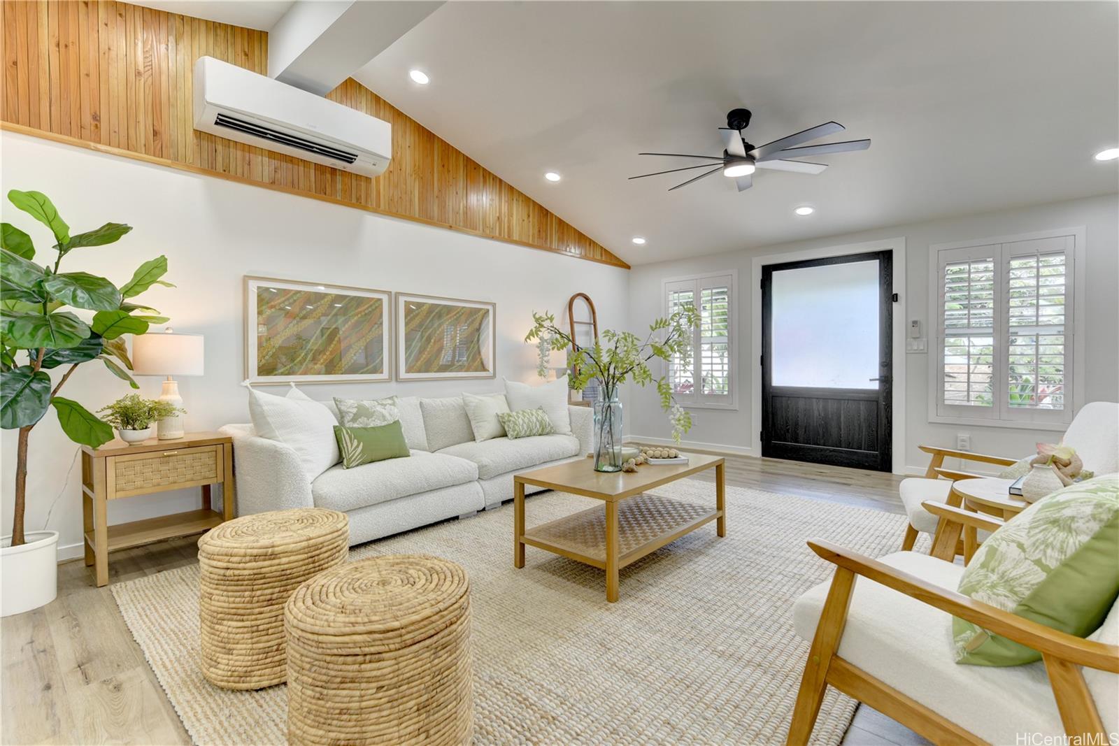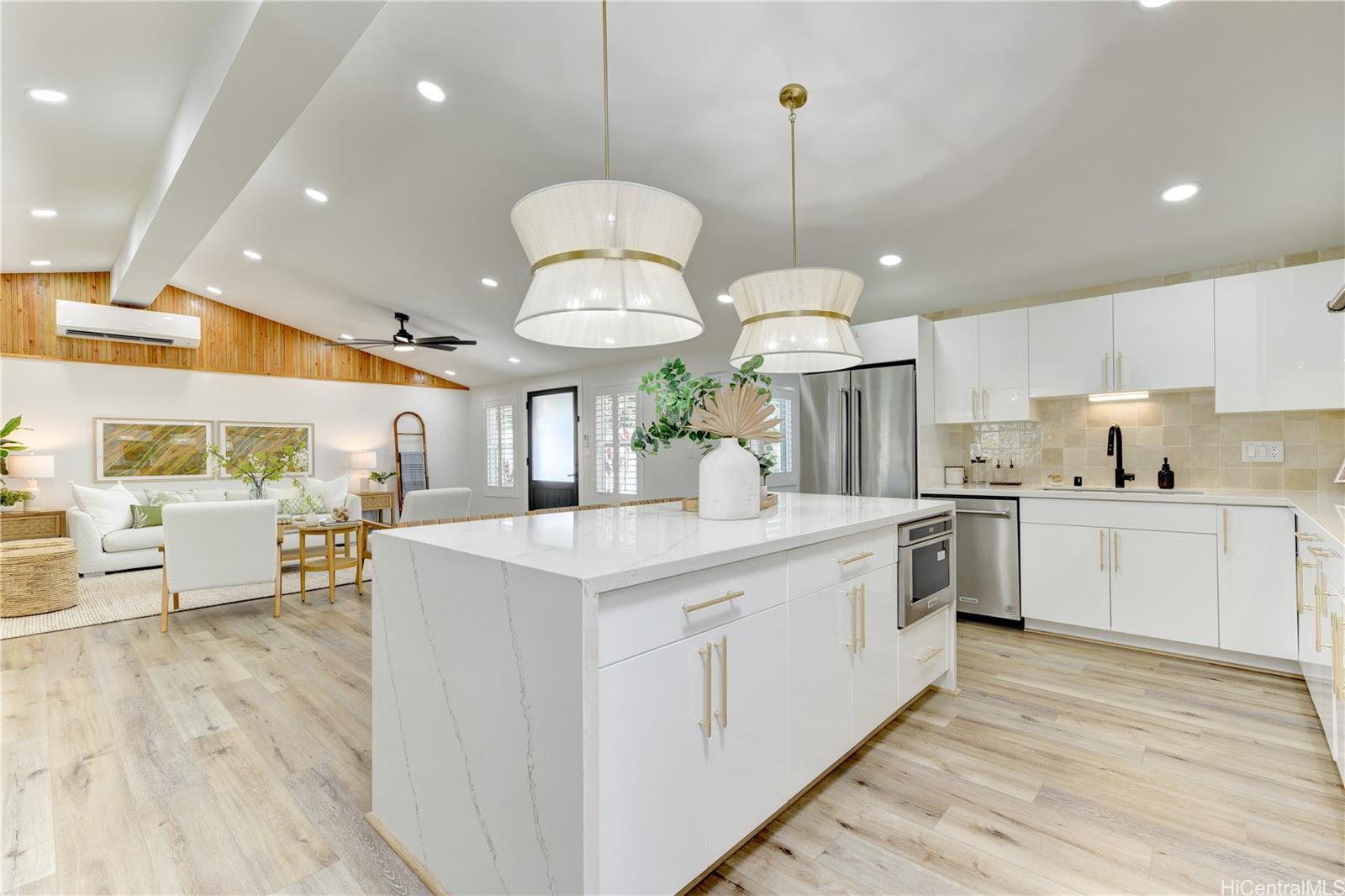 Fall in love with Kailua living in this beautiful home with luxury upgrades in the highly desirable Kalaheo Hillside neighborhood. The open floor plan and spacious layout with vaulted ceilings invite light and connection, seamlessly flowing into the living and dining areas creating the perfect gathering space. Appreciate the modern kitchen with quartz countertops, white cabinetry, and stainless steel appliances with luxury vinyl plank flooring and split AC throughout, providing both luxury living and comfort. The spacious yard invites outdoor gatherings also offering the potential for a legal ohana unit with included architectural plans. Perfectly situated for ocean lovers, this home is just minutes from Kailua Beach, Kaneohe Bay, and Kaneohe Yacht Club perfect for surfing, paddling, sailing, or simply enjoying the turquoise waters. The prime location offers everyday convenience with Aikahi Shopping Center, Kaneohe Marine Base, and quick access to H-3. This home enjoys access to schools including Aikahi Elementary, Kailua Intermediate, and Kalaheo High. Experience the best of island living where comfort, convenience, and coastal lifestyle come together in one exceptional home.