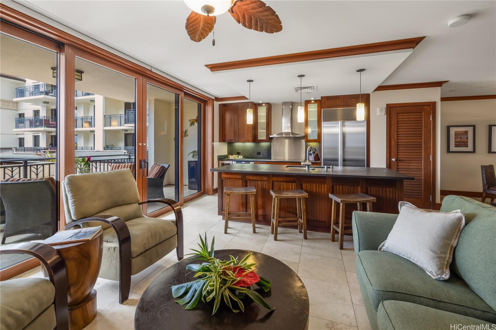 Discover Villa O-202 in the Ocean Tower at the Beach Villas at Ko Olina, where comfort and resort living come together. This 3-bedroom, 2.5-bath villa offers breathtaking views of the pools and ocean, enjoyed from your private lanai. The open floor plan features a gourmet kitchen with high-end appliances, spacious living and dining areas, and tasteful finishes that create a relaxed yet elegant atmosphere. Designed for both full-time and part-time living, this home provides the ideal balance of privacy and convenience. A private elevator, shared with just one other residence, offers easy access from the garage directly to your villa. Ko Olina’s resort community features four pristine lagoons, a championship golf course, spa services, fine dining, shopping, and year-round activities. Approved for vacation rentals, this villa offers excellent income potential when not in use. Experience sunsets over the Pacific and the ease of true resort living. Your island escape awaits!