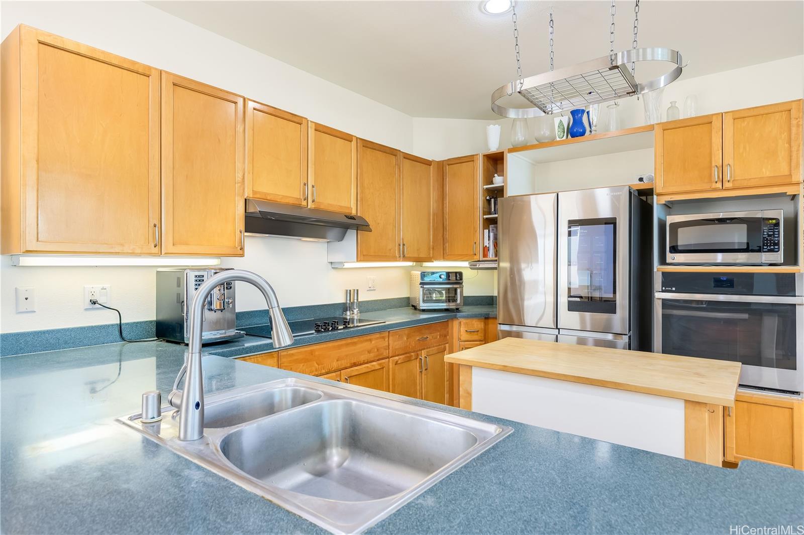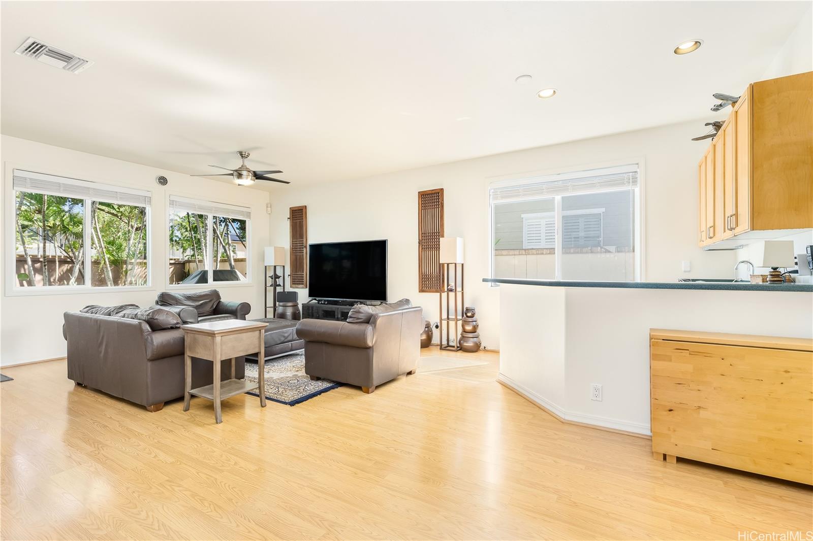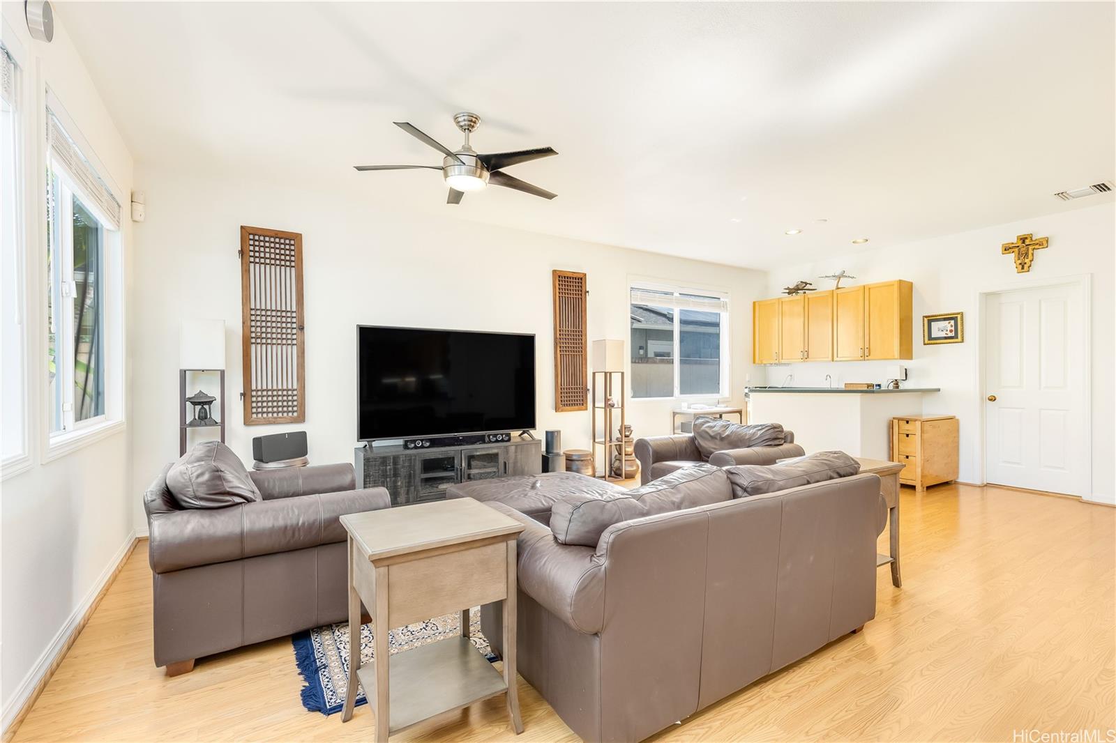 Discover this spacious executive-style home in Ewa Gentry Carriages! The desirable Lexington model offers 2,496 sqft. of interior living with 4 bedrooms, 3 bathrooms, a 2-car garage and an attached workshop situated on a corner lot. Step through the double entry doors into a welcoming secondary living room that flows into the formal dining area. The kitchen boasts a breakfast nook, generous cabinet space, island seating and opens up to the formal living room complete with a wet bar. Located just off the living room is the separate laundry area which leads into the garage and workshop. Upstairs you’ll find 3 guest bedrooms, a study nook, full guest bathroom and a spacious primary suite with its own ensuite bathroom and a walk-in closet with a built-in storage system. Outside, enjoy your private backyard retreat with mature palms providing shade which is ideal for gatherings and relaxation. Additional features include 51 leased solar panels resulting in a credit on current owner's HECO bill, a newer roof, brand new AC system and fresh exterior paint completed about 4 years ago. Enjoy the convenience of being near shopping, restaurants, banks and Ka Makana Alii mall just minutes away.