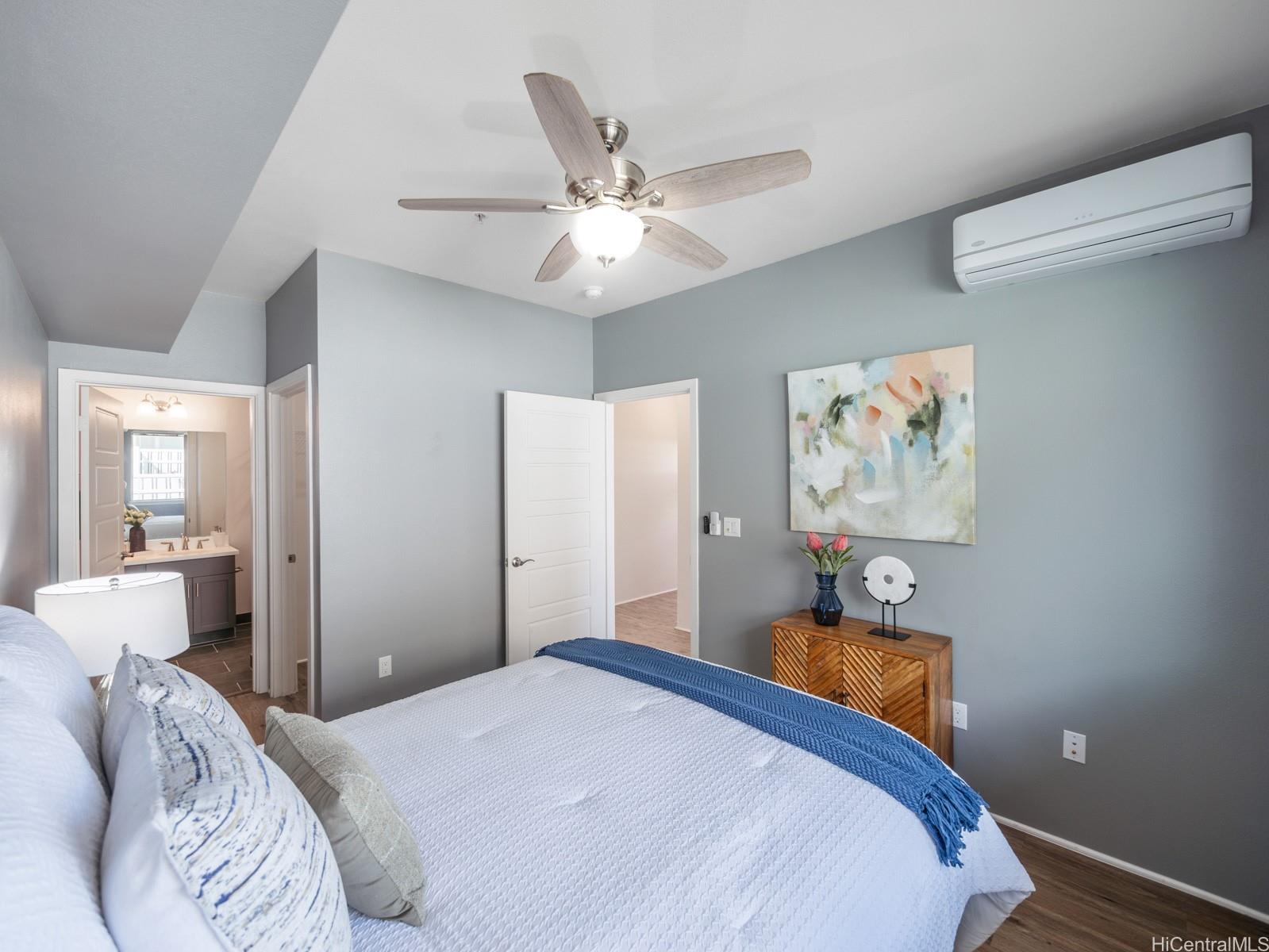 Welcome to this charming 2-bedroom, 2-bath single level townhome, nestled in a vibrant community offering a perfect blend of comfort and convenience. The open floor plan seamlessly connect the living room, dining and kitchen area providing an ideal layout for both relaxation and entertaining. The well appointed kitchen features modern appliances, plenty of counter space and ample storage making meal preparation a breeze. Retreat to the spacious primary bedroom complete with a private en-suite bathroom and walk-in closet for added convenient and privacy. The second bedroom offers flexibility for guests, a home office or whatever suits your lifestyle needs. Outside you will find your own private fenced in yard a perfect place for your furry friend or fun kids play space. All this just minutes away from all conveniences such as the rail, UH West campus, Ka Makana Ali'i mall, stores, restaurants, beach and so much more. Come see it today!