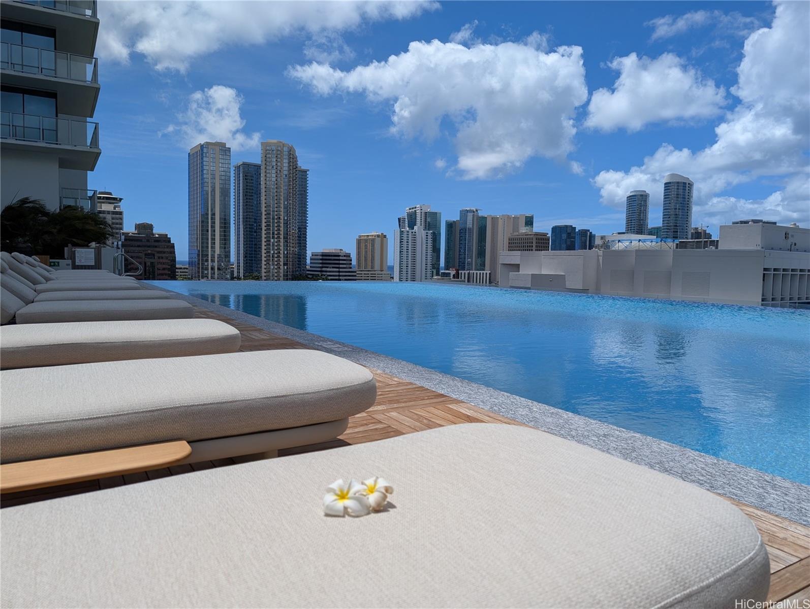 Rare Opportunity-Largest Studio at The Park on Keeaumoku! Don't miss your chance to own the largest studio floor plan in one of Honolulu's most exciting new developments! Located on a desirable mid-high floor, this bright, open-concept unit features floor-to-ceiling windows, modern finishes, split A/C, and a private lanai-- perfect for relaxing or entertaining. Enjoy over an acre of resort-style amenities: a stunning infinity pool & spa, fitness center, sauna, movie theatre, karaoke room, BBQ cabanas, co-working spaces, and more. Located in the heart of town, just minutes from Ala Moana Center, the beach, Waikiki, and quick freeway access. Plus, enjoy the ultimate urban lifestyle with shops and restaurants right downstairs on the 1st and 2nd floors. Experience modern island living with style, convenience, and unbeatable location.