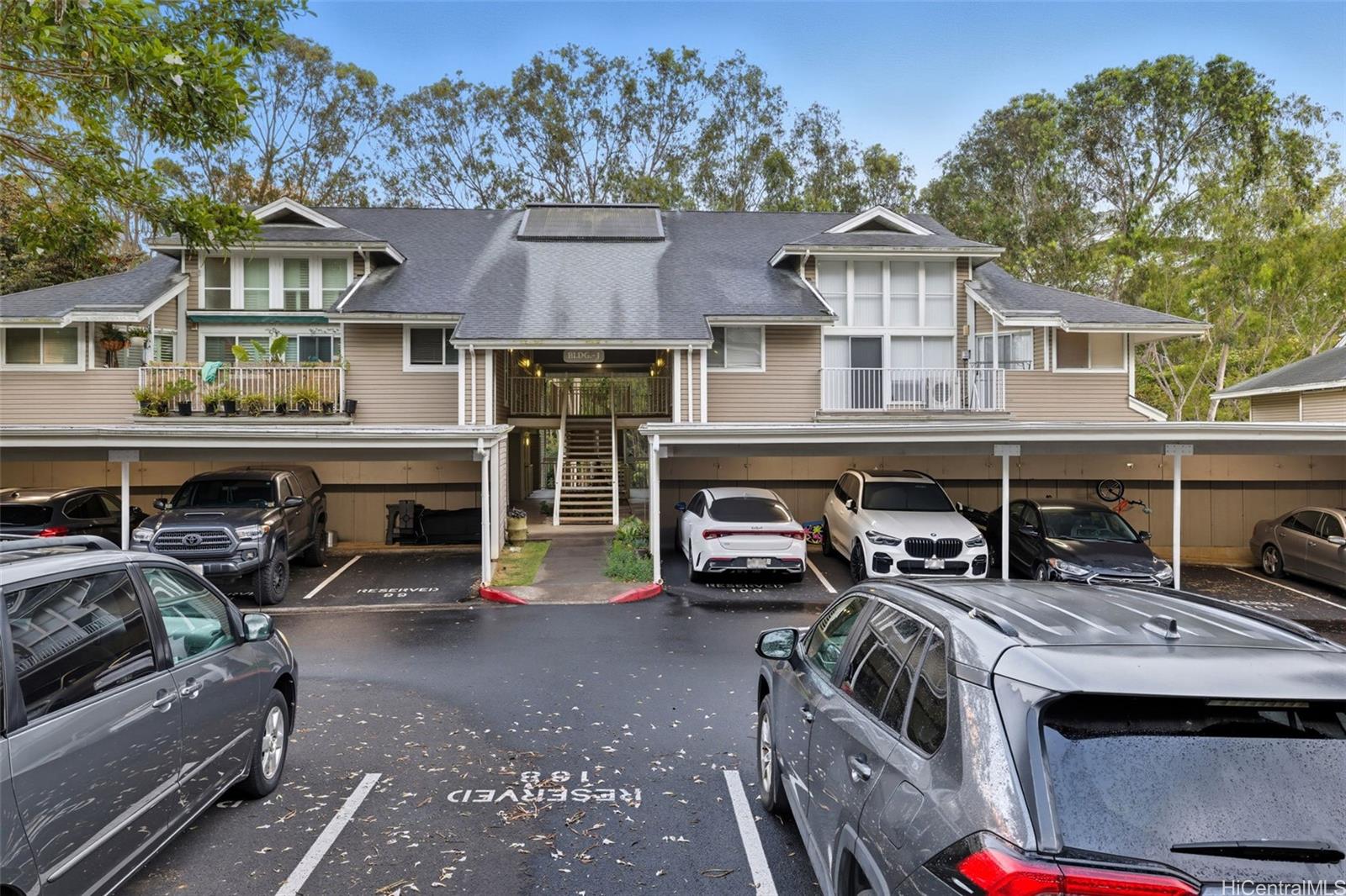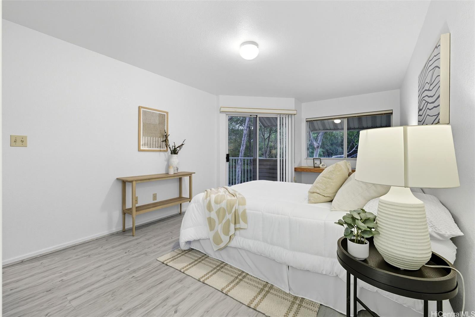 E Komo Mai! Welcome to this beautifully remodeled 3-bedroom, 2-bath split-level residence in Evergreen Terrace, offering a serene and tranquil setting. Upgrades include luxury plank flooring, fresh interior paint, updated kitchen cabinetry, and refreshed bathrooms with new vanities, toilets, and reglazed showers. Additional storage located in front of covered parking stall. The bright, open layout flows seamlessly, with a versatile loft space ideal for an office, guest room, or private retreat. Enjoy the convenience of two assigned parking stalls (one covered, one open) plus ample guest parking. Community amenities—pool, whirlpool, BBQ area, and playground—make it easy to relax and entertain. Perfectly located near shopping, dining, and major thoroughfares, this move-in-ready residence is truly a must-see.