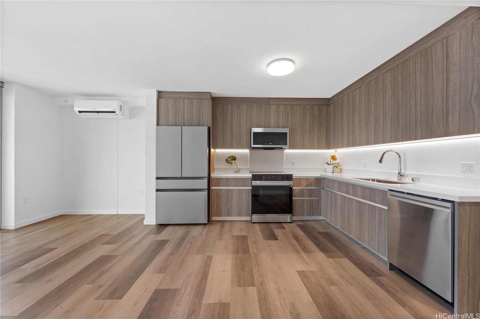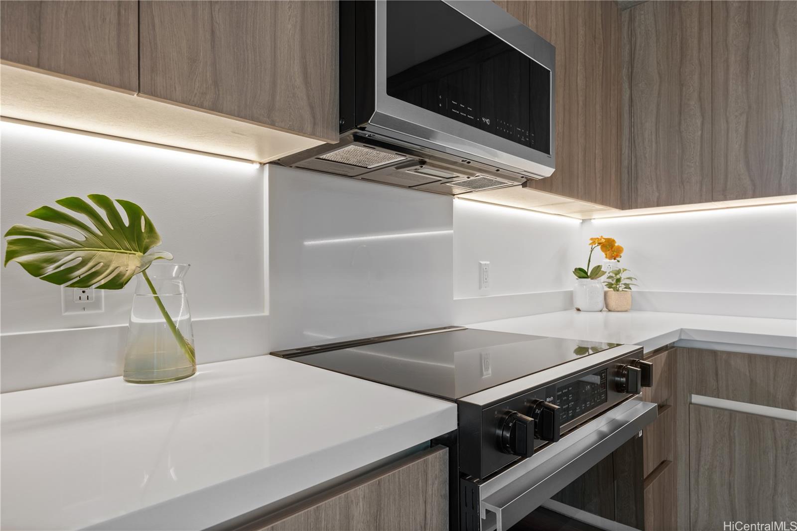 Modern High-Floor 1-Bedroom at The Park on Keeaumoku - Urban Living with Iconic Views. Discover elevated island living in this stunning 1-bedroom, 1-bath residence perched on a high floor at one of Honolulu's most dynamic new developments. From your private lanai, take in sweeping views of the skyline, lush mountains, and the iconic silhouette of Diamond Head. Thoughtfully designed with an open-concept layout, this home is bathed in a natural light through expansive floor-to-ceiling windows. The sleek, modern kitchen features quartz countertops, soft-close cabinetry, and premium stainless steel appliances - ideal for everyday living or entertaining guests.