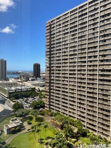 Beautifully remodeled in 2021, 1 bedroom 1 bath condominium in Kukui Plaza Diamond Head Tower with city, mountain and ocean views. Features shaker style wood cabinets in kitchen and bathroom vanity, quartz counter tops, tiled shower walls, refinished ceilings, and luxury vinyl flooring. Air conditioner, appliances and counter top microwave included. Enjoy the pool, BBQ areas or walk through the beautiful landscaped gardens. Located at the top of Downtown Honolulu near shops and eateries. Monthly public parking in the complex.