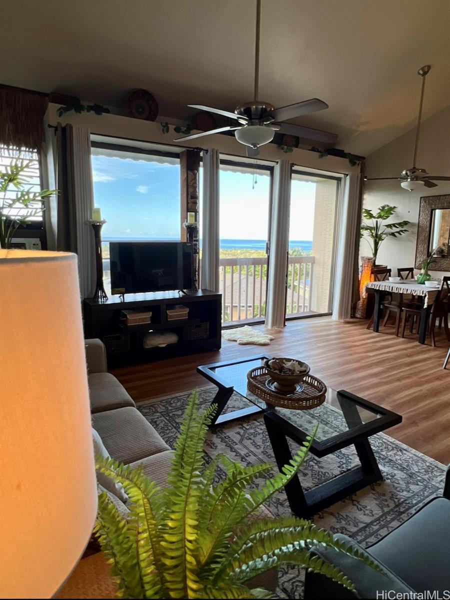 Discover your island retreat in this rare front rim,top-floor condo in Makaha Valley. With unobstructed ocean and mountain views and soaring cathedral ceilings,this 2 bed,1 bath home feels bright,spacious, and truly unique. Thoughtfully decorated in an island-inspired style, it offers a warm relaxed atmosphere and is being sold as-is and furnished-ready for you to enjoy or make your own.