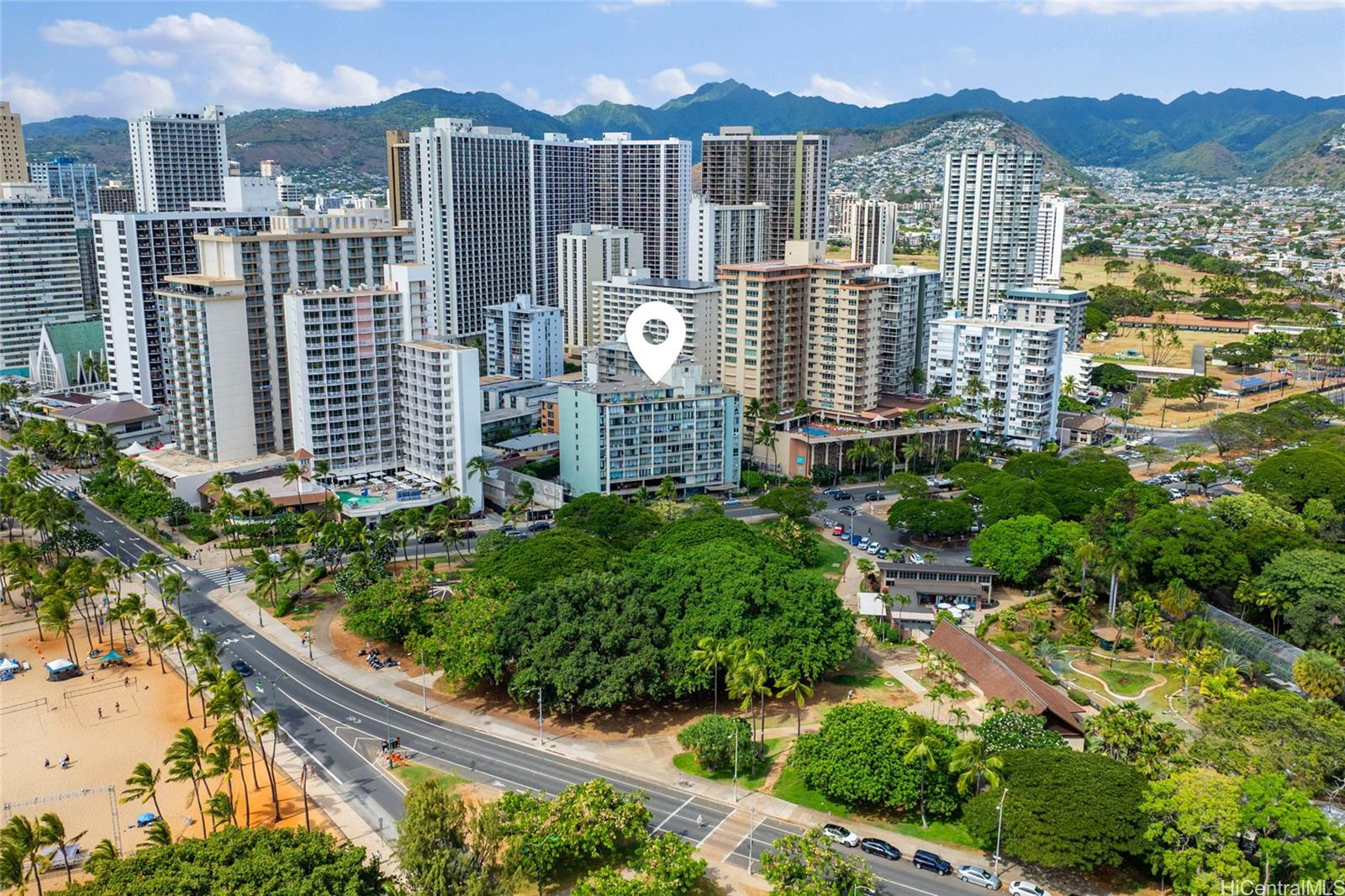 人気のワイキキグランドホテル内にある、美しく装飾されたこのスタジオで、ワイキキの魅力を満喫してください。短期賃貸物件として法的に認められており、ワイキキの魅力を最大限に体感できます。太陽が輝くワイキキビーチ、様々なアクティビティ、ショッピング、レストラン、バー、カピオラニ公園、ホノルル動物園、ワイキキ水族館など、すべてがすぐそばという抜群の利便性をお楽しみください。ワイキキ「イースト」のこの最高のロケーションは、サーフィンの名所としても知られています。可愛らしいこのユニットには、バスタブとシャワーが一体になったバスルーム、洗面台、キャビネットが備わっています。スタイリッシュな簡易キッチンには、フルサイズの冷蔵庫、コンロ、オーブン/トースター、電子レンジが完備されています。建物内には、スイミングプール、共用ランドリー、アクティビティデスク、伝説的なフラズバー、テディーズ・ビガーバーガーズレストラン、そしてフレンドリーな24時間対応のフロントデスクなど、充実したアメニティをご用意しています。10階のサンデッキパティオからは、ダイヤモンドヘッドと太平洋の息を呑むようなパノラマビューをお楽しみいただけます。当物件はリースホールドのコンドミニアムホテルで、管理組合を通じて購入可能です。内覧にはご予約が必要ですので、プライベートビューイングをご予約ください。