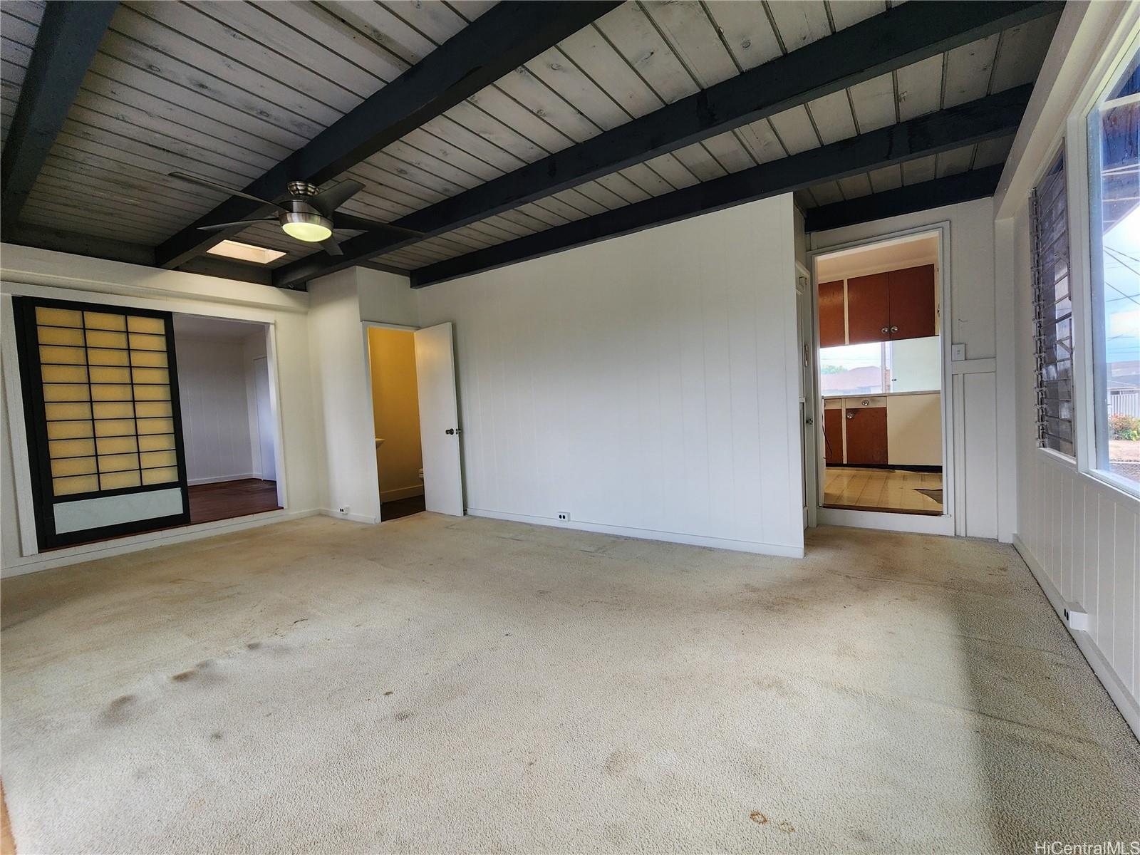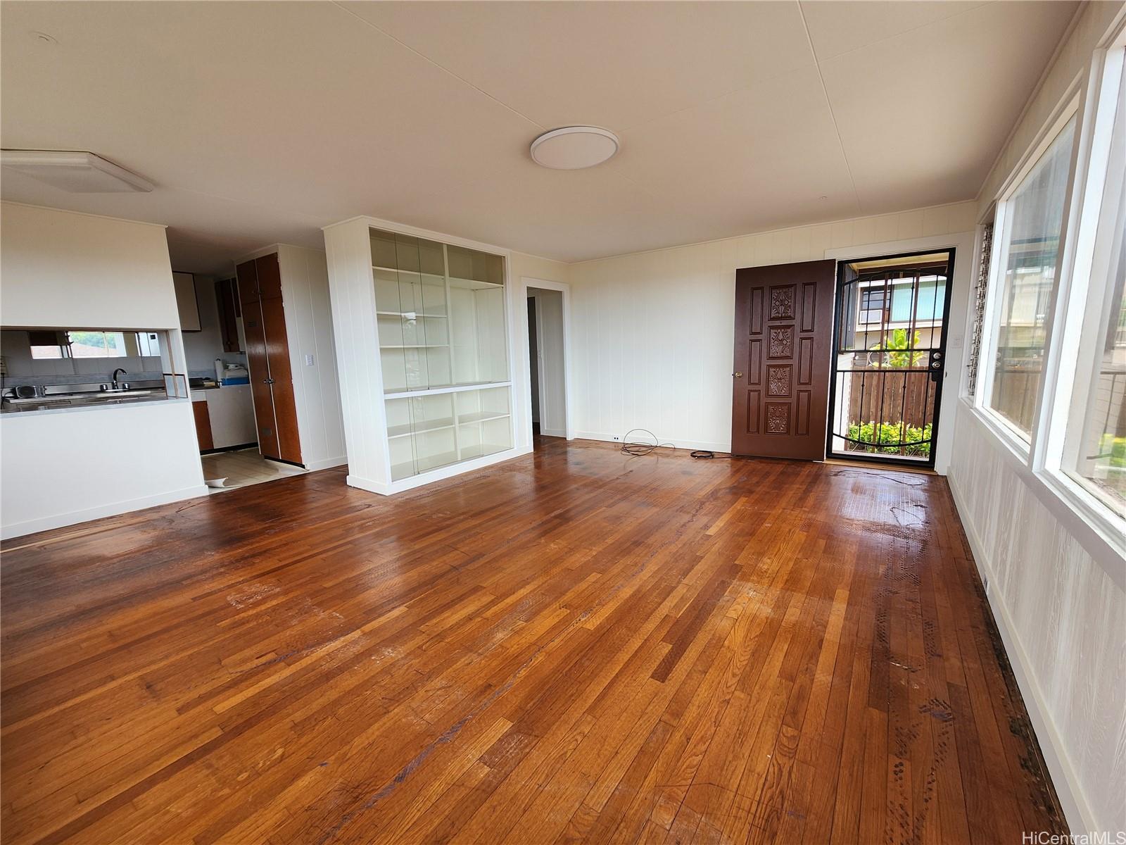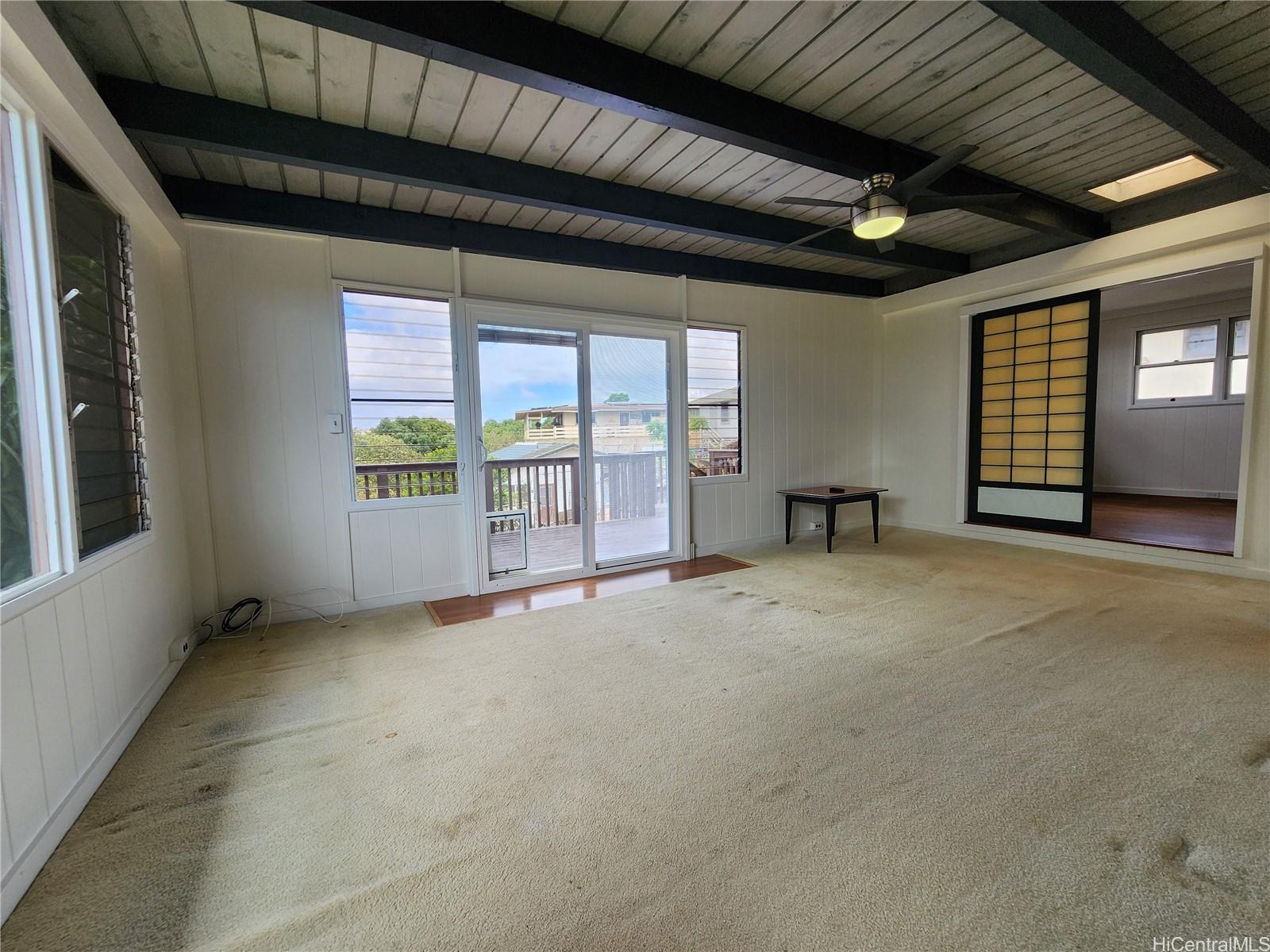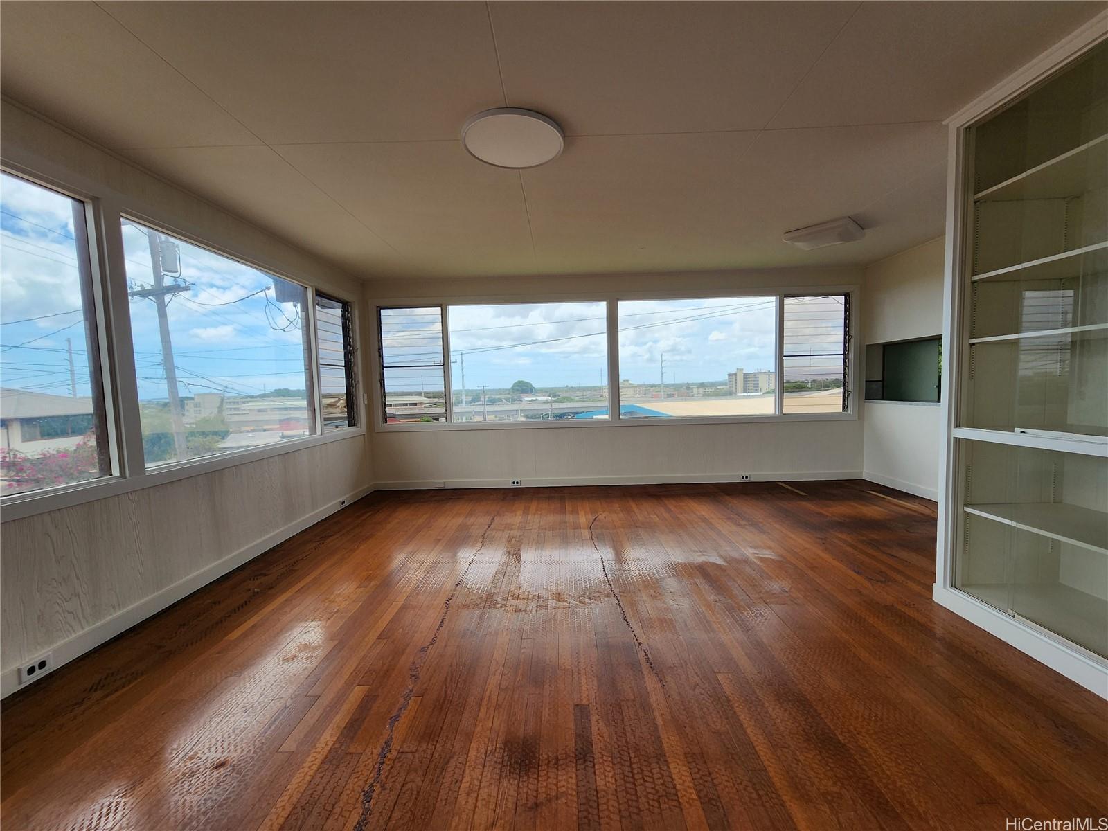 パールシティに位置し、パールシティ・ショッピングセンターを見下ろす角地にある3ベッドルーム、1.5バスルームの住宅です。マカイ通りの左側には隣家がなく、近隣の眺望も良好です。住宅の骨組みはしっかりしており、構造状態も良好です。外装と内装は新しく塗装され、屋根は最近シリコンコーティングされています。キッチンはオリジナルの状態のままで、家電製品はありません。購入者はご希望に応じてリフォーム・リノベーションが可能です。室内は床材の張り替えが必要ですが、オリジナルのフローリングは再仕上げも可能です。住宅は地上より高く建てられており、1階には部分的に囲まれたガレージ、ランドリー/洗面所とトイレ、屋根付きのパティオがあります。住宅の下には十分な収納スペースがあります。敷地は壁とフェンスで完全に囲まれています。住宅裏のデッキとスロープは建築許可なしで設置されました。物件は「現状有姿」で販売されます。