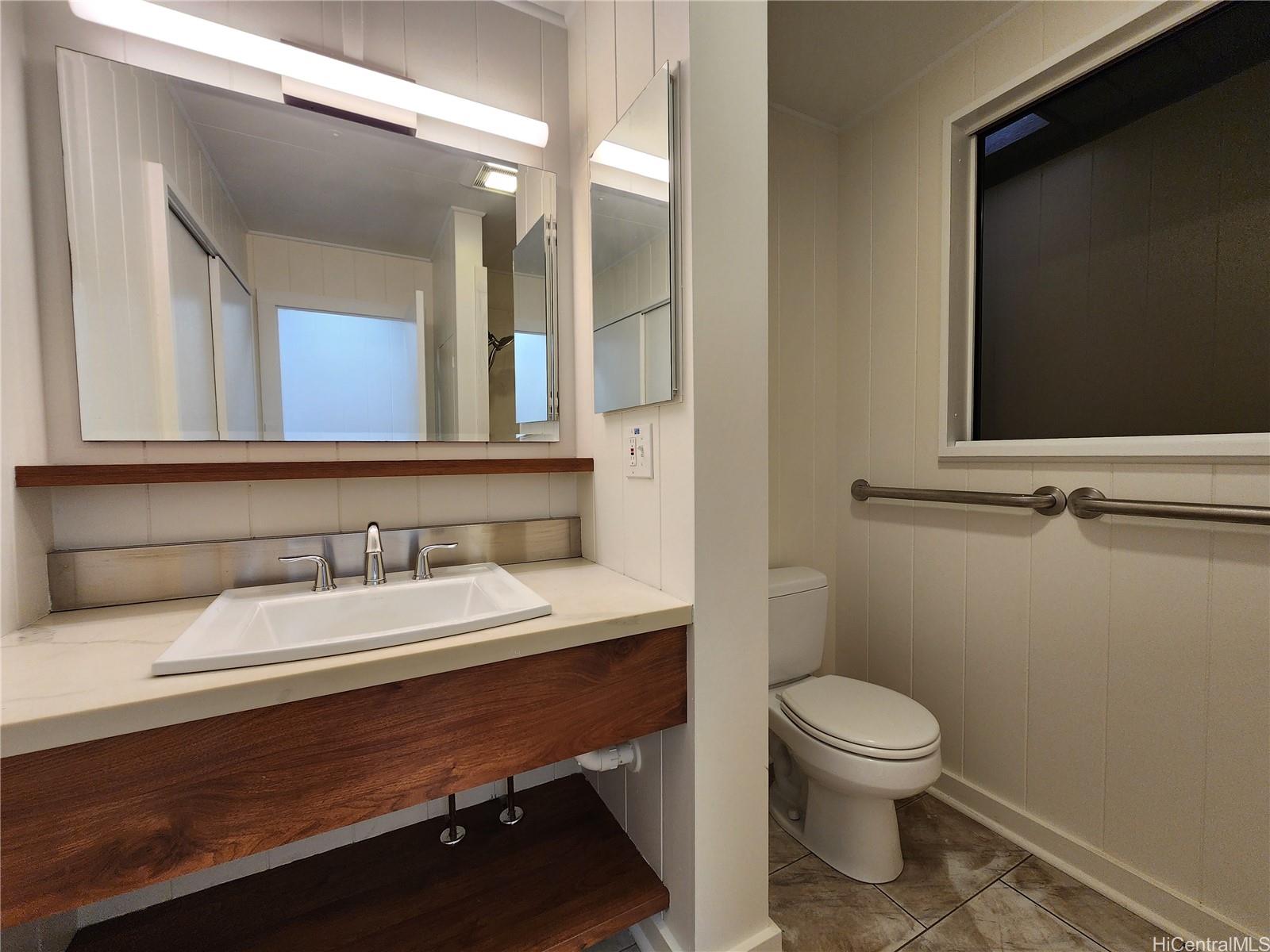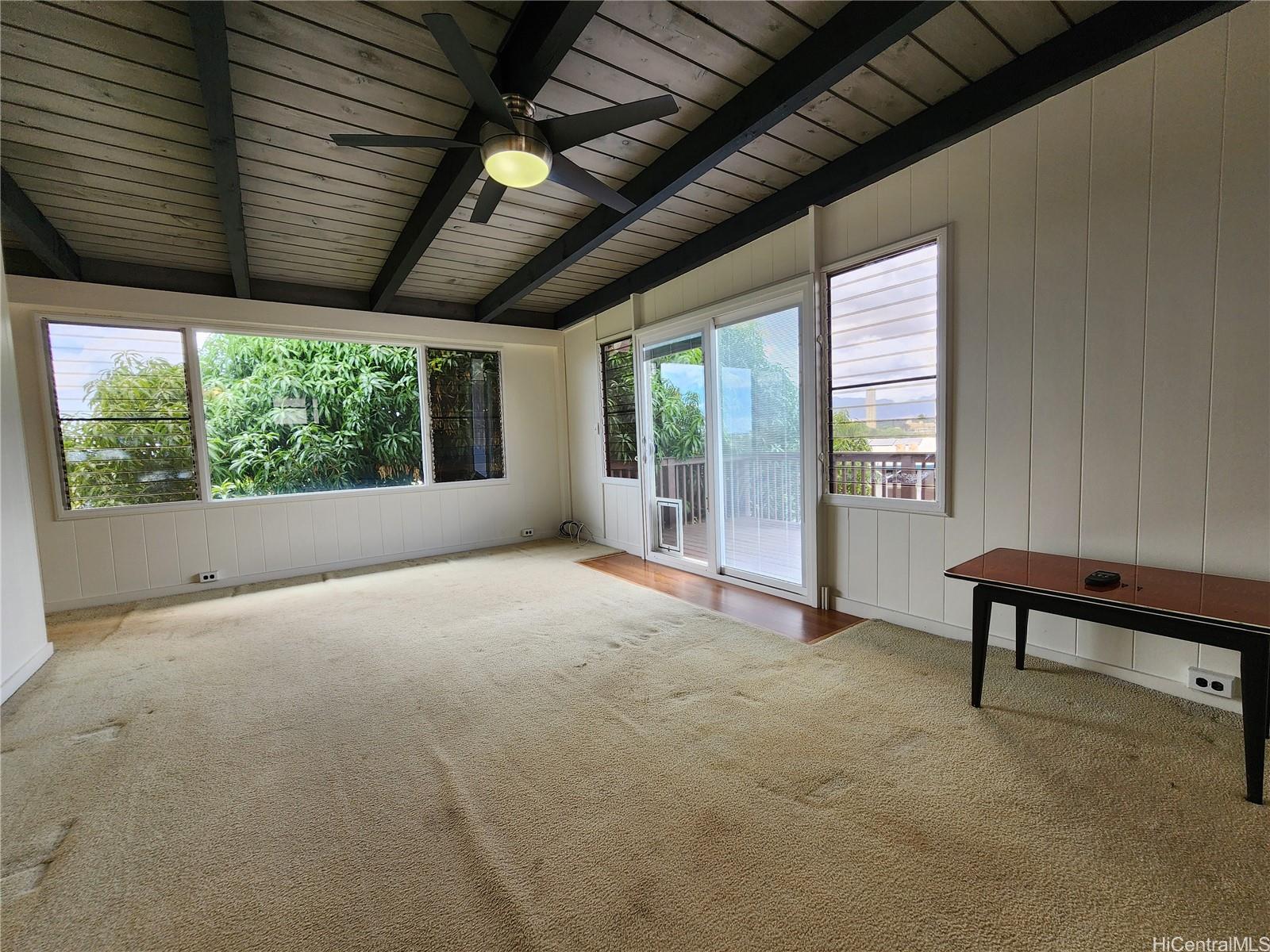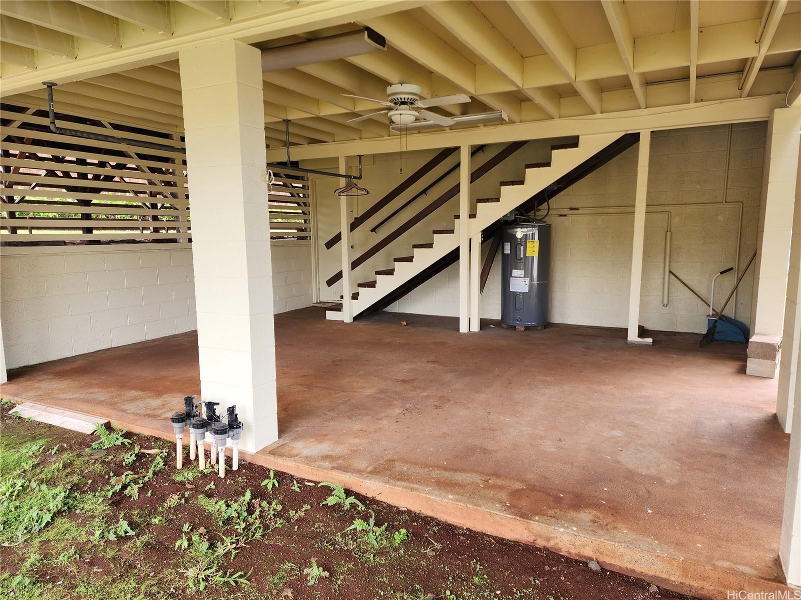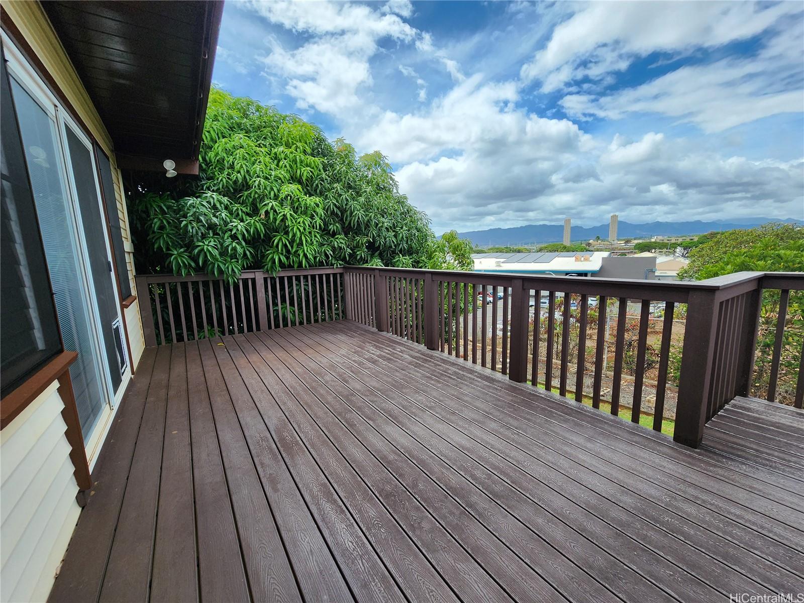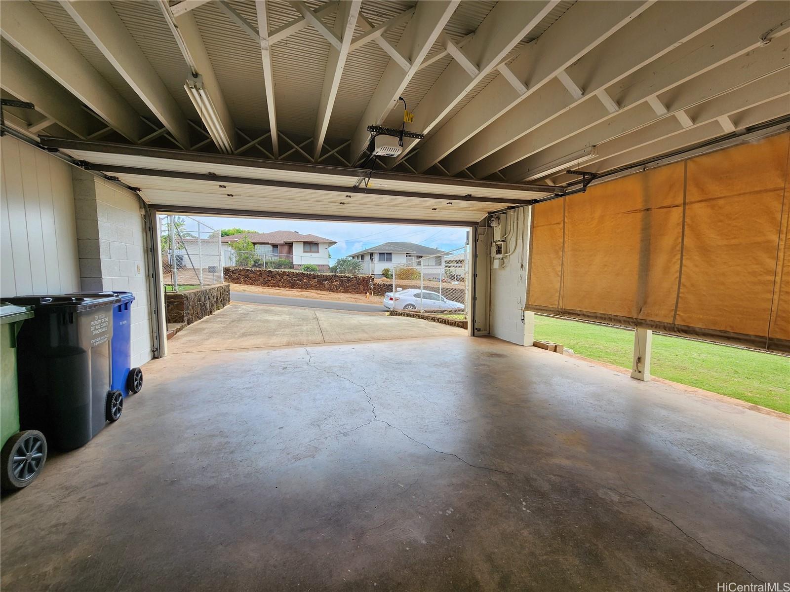 In Pearl City, located overlooking the Pearl City Shopping Center. 3-Bedroom, 1.5-bath house on a corner lot. No neighbor on Makai left-side, has good view of the neighborhood. House has "good bones" and is in good structural condition. House exterior trim and interior has been newly painted and roof has been recently silicone coated. Kitchen is in original condition and has NO appliances - opportunity for Buyer to remodel/renovate to their desire. House interior also needs new floor coverings or the original hardwood floors can be refinished. House built elevated above ground and has a partially enclosed garage, laundry/wash room area with an adjoining toilet and covered patio area on the ground floor. Lots of storage area under house. Property is fully enclosed with walls and fencing. Deck and ramp at rear of house was built without a Building Permit. Property to be sold in "AS-IS" Condition.