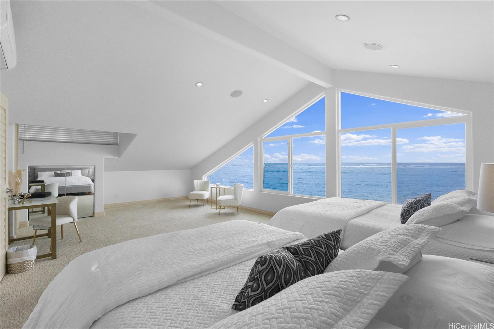 オアフ島東側で、究極のオーシャンフロントライフをご体験ください。この素晴らしい4ベッドルーム、4バスルームの邸宅は、モダンなエレガンスと島の魅力が融合し、ほぼすべての階から海と山のパノラマビューをお楽しみいただけます。2019年に綿密に改装されたこの住宅は、複数の居住スペースを備えた柔軟な間取りを提供しています。1階には独立した玄関とバスルームを備えた広々としたレクリエーションルーム、2階には光あふれるメインリビングエリアとシェフ風のキッチン、そして最上階にはロフト兼オフィスを備えた静かなプライマリースイートがあります。高級な仕上げと上品な家具が、洗練されながらも居心地の良い雰囲気を醸し出しています。外に出れば、直接水辺にアクセスでき、穏やかな貿易風と太平洋から昇る無限の日の出をお楽しみください。2003年に最新の設備とスタイリッシュなデザインで建てられたこの希少なオーシャンフロントの邸宅は、洗練さと快適さ、そしてゆったりとした島の暮らしのペースが完璧に調和しています。ハウウラの楽園を所有する絶好の機会です。