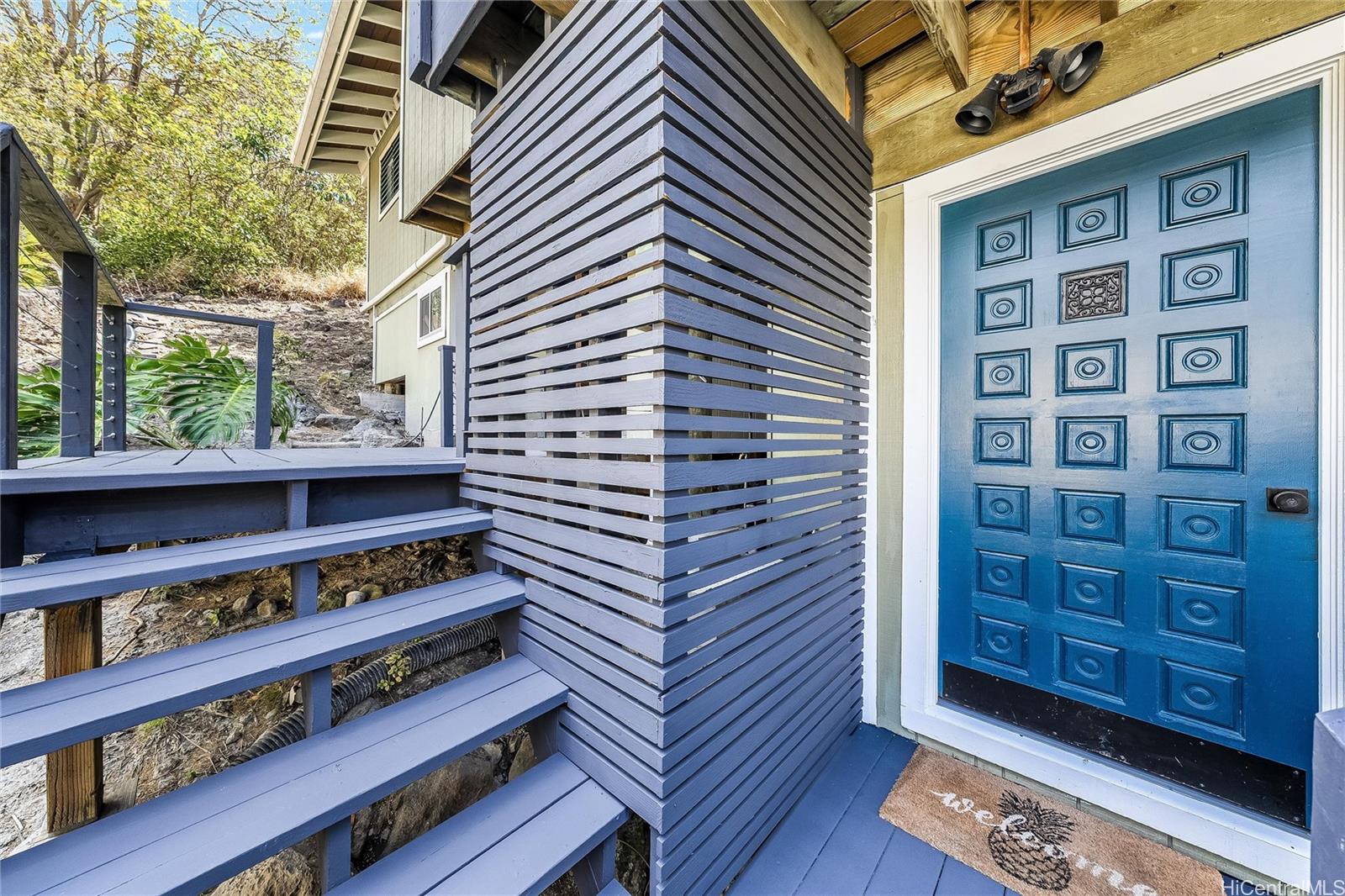 Additional highlights include a large workshop, ample storage and a 2-car carport with surfboard racks. Nestled in a quiet hillside setting, this home feels secluded yet is just minutes from Aina Haina Shopping Center, dining, and surf breaks. This rare property truly combines privacy, modern living, panoramic views, and flexible spaces all in one exceptional home!