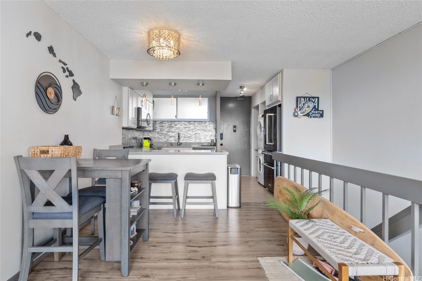 両階にラナイを備えた、改装済みのスプリットレベルの住宅で究極の快適さをご体験ください。緑豊かな山々から活気あふれる街並みまで、息を呑むようなダイヤモンドヘッドの眺望をお楽しみいただけます。思慮深く設計された間取りは、メインエントランス階に広々としたリビングルームとキッチン、そしてプライバシーを確保するために下階にベッドルームを配置しています。近年の改装では、豪華なLVPフローリング、食器洗い機、レンジ、冷蔵庫、クォーツカウンタートップ、そしてユニット内洗濯機と乾燥機を備えた、完全に近代化されたキッチンが採用されています。洗練されたバスルームと、キッチン、バスタブ、シャワー、トイレ、止水栓を含む最新の配管設備は、最新の電気パネルとカスタムクローゼット棚と相まって、現代的な利便性を保証します。アラワイ・スカイライズは、安全で手入れの行き届いた建物で、ゲスト用駐車場、プール、バーベキューエリア、常駐管理人などのアメニティを提供しています。バス路線、ハワイ大学、イオラニ・スクール、その他の教育機関に近い絶好のロケーションで、