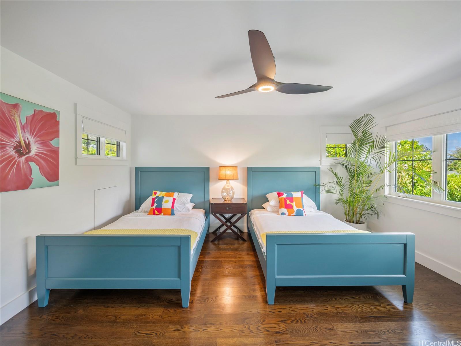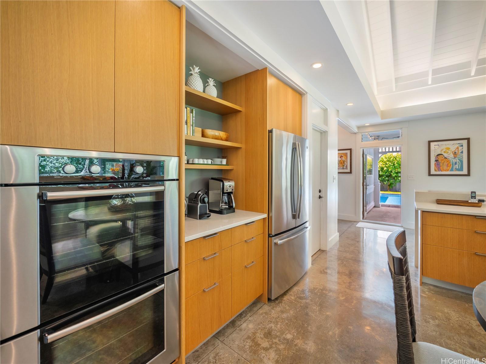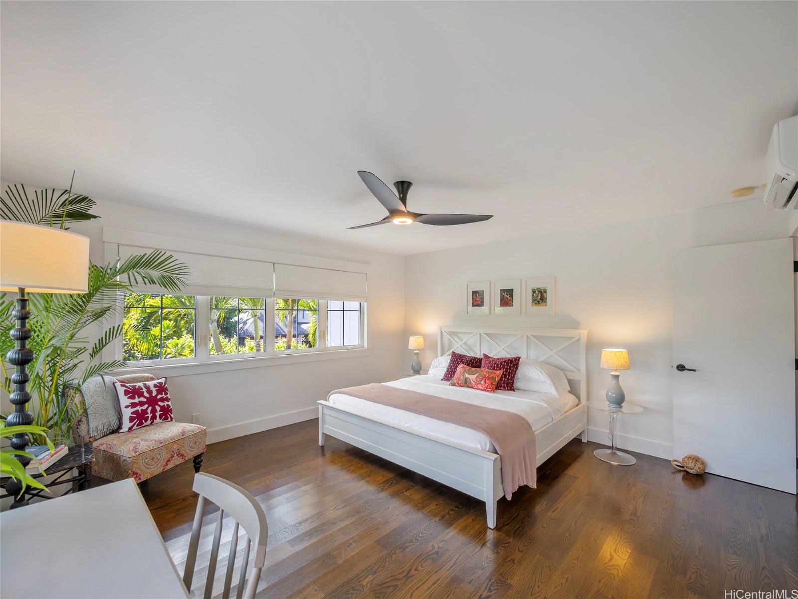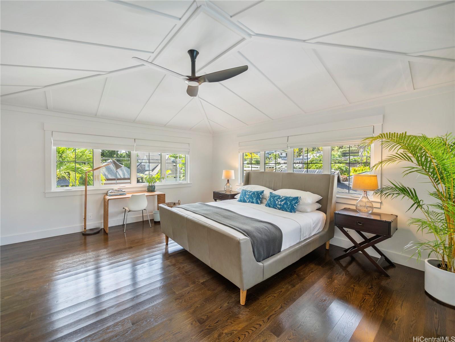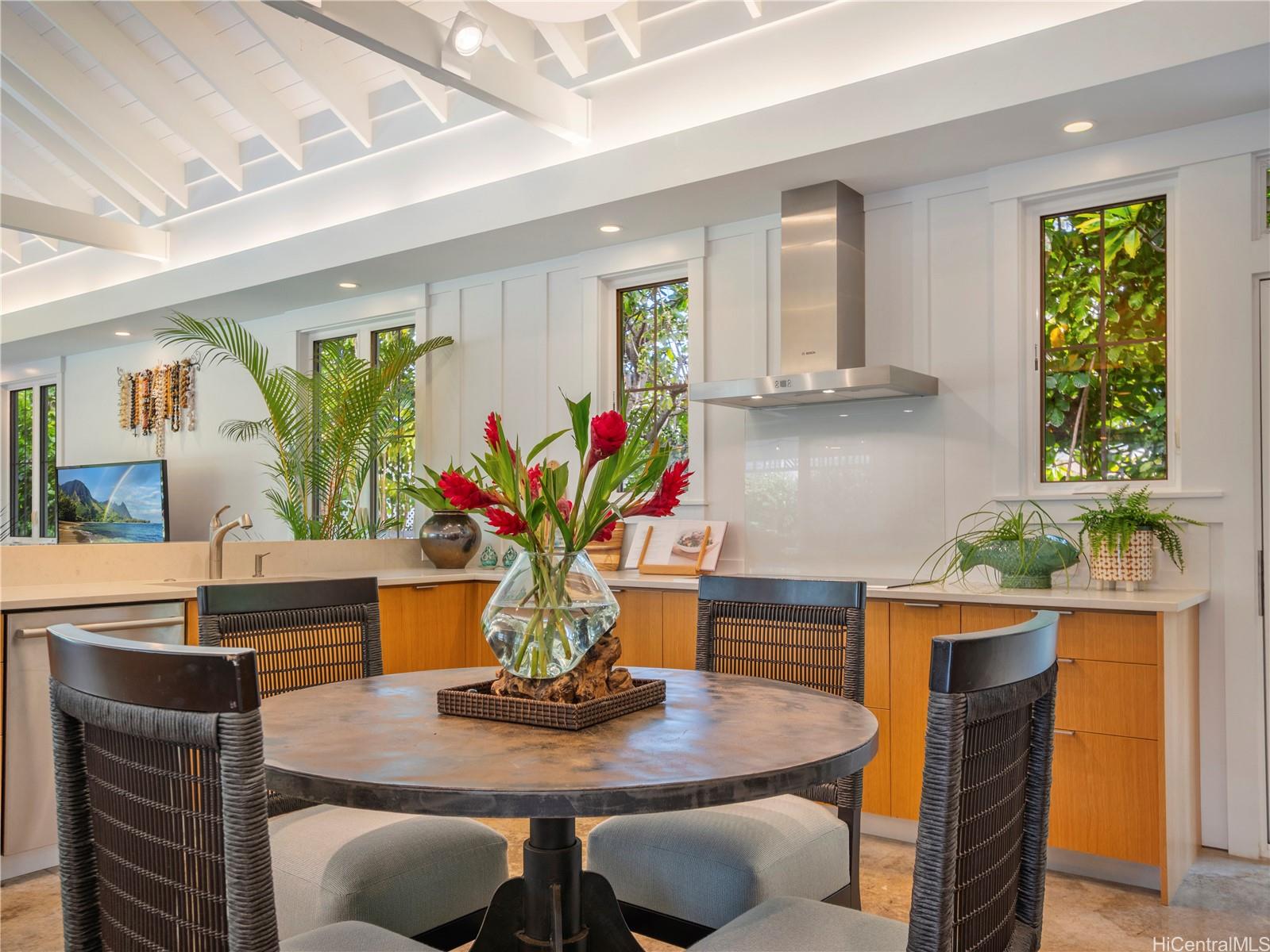 この非の打ちどころのないラニカイの邸宅は、精巧な木工細工と細部へのこだわりが光る建築の宝石です。2014年に建てられたこの邸宅は、ハワイのプランテーションスタイルの時代を超えた魅力と、すっきりとしたモダンなエレガンスを兼ね備えています。広々とした平坦な敷地に建つ5ベッドルーム、4バスルームの住宅は、大きな窓とドアから差し込む素晴らしい自然光が、印象的なアーチ型天井に反射します。1階はニュートラルな磨き仕上げのコンクリート床で、機能的でありながら美しく、2階には上質な堅木が敷かれています。広々としたリビングスペースは、広々とした屋根付きベランダ、そして緑豊かで色鮮やかな景観に囲まれた40フィートのきらめくタイル張りのプールとスパへとシームレスに広がります。1階には、天井の高い広々とした2ベッドルームと、それぞれ単独でも、独立した入り口を備えた広々としたゲストスイートとしても使用できるフルバスルーム、ランドリールーム、そして屋内/屋外シャワー付きのフルバスルームがあり、わずか6軒先のラニカイビーチを訪れた後に体を洗い流すのに最適です。 2階には、ベッドルーム3室とバスルーム2室があり、大階段で2つのウィングに分かれており、主寝室を独立して使うことができます。広々としたガレージと車寄せ付き駐車スペースも完備。オアフ島屈指の人気エリアで、この素晴らしい物件を所有できるチャンスをお見逃しなく!