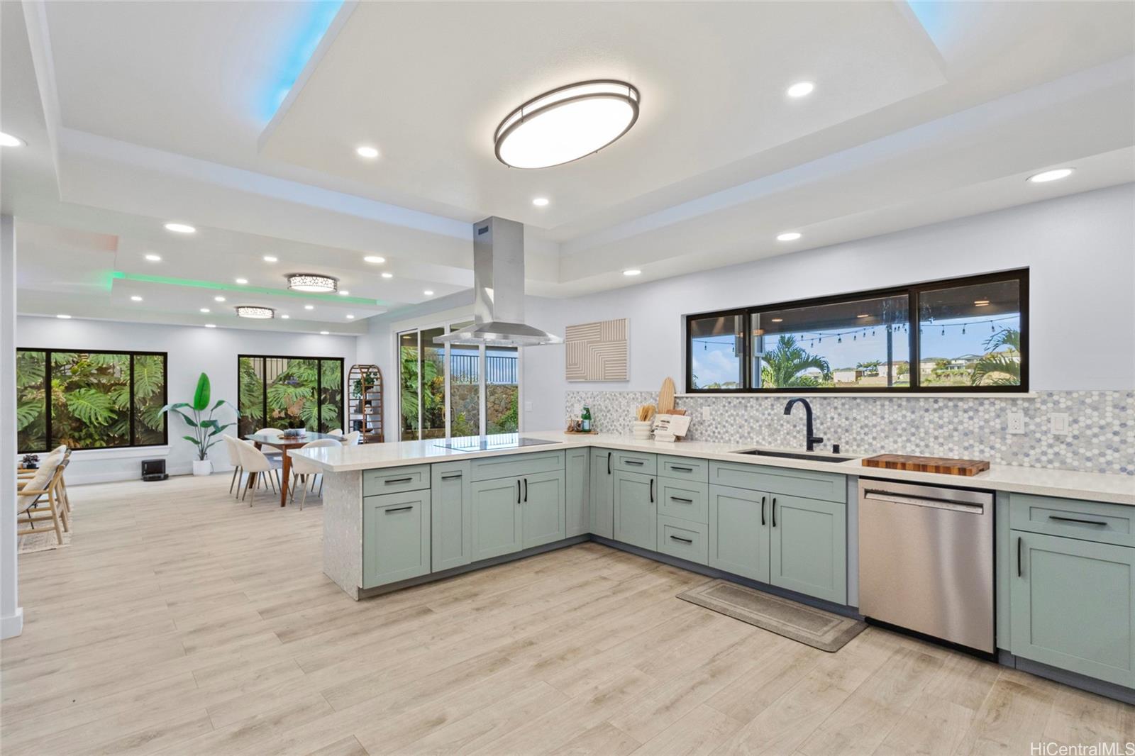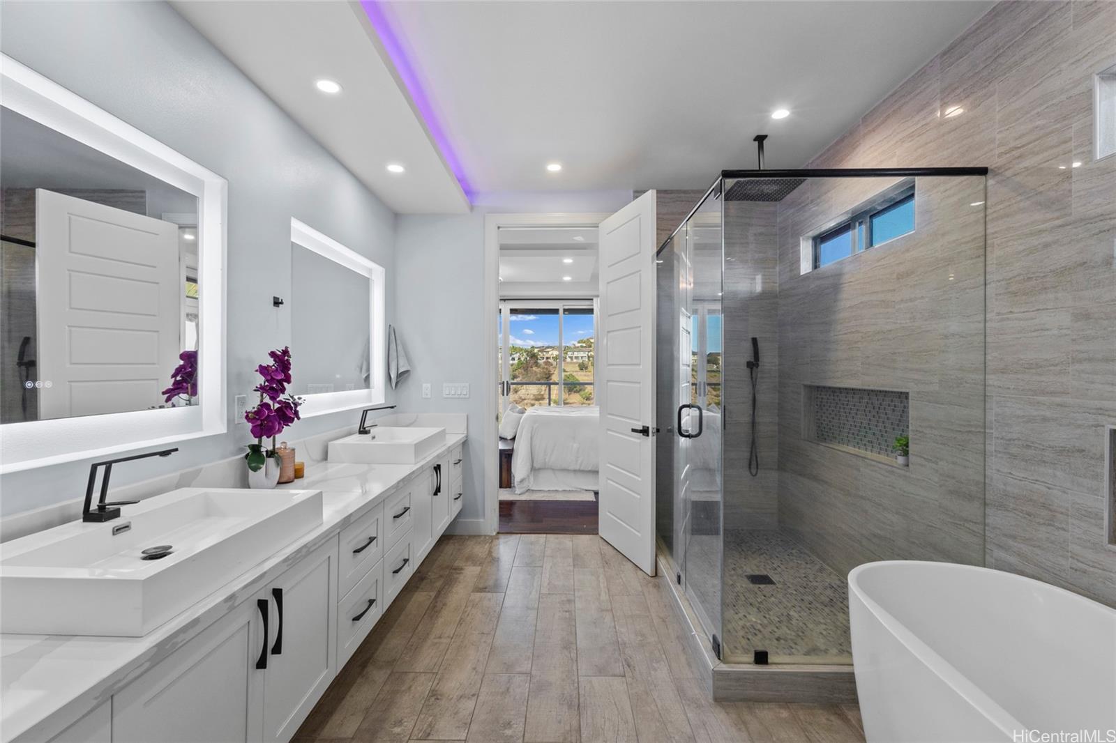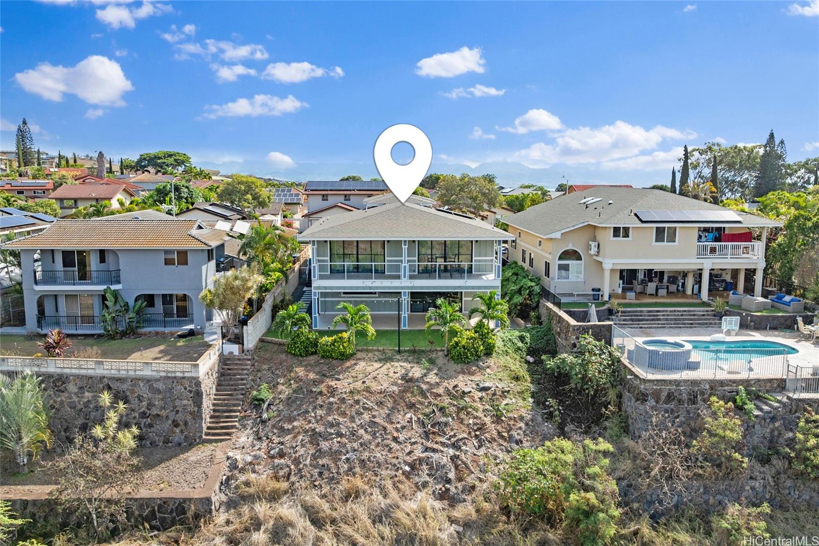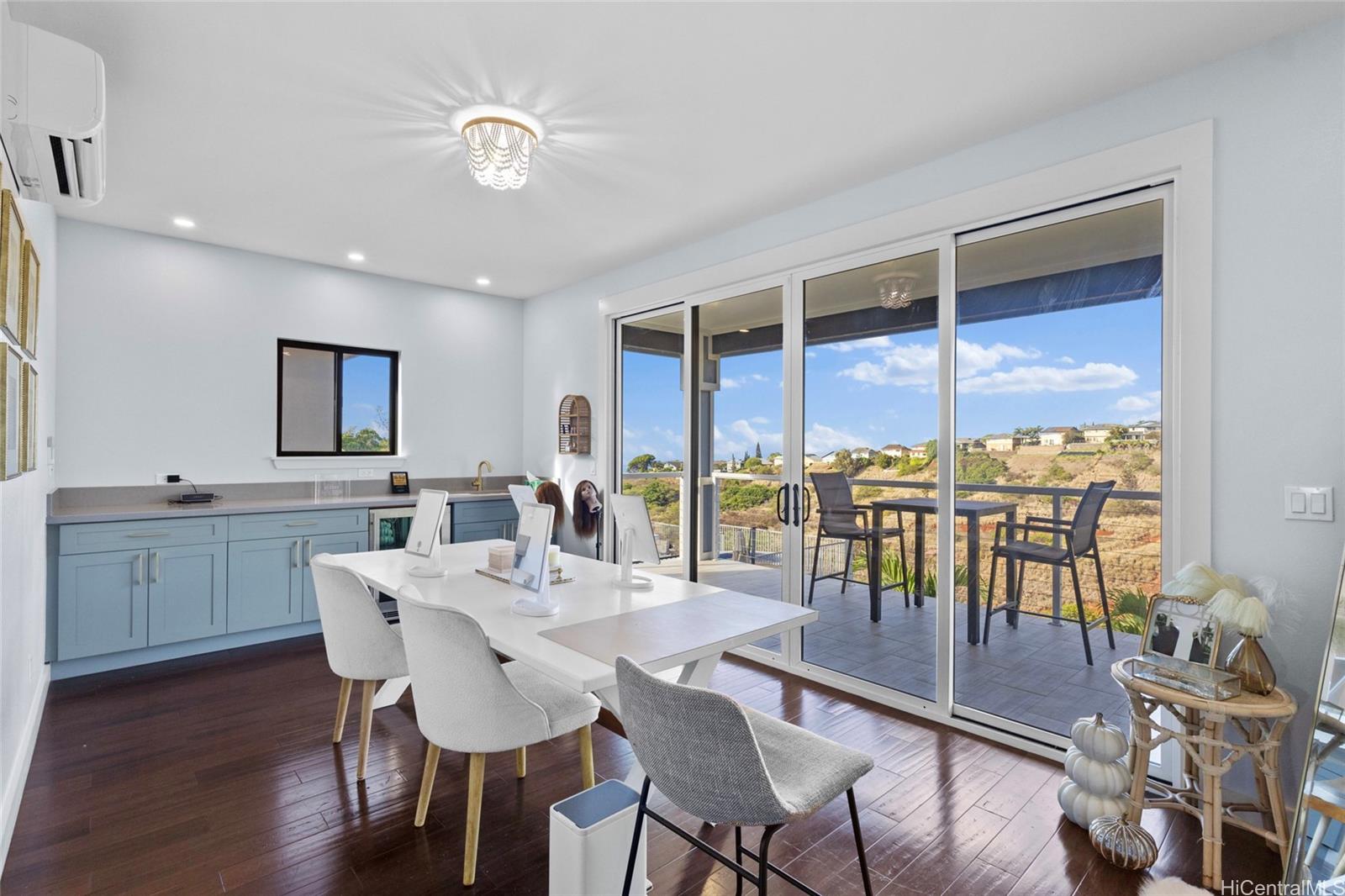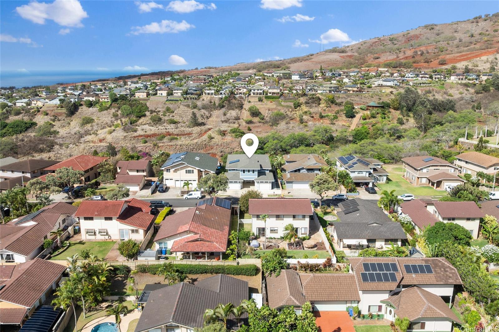 Enjoy fresh breezes, stunning valley views, and peaceful living in this beautiful Makakilo home. Built brand new from the ground up in 2022, this spacious 6-bedroom, 6-bathroom residence offers modern design, comfort, and flexibility for every lifestyle. With three full suites, including a downstairs unit with its own entrance, bathroom, and walk-in closet, the home is ideal for guests or rental opportunities.Step inside and enjoy: Open-concept living, dining, and kitchen spaces — perfect for entertaining. A bright kitchen featuring quartz countertops throughout and a high-end forced induction stove. Tile flooring on the first floor and real wood flooring upstairs. Soaring 9-foot ceilings that create a light, airy atmosphere A beautiful second-floor balcony overlooking Makakilo Valley — with cool breezes and even the occasional sound of cows grazing nearby. The location offers the best of both worlds: tucked away in a very safe, quiet neighborhood near Palehua Camp and the Kumulani gated community, yet just minutes from Makakilo Community Park and local schools. This home blends modern elegance with the serene char of Makakilo living — all in a setting that feels like a retreat.