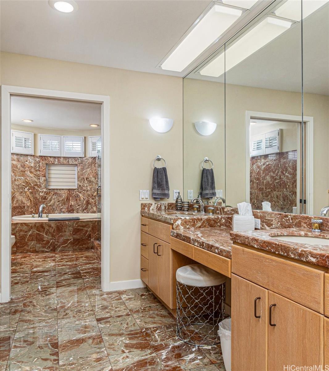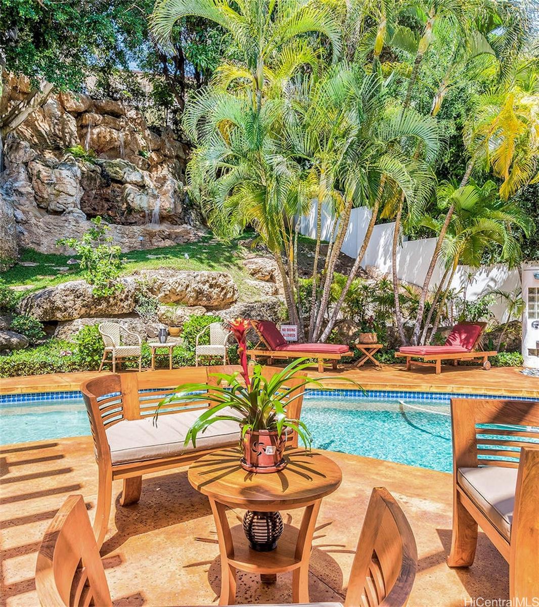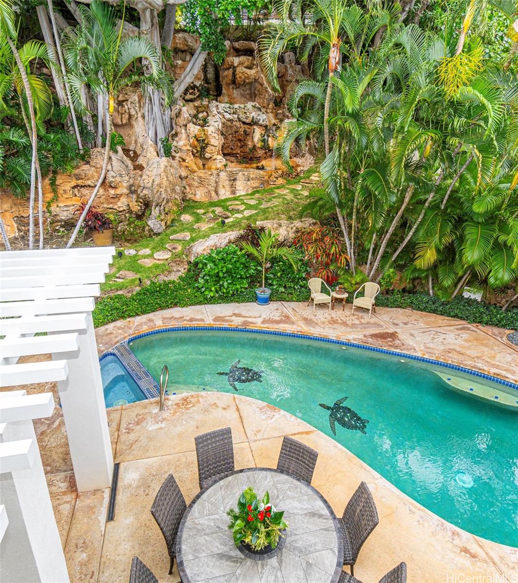Nestled on a quieter street in one of the most sought after neighborhood in Honolulu, this Kahala mini oasis awaits you. Gated and private, this multi-level, spacious, upgraded home is perfect for a growing number of occupants. Inviting kitchen and free flowing floor plan with two living rooms and dinning room open to the back yard indoor / outdoor living and perfect for entertaining. There are five bedrooms all located on the upper levels. There is an attached 1br/1ba guest room complete with a wet bar which is perfect for visiting guests. Relax around or in the pool and hot tub. The manmade cascading waterfall creates a tranquil ambiance, allowing your mind to unwind and your senses to rejuvenate. Amidst the lush greenery and soft rustle of leaves, the waterfalls' melody offers a perfect backdrop for moments of peace and reflection. The oversized two car garage offers extra storage space. A must see.