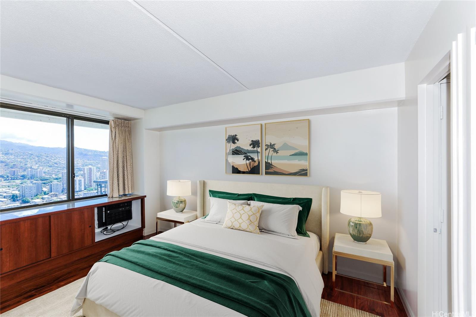 ワンレベル下のペントハウス - コオラウ山脈の絶景を望むリフォーム済みコンドミニアム。美しくリフォームされた2ベッドルーム、2バスルームのこのコンドミニアムからは、街とコオラウ山脈の絶景を一望できます。居心地の良いオープンコンセプトのキッチンは、カウンタートップ、バックスプラッシュ、家電がアップグレードされ、リビングエリアとシームレスに繋がっており、おもてなしにも最適です。室内洗濯機と乾燥機、警報/消火スプリンクラーシステム、そして屋根付き/安全な指定駐車場1台分など、便利な設備も完備しています。24時間体制のセキュリティに加え、プール、サウナ、ゲスト用駐車場、中庭、バスケットボールコートとテニスコート、バーベキューエリア、パッティンググリーン、洗車場、ロビー階にあるコンビニエンスストアなど、リゾートスタイルの暮らしを満喫できる充実したアメニティをご用意しています。ホノルル中心部、ハワイ大学マノア校、アラモアナセンター、ワイキキ、ビーチ、レストラン、ショッピング、公共交通機関にも近く、都会的な暮らしと島の快適さが融合した、この貴重な機会をお見逃しなく!現状のまま販売され、強化され、仮想的にステージングされた写真です。