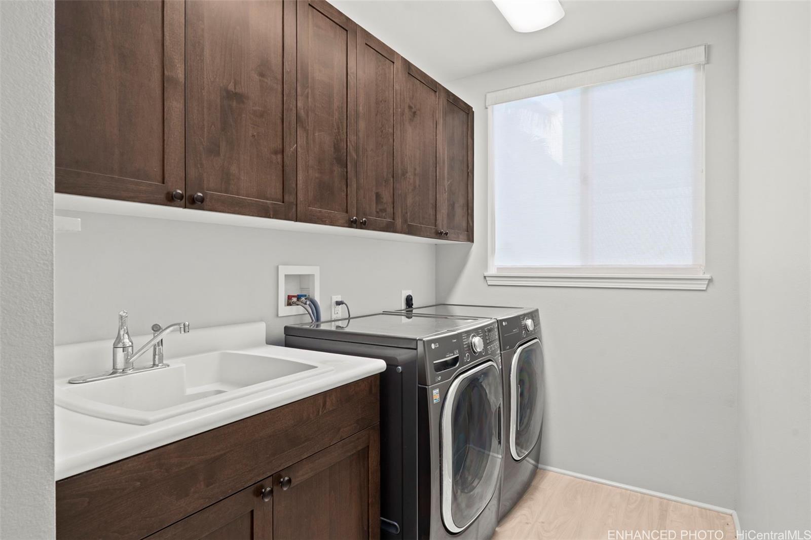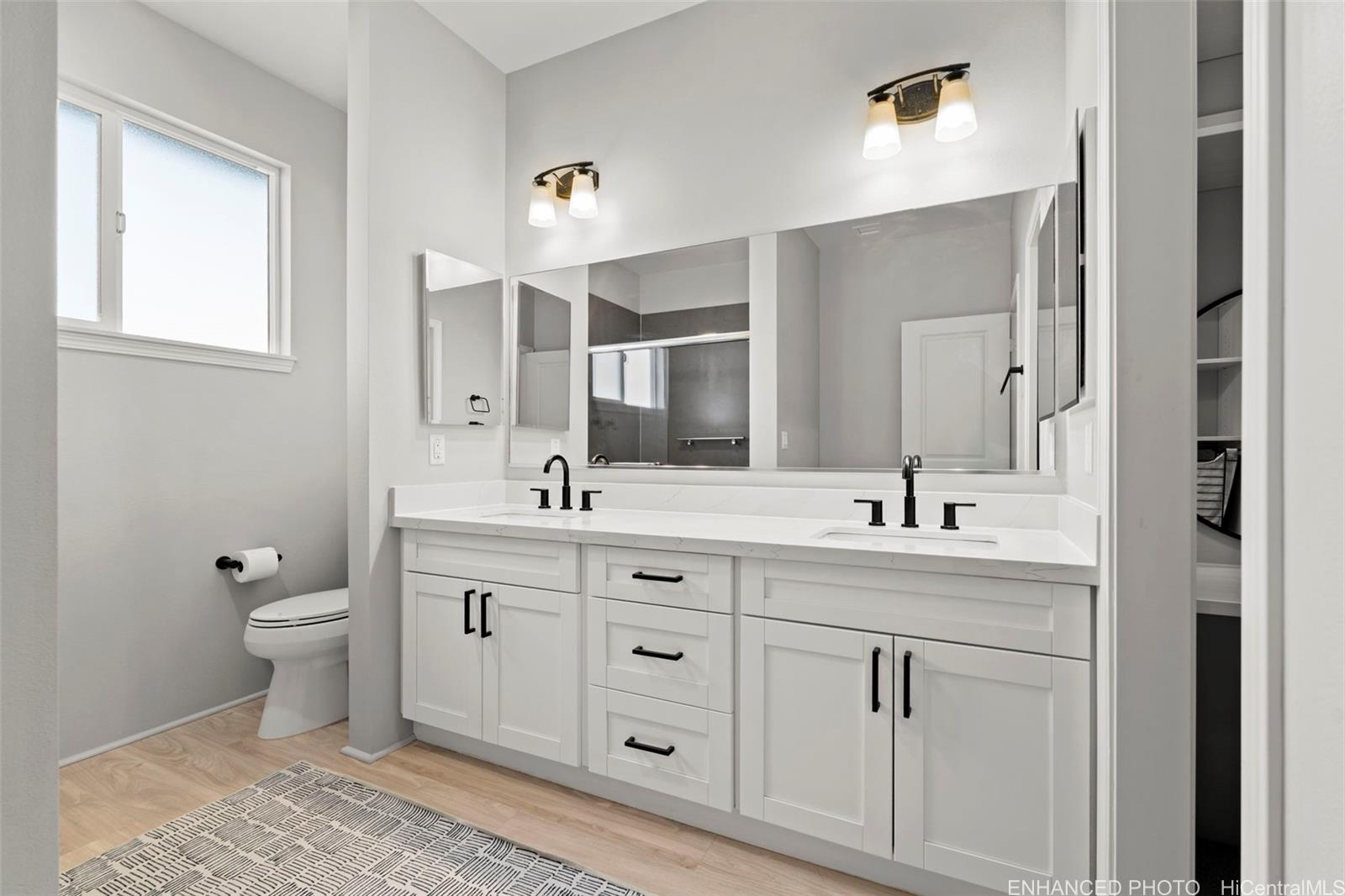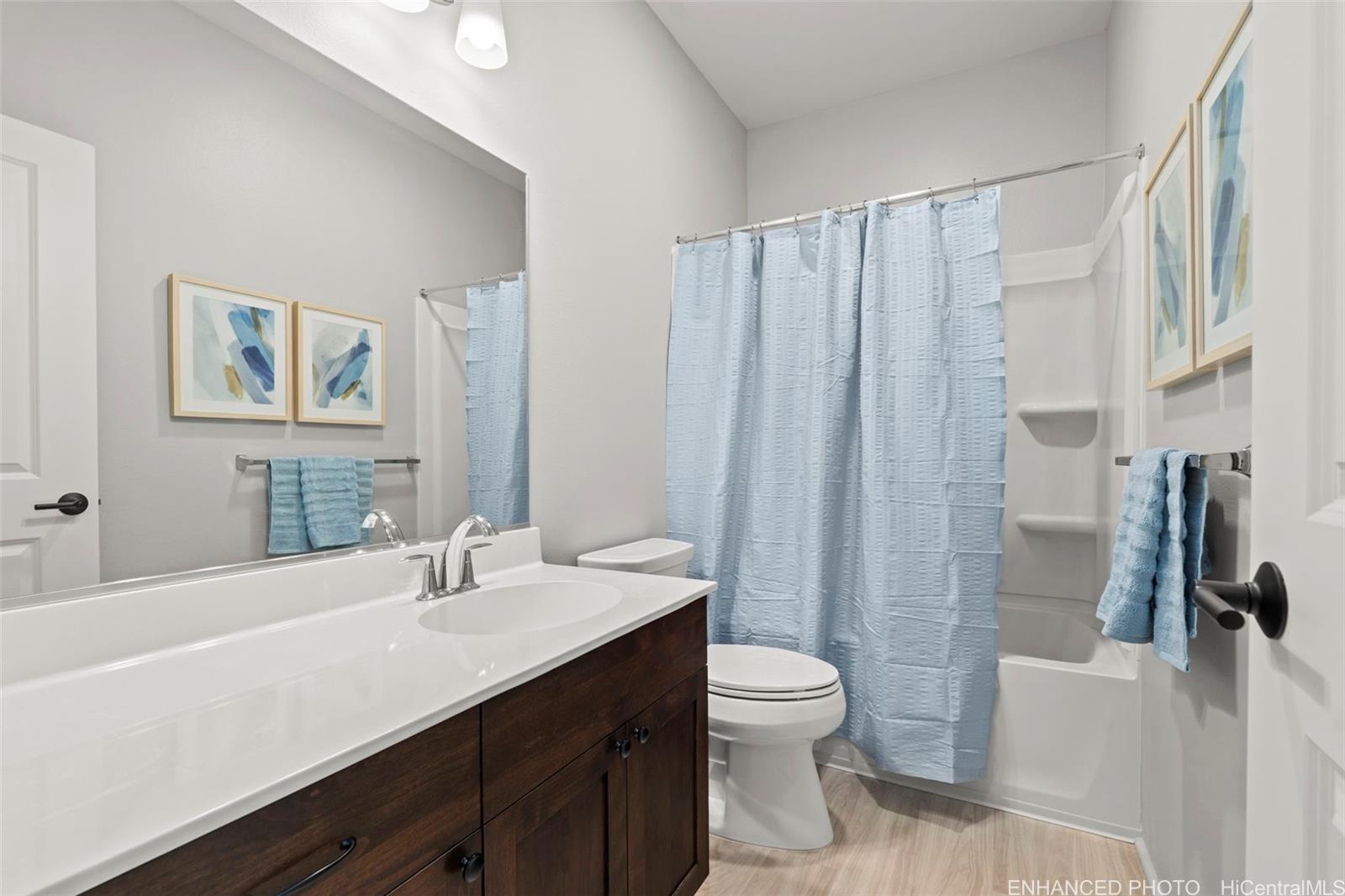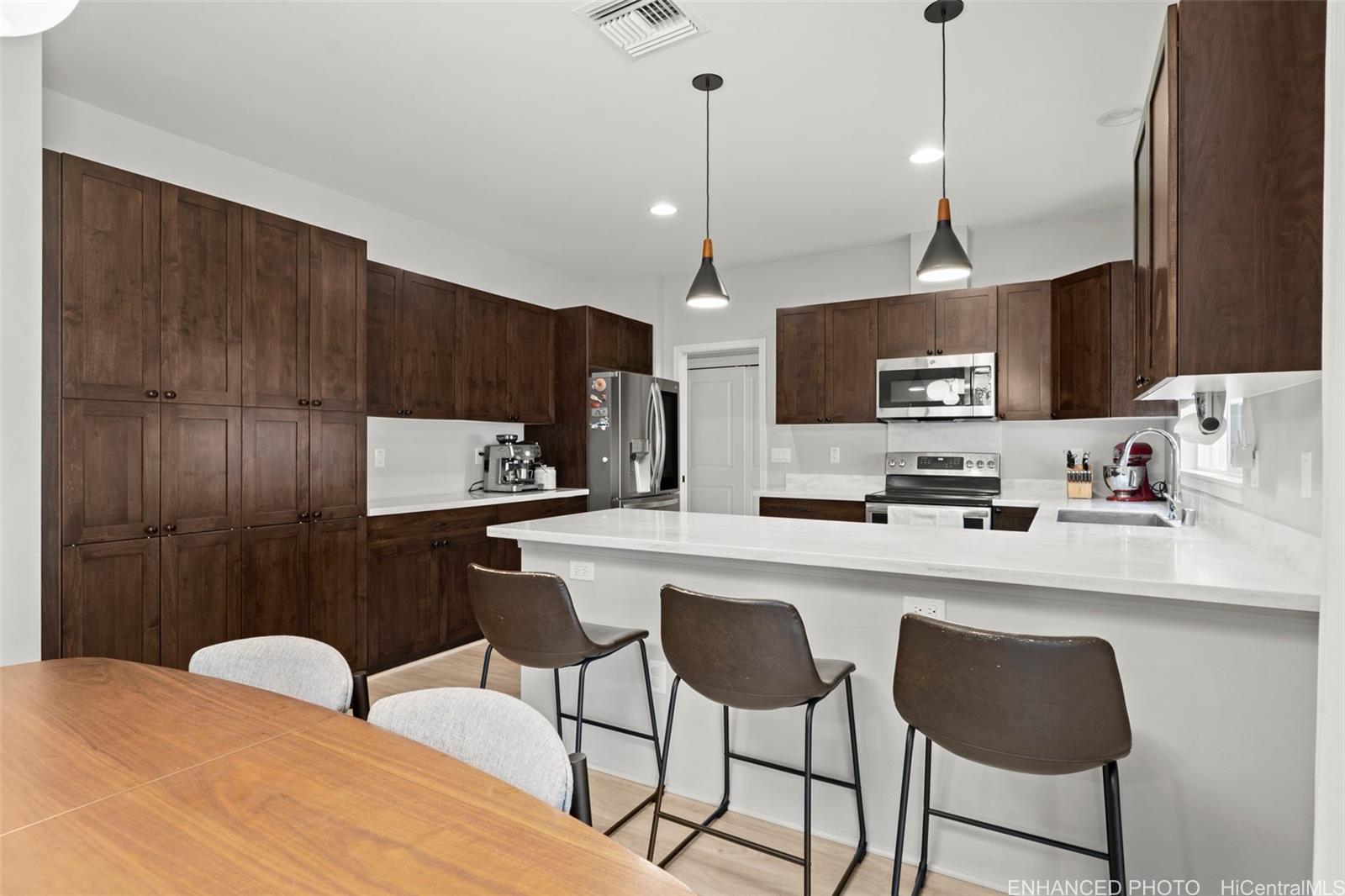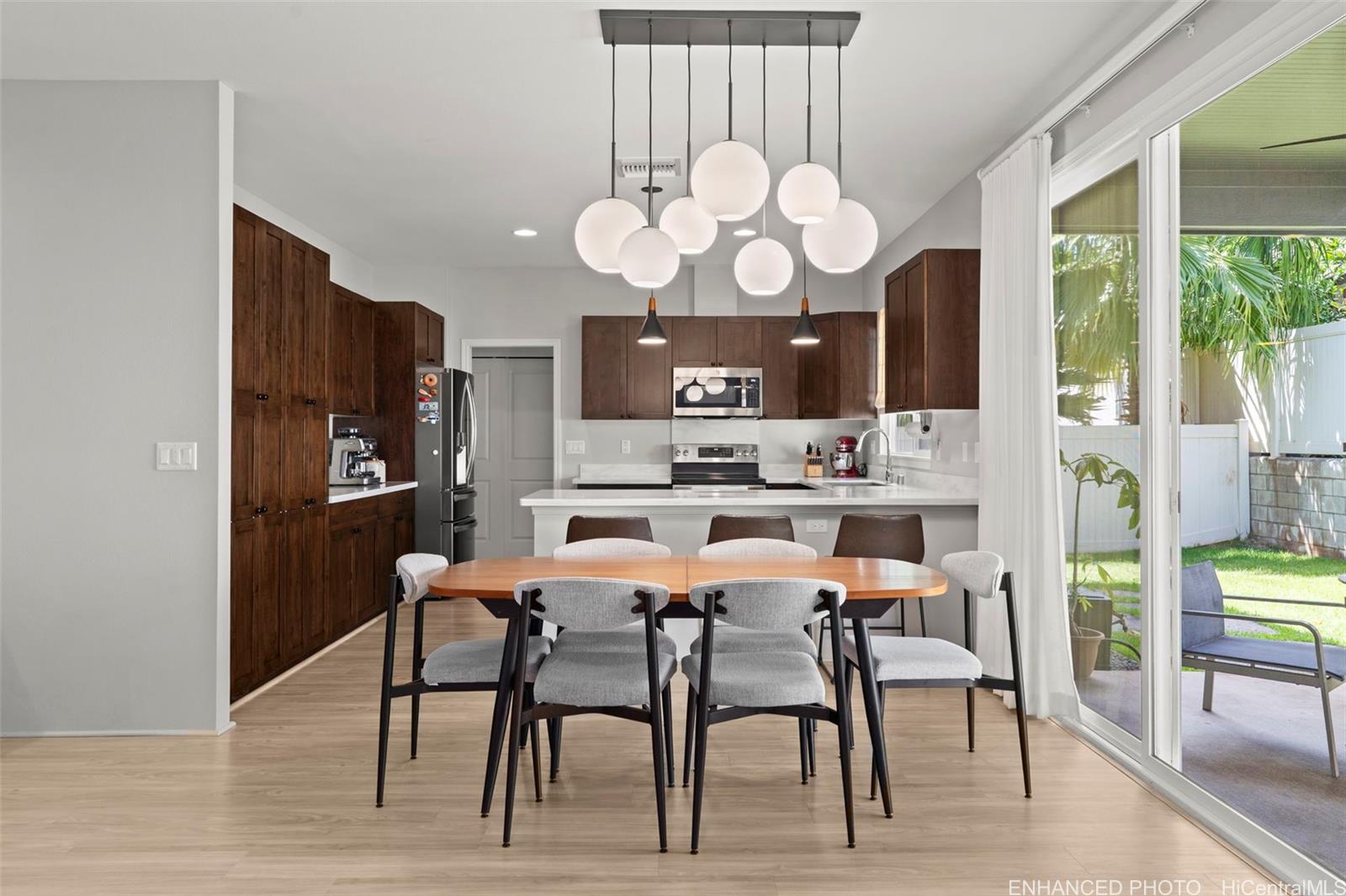 Gorgeous Plan 4R in Ewa by Gentry – Coral Ridge Phase 2 ,Built in 2019, this spacious home offers an open living and dining area with 1 bedroom and 1 full bath on the first floor. The upgraded kitchen features sleek cabinets, countertops, and a large peninsula island that flows into an extended patio—perfect for entertaining. A separate laundry room adds convenience. Upstairs includes 3 bedrooms, 2 bathrooms, and a cozy loft. The primary suite boasts a walk-in closet with custom organizer. Energy efficiency comes with 18 owned PV panels and a Tesla wall battery, plus central A/C for comfort. Situated on a 5,175 sq. ft. lot, this home is just minutes from White Plains Beach, Oneula Beach Park, community parks, Wai Kai Lagoon and Laulani Shopping Center.