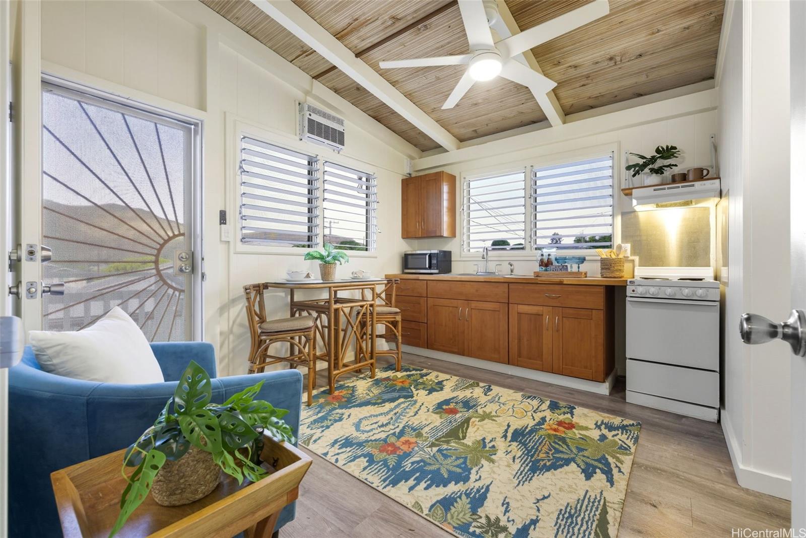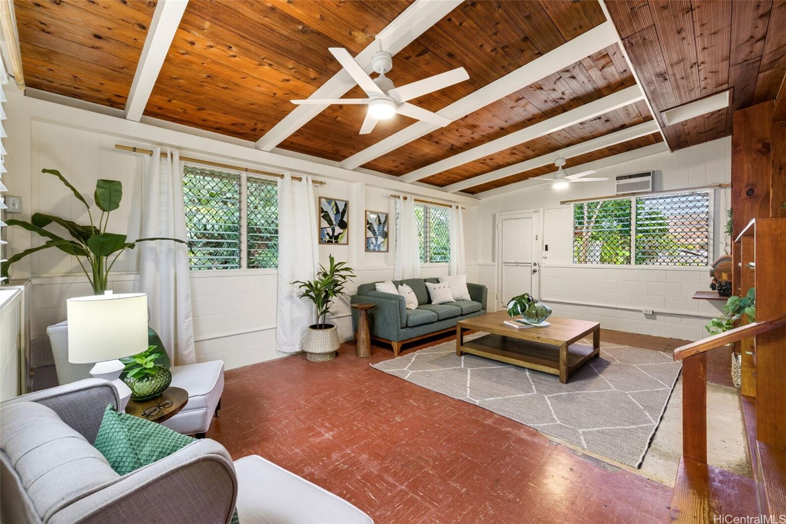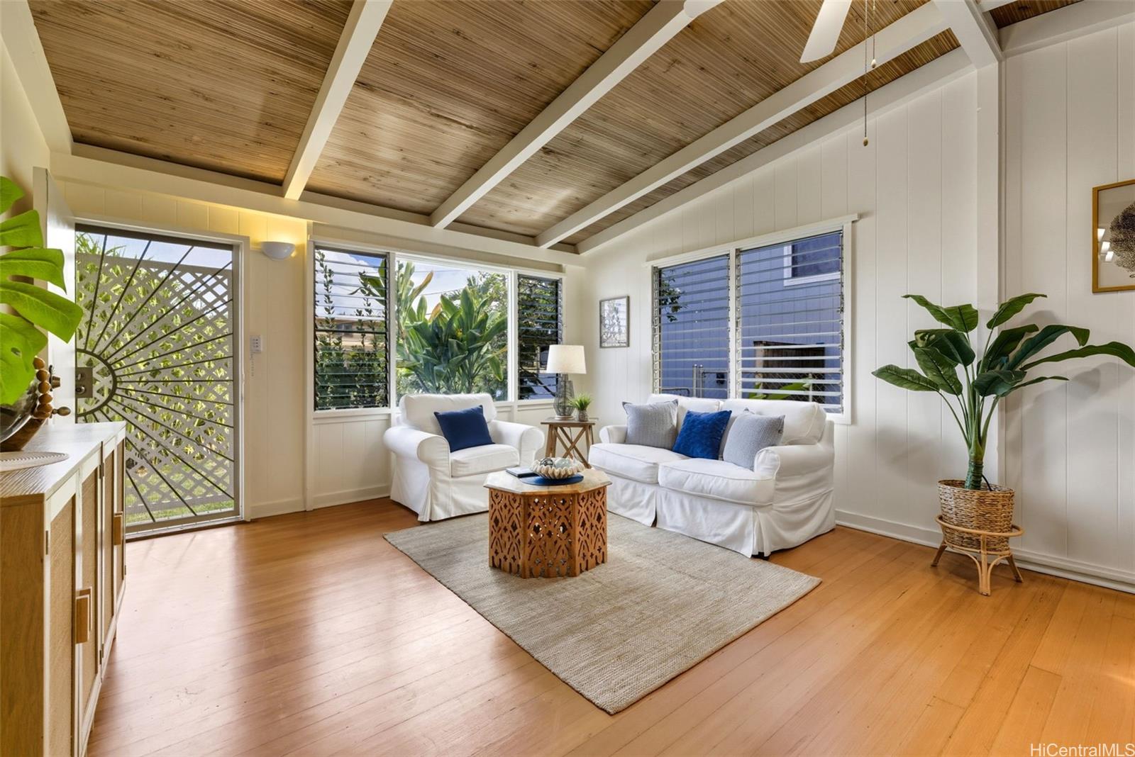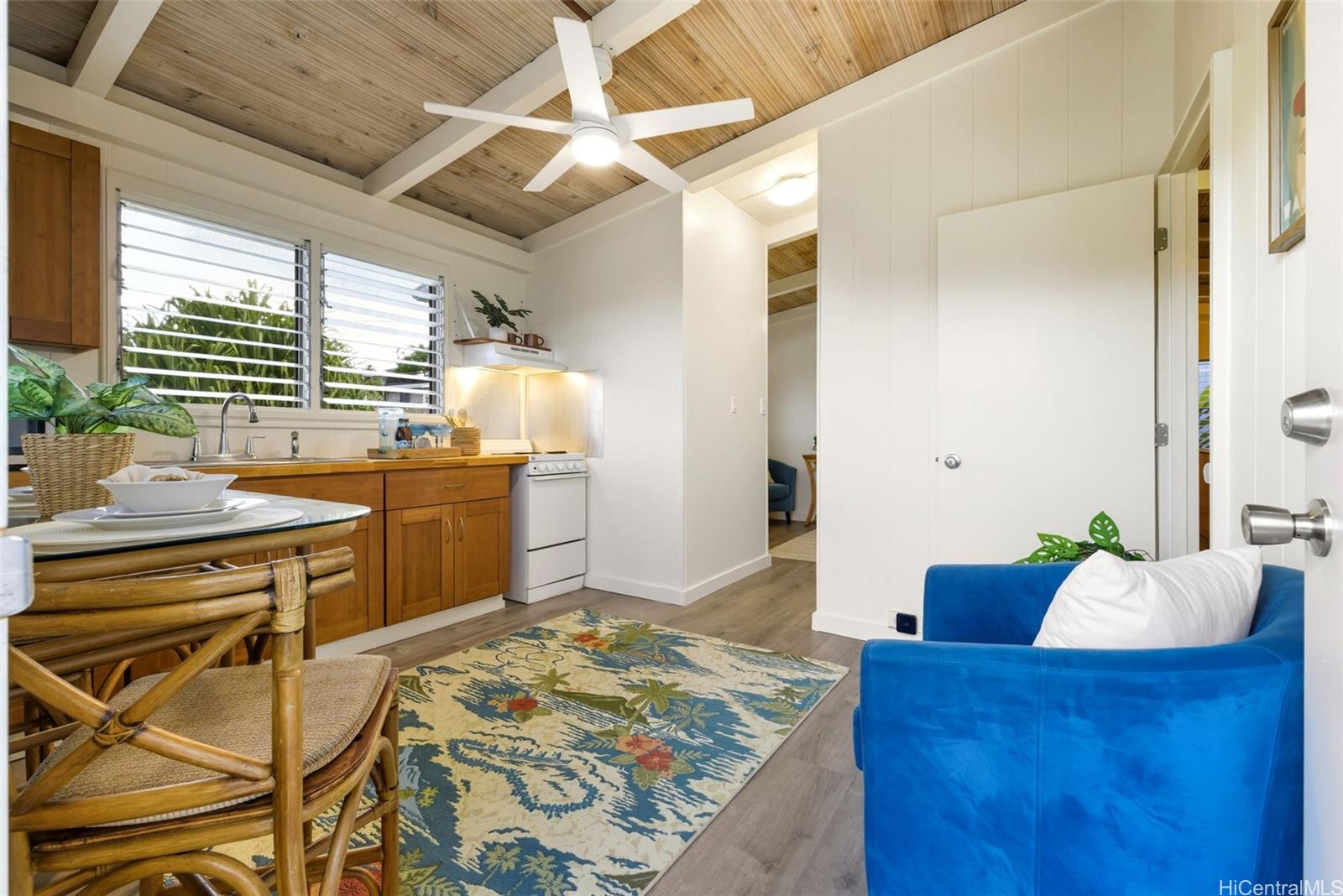 この3ベッドルーム、2バスルームの住宅は、伝統的なアイランドスタイルの魅力と、思慮深いリノベーション、そしてフレキシブルなライフスタイルが融合しています。広々とした間取りは、多世代同居や来客に最適な、義理の家族のためのスイートルームとして最適です。白く塗られたコーマドパイン材の天井から、メインのリビングエリアに広がる美しいダグラスファーのフローリングまで、温かみのある魅力的なディテールが随所に散りばめられています。住宅の中心には、機能的で美しいキッチンがあります。チェリー材の無垢材キャビネット、複合石のカウンタートップ、ガスコンロ、そして新品の冷蔵庫と食器洗い機が、料理やおもてなしを楽しくするレイアウトに調和しています。7台のシーリングファン、2台のエアコン、そして24枚の自社所有太陽光発電パネルにより、優れた通気性も確保されています。庭はまさに隠れ家。前庭と裏庭の両方に、リラックスしたり、くつろいだり、お客様をもてなしたりするのに十分なスペースがあります。さらに、ハワイ原産の植物、ハーブ、果樹(マンゴー、グアバ、アボカドなど)を厳選した庭園もございます。個性、機能性、そして魅力を兼ね備えたカイルアの住宅をお探しなら、ぜひご覧いただきたい物件です。