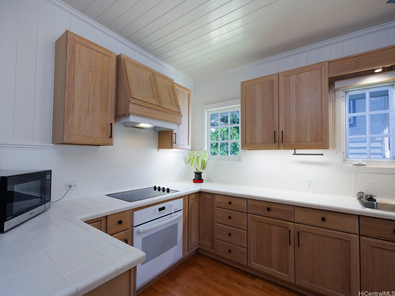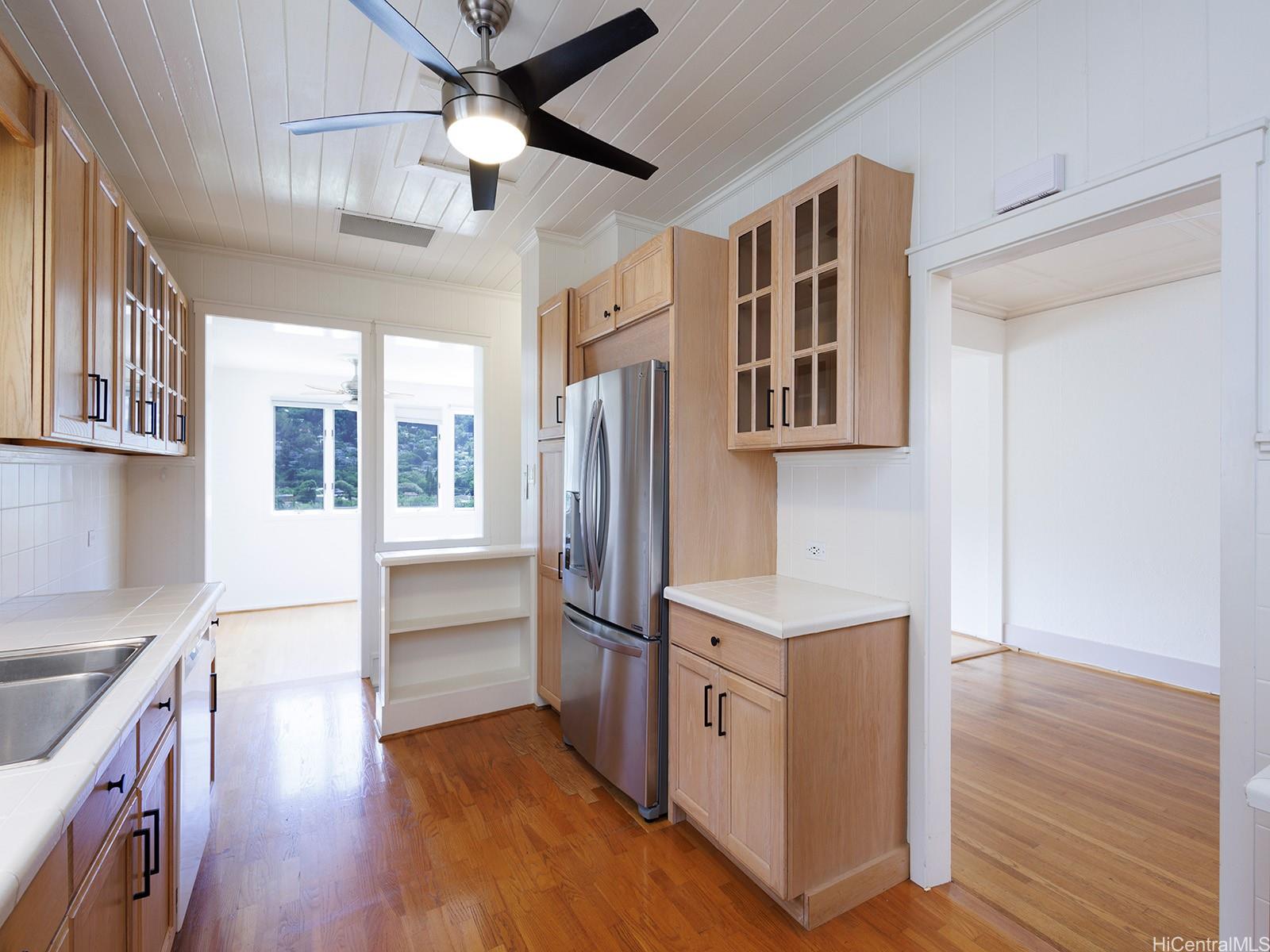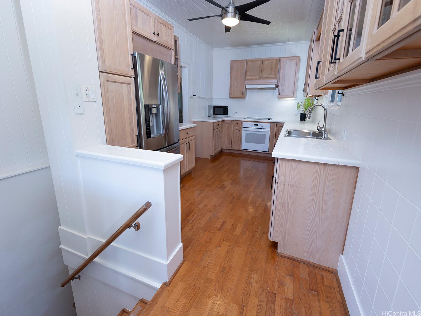 5,445平方フィートの敷地に建つ、静かな3ベッドルーム/2.5バスルームの住宅です。フローリング、高い天井、アーチ型の出入り口、そしてビルトイン家具が特徴です。明るいキッチン、ダイニング、ファミリーエリアには、渓谷の景色を楽しめるピクチャーウィンドウが設置されています。全室スプリットエアコン完備。メインフロアには2つのベッドルームと1.5つの改装済みバスルームに加え、メインフロアから続くラナイがあります。階下には独立したエントランスがあり、1ベッドルーム/1バスルームは多世代住宅や賃貸に最適です。広くて平らな庭は、おもてなしや家の拡張に最適です。学校、公園、ショッピングエリアにも近く、便利な立地です。
